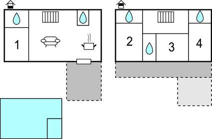 Badeværelse 6m2 (nr. 1) - WC. Varmt og koldt vand. Bruser