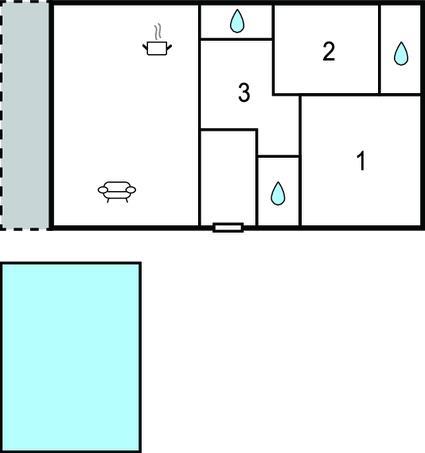 Opholdsstue/køkken 80m2 - 2 Sovepladser. (Sofa, madras eller lignende).