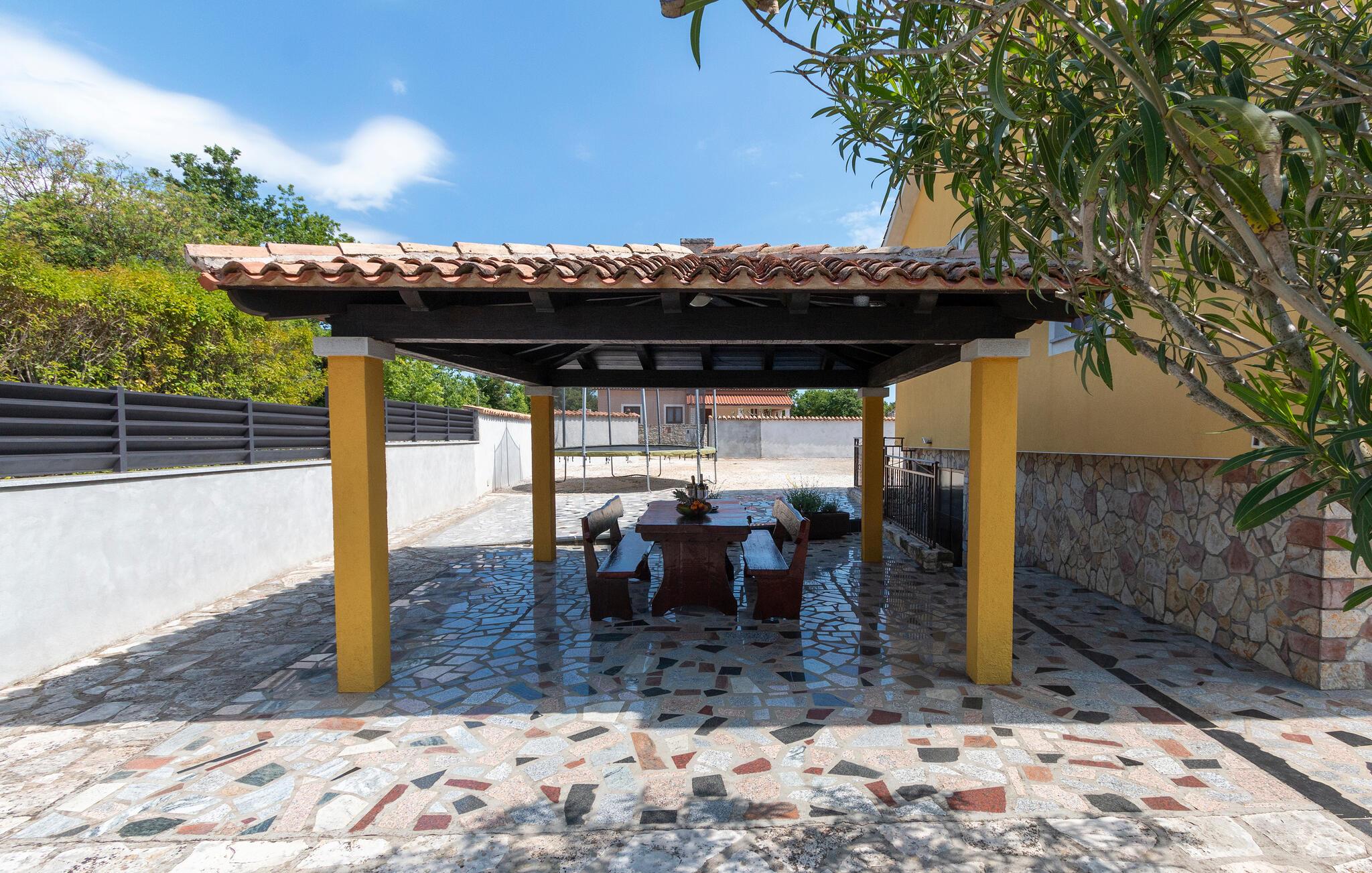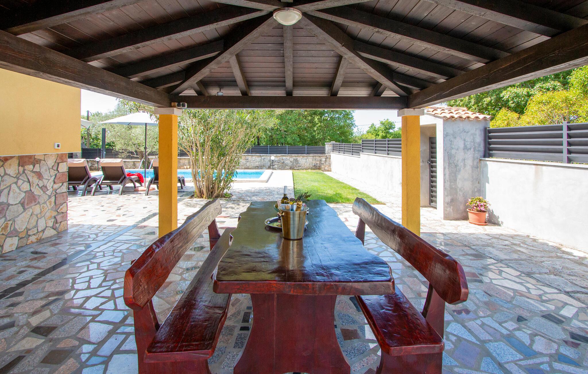 Det velholdte udendørsområde er perfekt til at nyde middelhavsklimaet fuldt ud. Snup en frisk dukkert, når I har lyst, i den skønne pool, slap af på liggestolene og nyd tiden sammen med stemningsfulde grillmiddage under stjernehimlen.