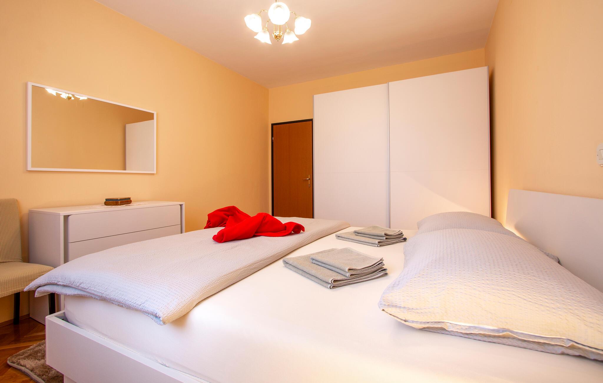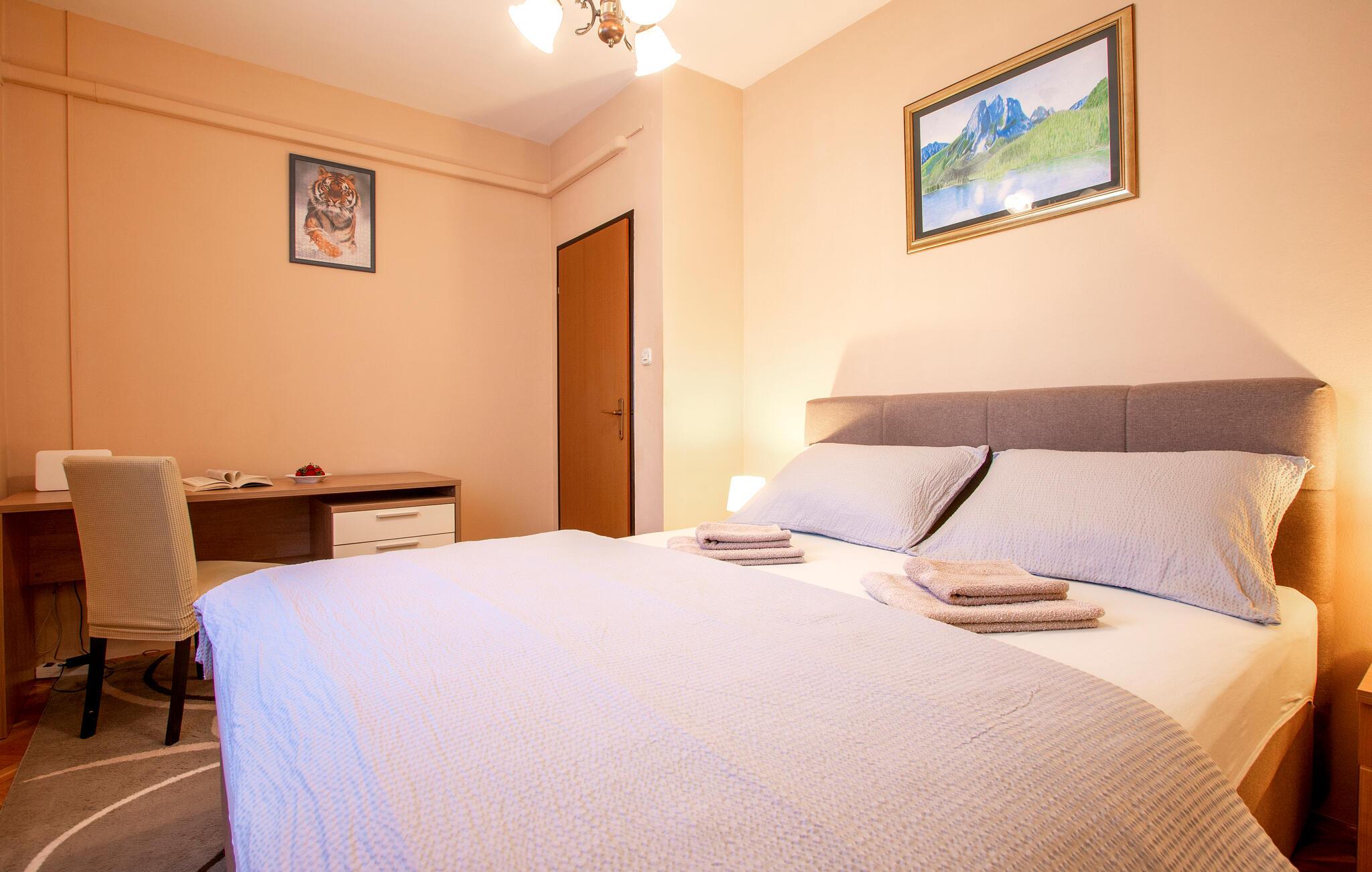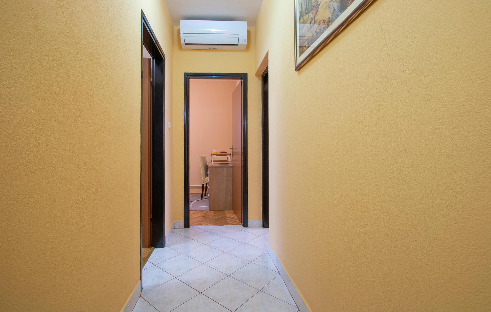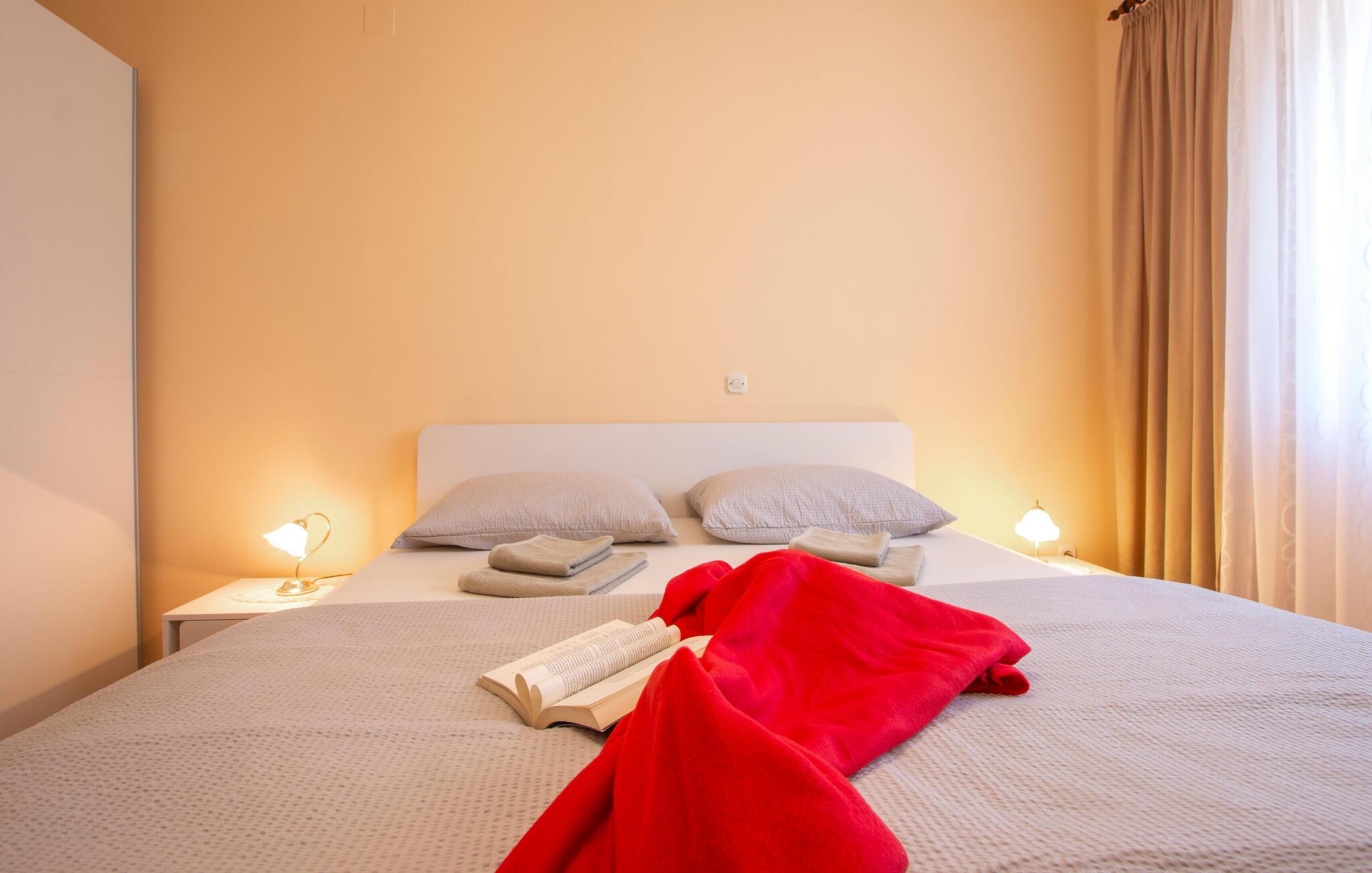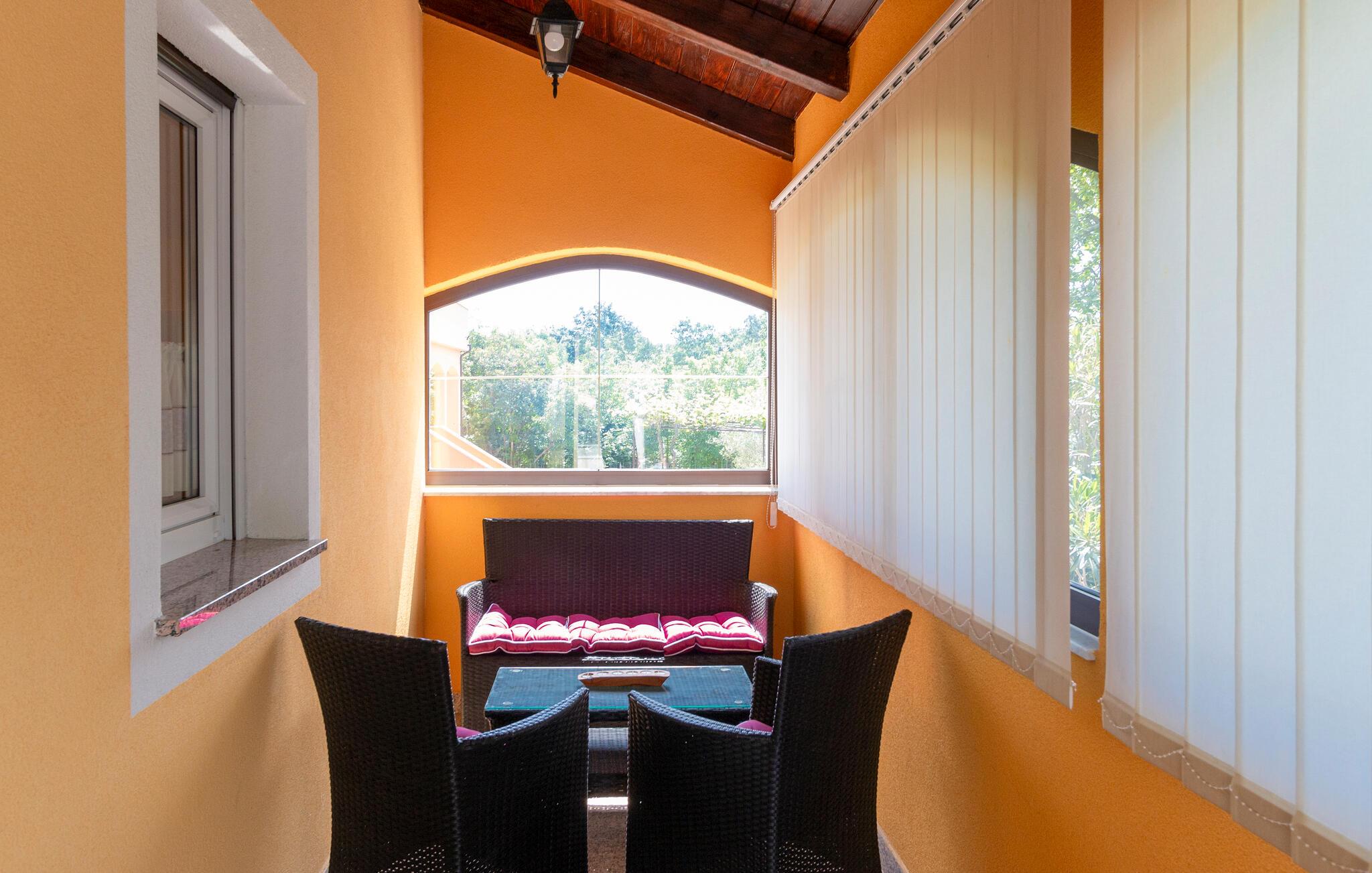 Kom ind og føl jer hjemme i dette rummelige feriehus. Tilbered jeres måltider sammen i det rummelige køkken, træn i fitnessrummet og brug det komfortable sofaområde til sjove spilleaftener og afslappende læsetimer.