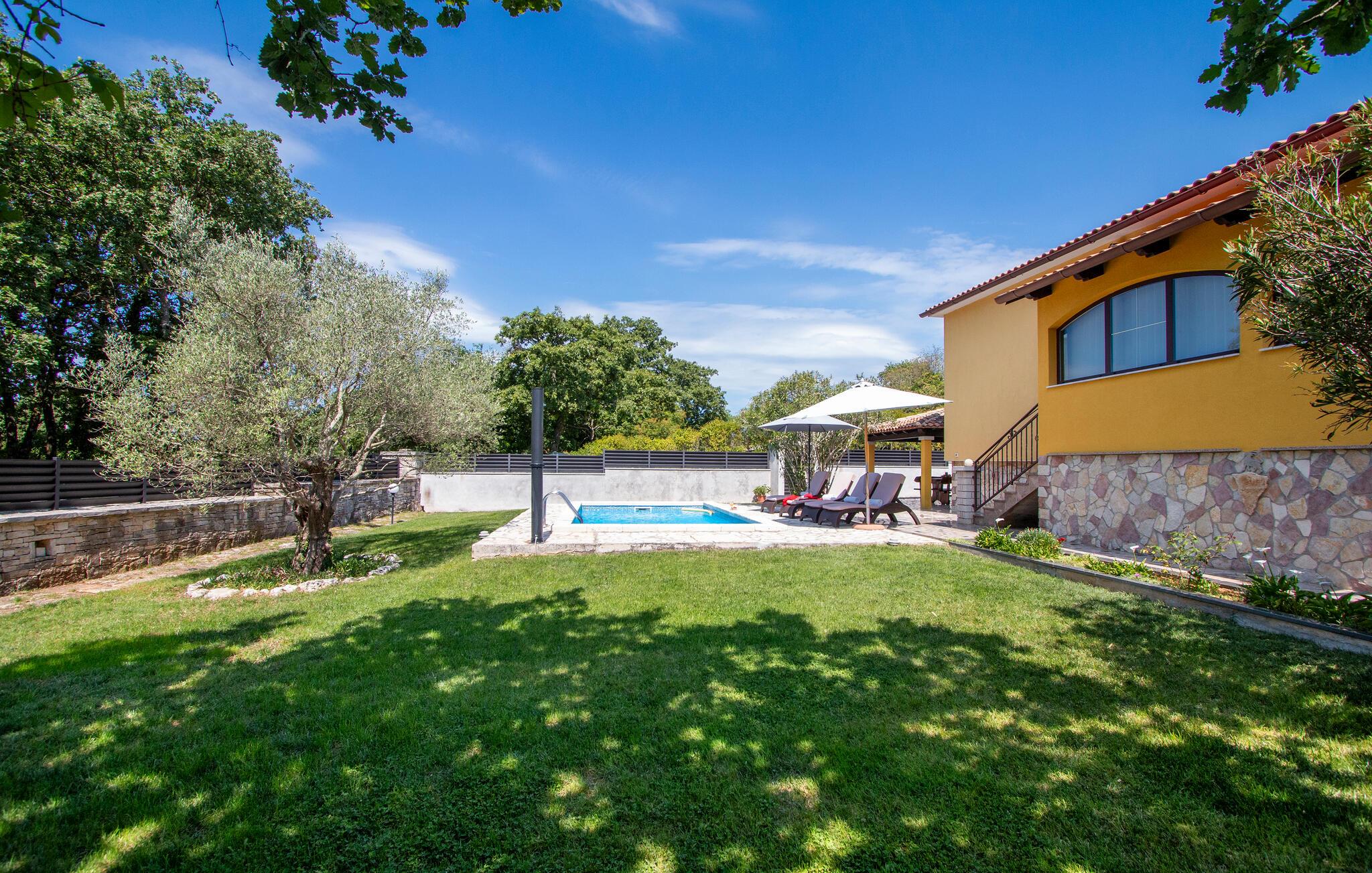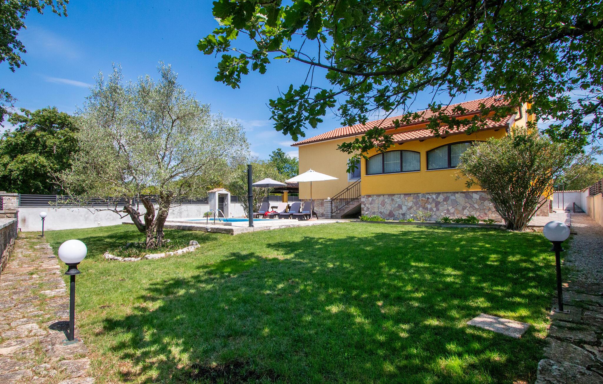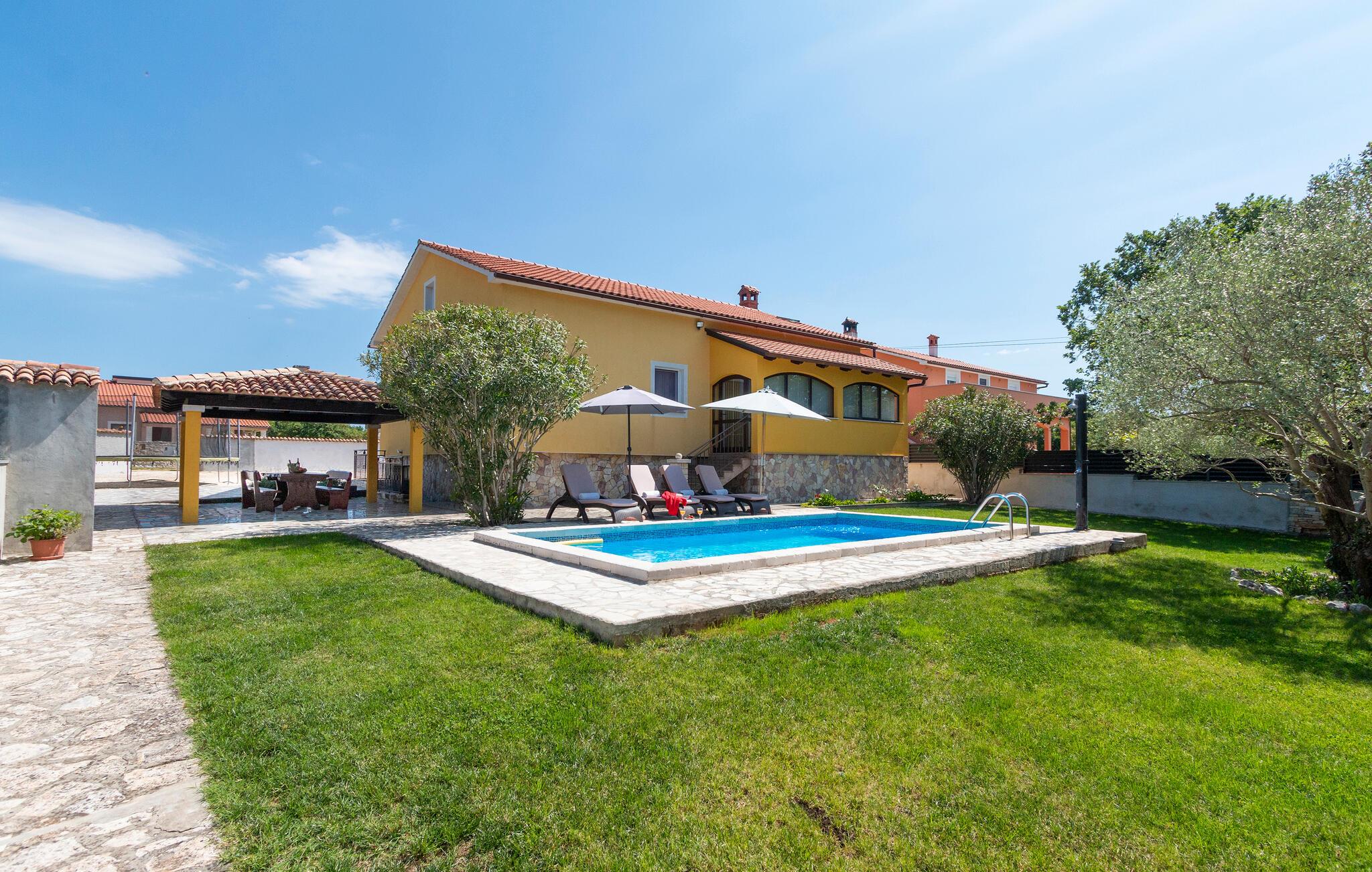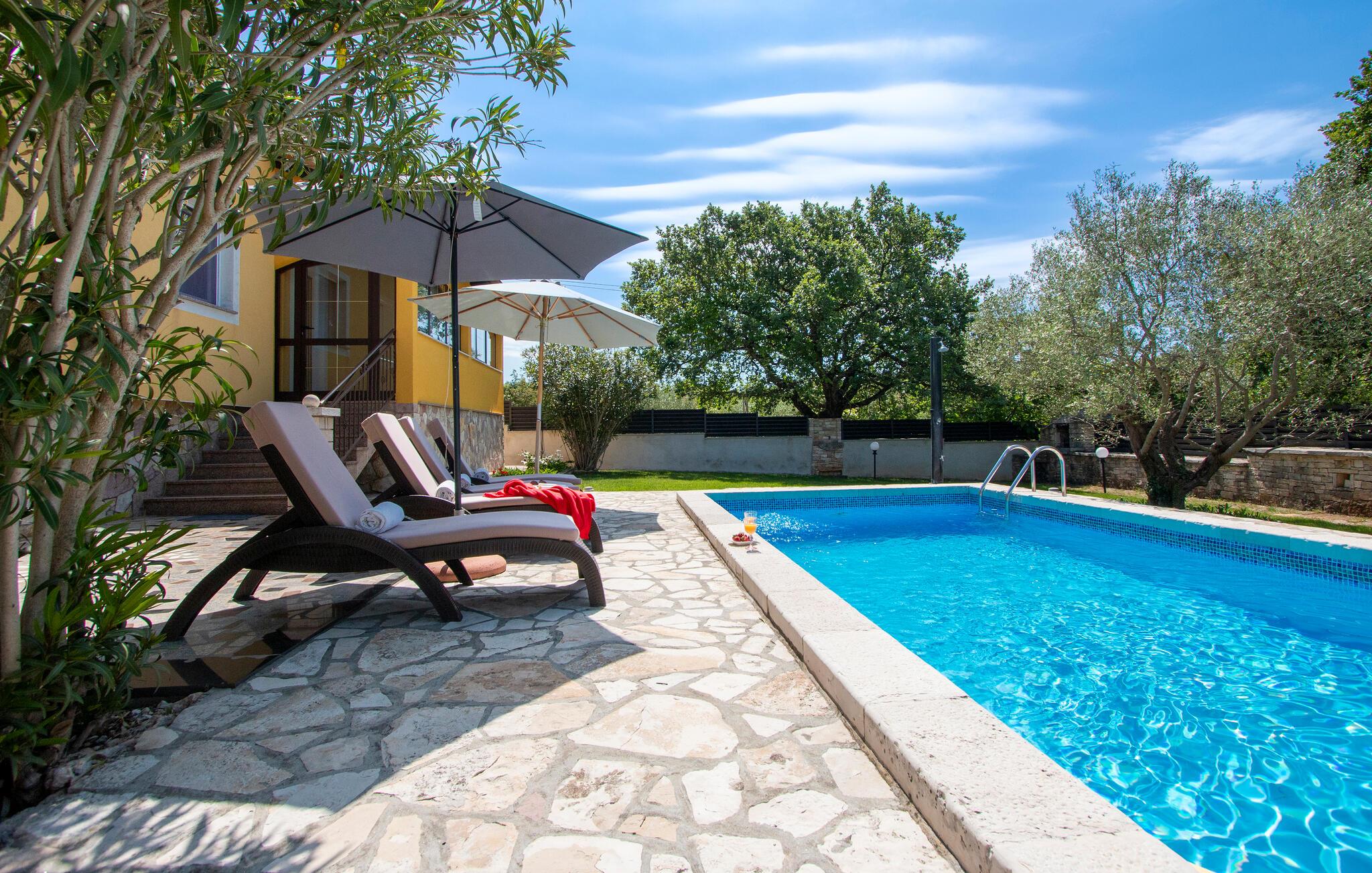 Nyd en solrig ferie i dette komfortable feriehus med pool i rolige omgivelser.