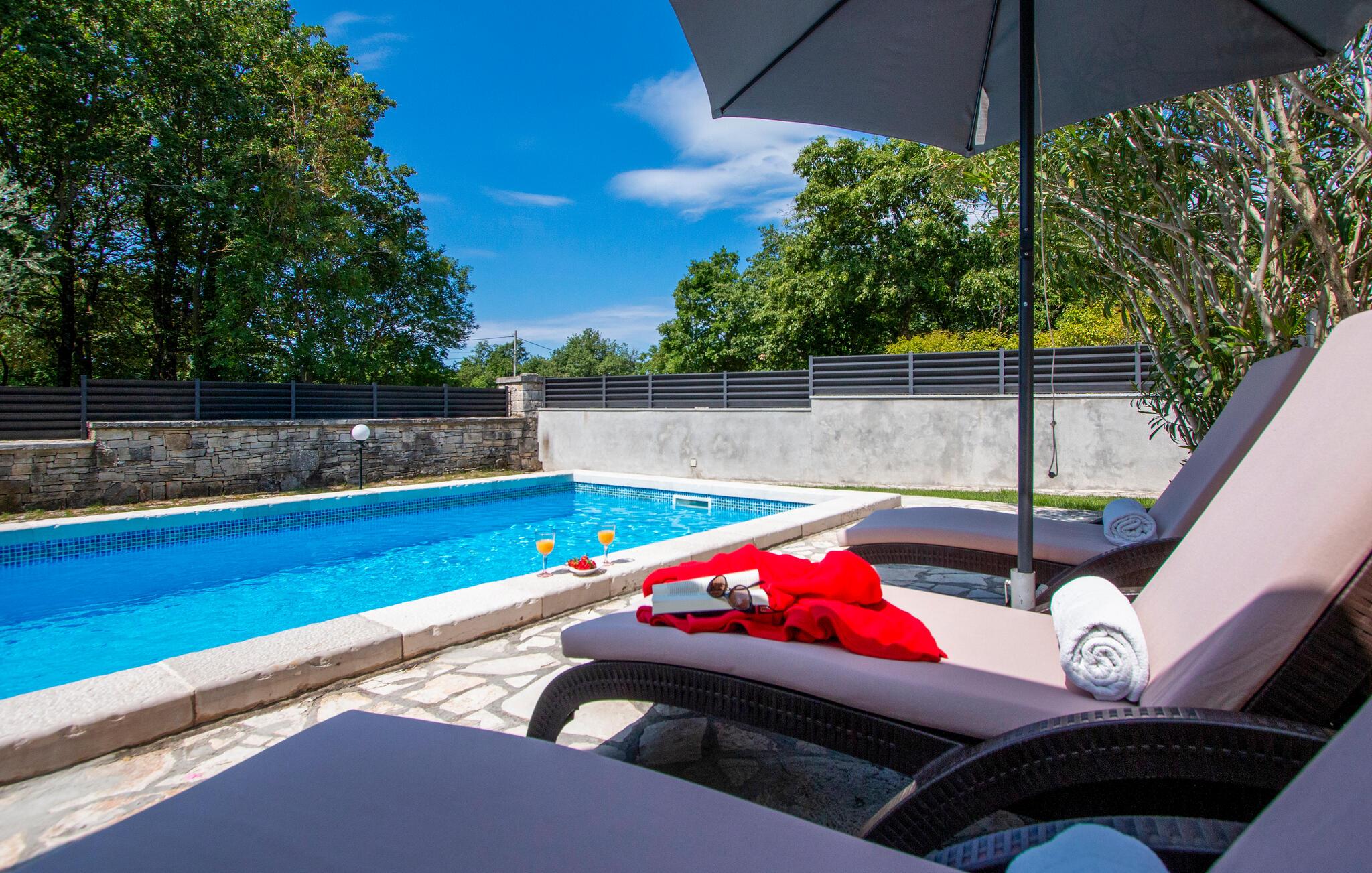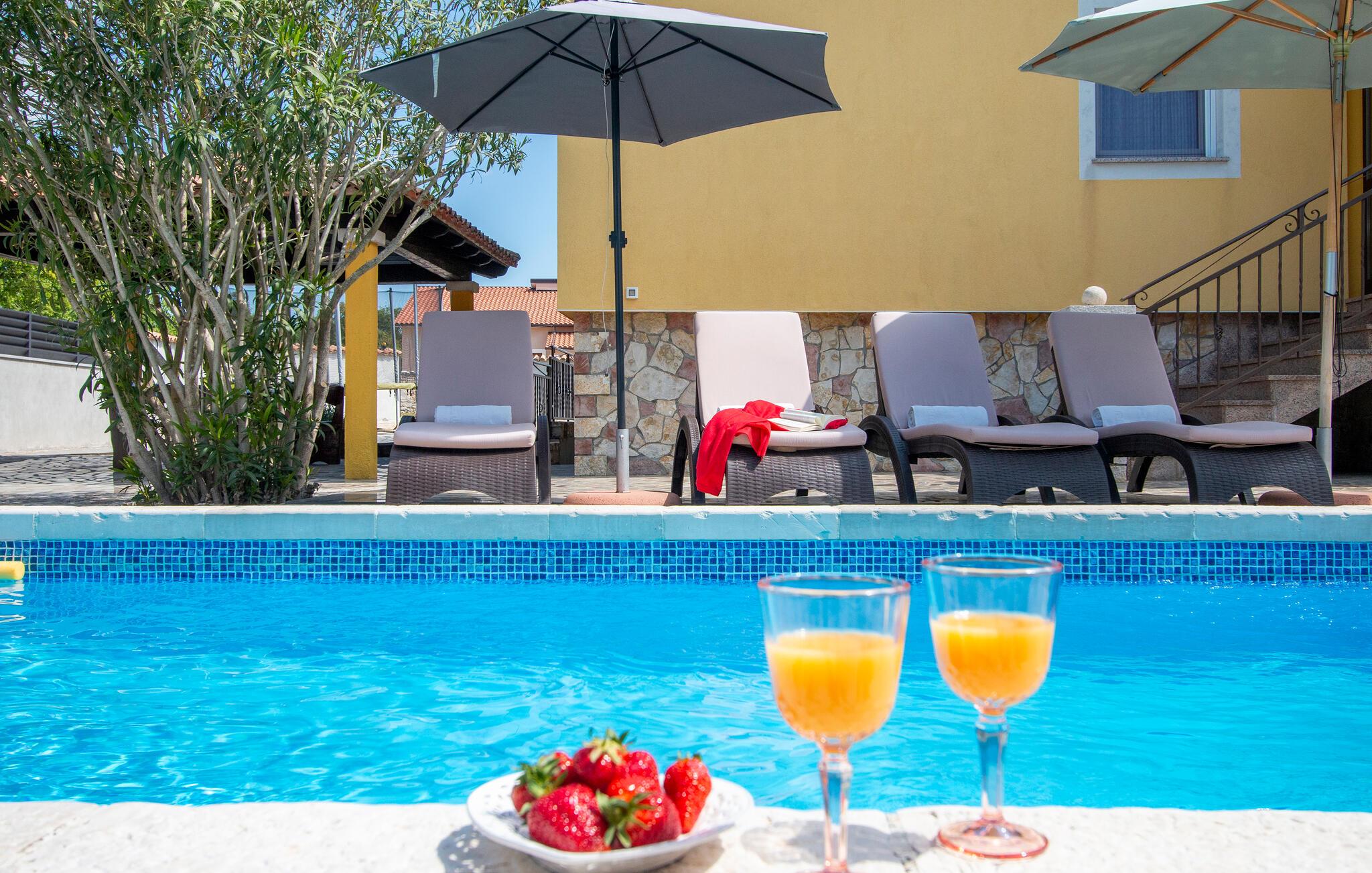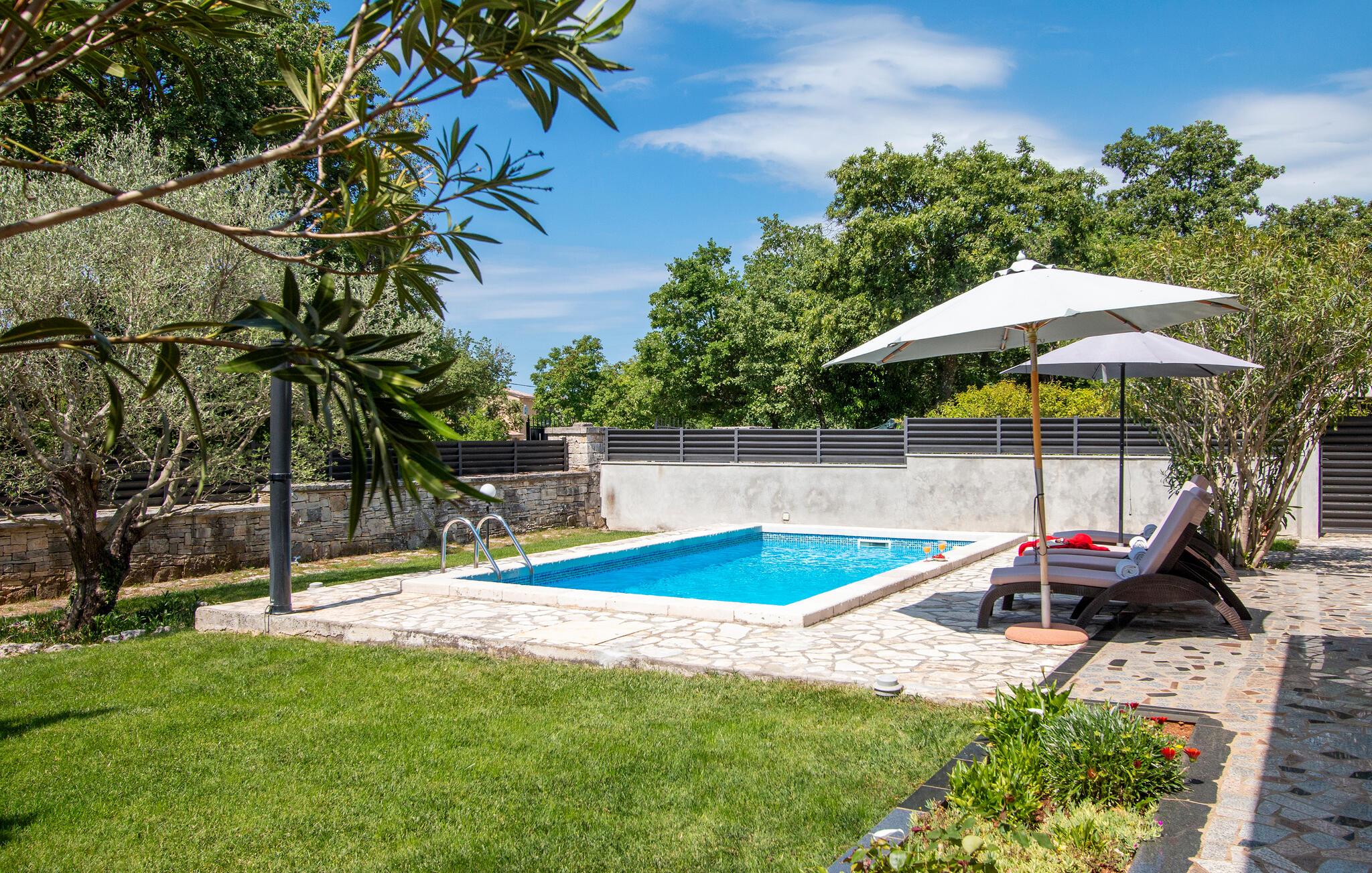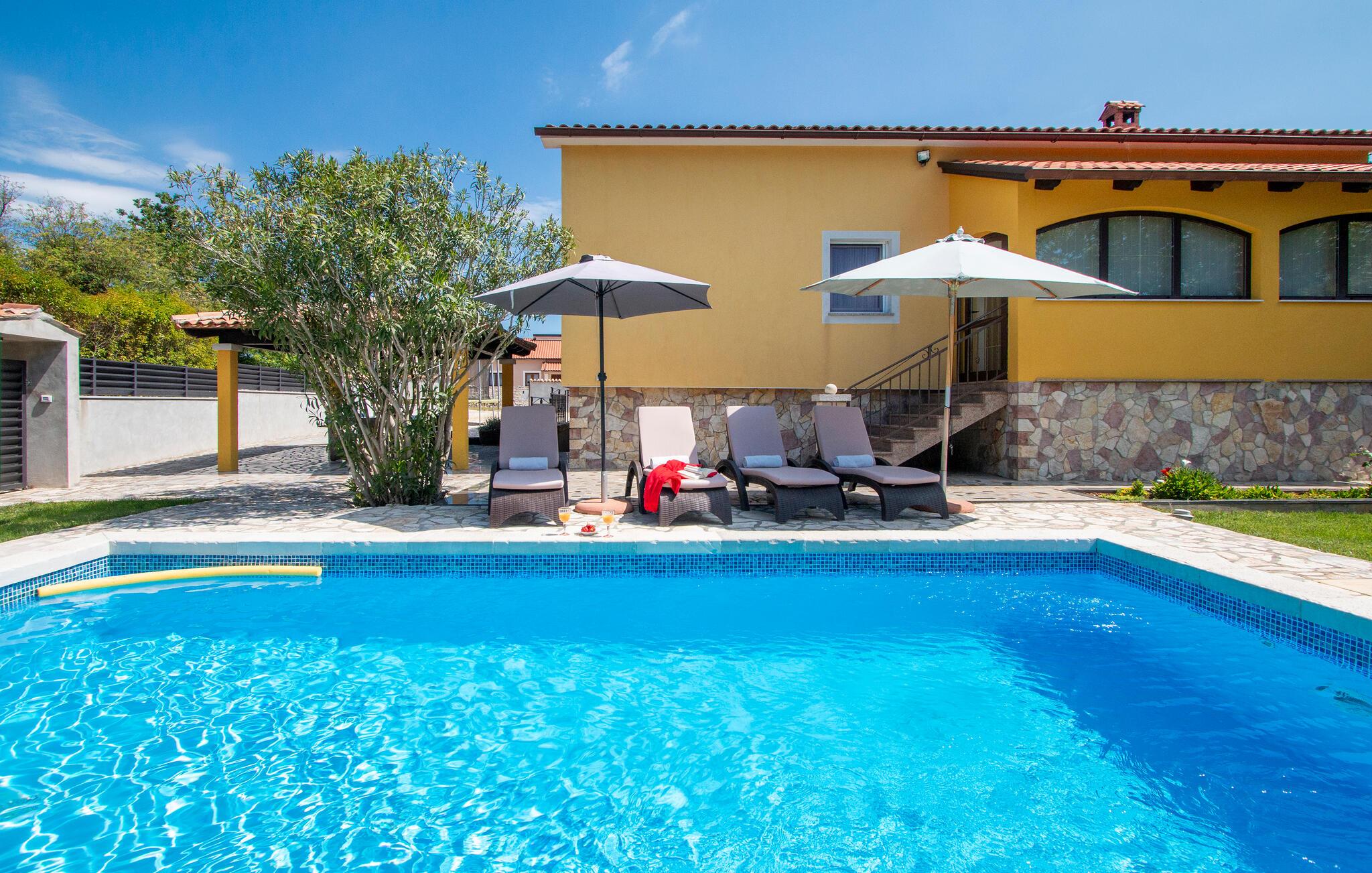 Nyd en solrig ferie i dette komfortable feriehus med pool i rolige omgivelser.