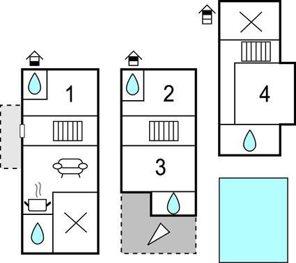 Badeværelse (nr. 3) - WC. Varmt og koldt vand. Bruser