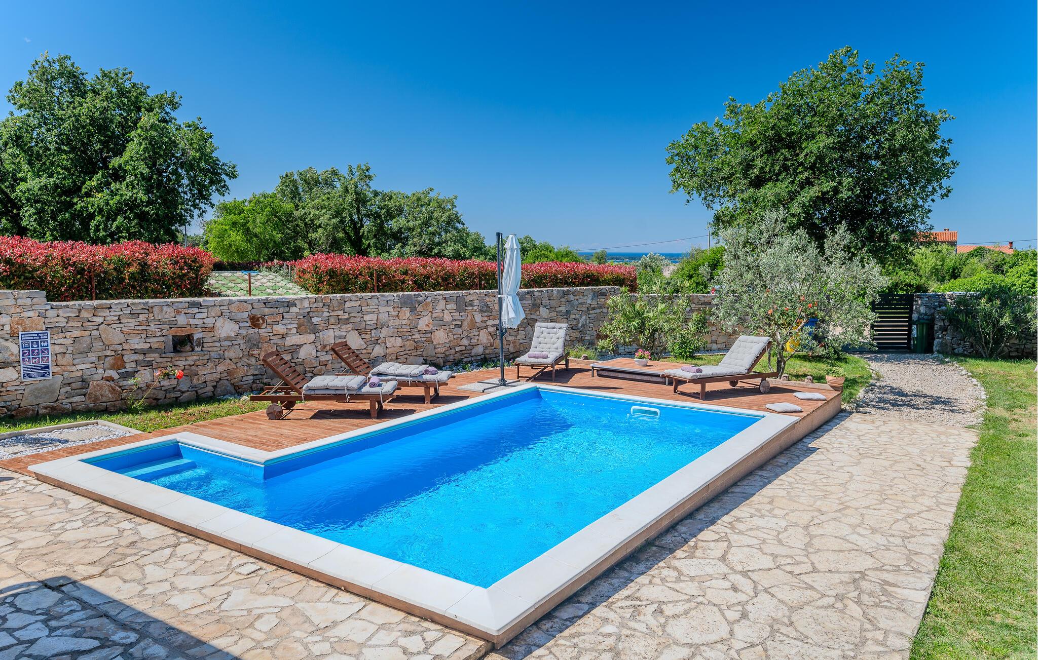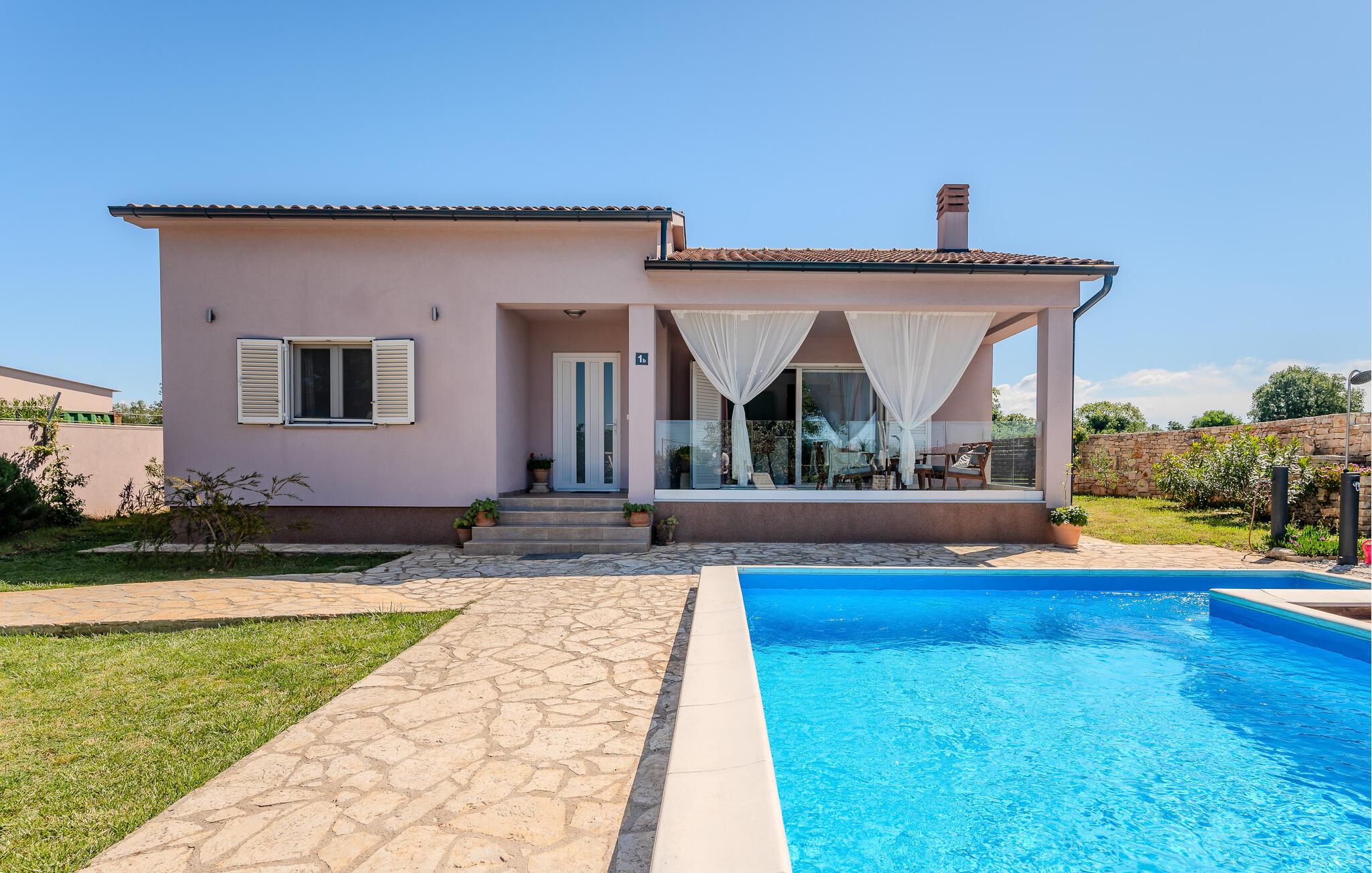 Alle der holder af natur og gerne vil bo tæt på havet, skal kigge nærmere på dette lille feriehus med egen pool. Bungalow’en ligger i begyndelsen af den lille by Savela. Slap af på den overdækkede terrasse med udsigt over poolen og hold en afslappet ferie med jeres familie. Gå og cykl ture i den skønne natur og besøg den lille by Vodnjan med sin relikviesamling og mumier i den smukke kirke Sv. Blasius. Vi anbefaler også en tur i båd ud til Brijuni øerne (Nationalpark), hvor der er fantastisk flora og fauna, rene strande og glasklart hav.