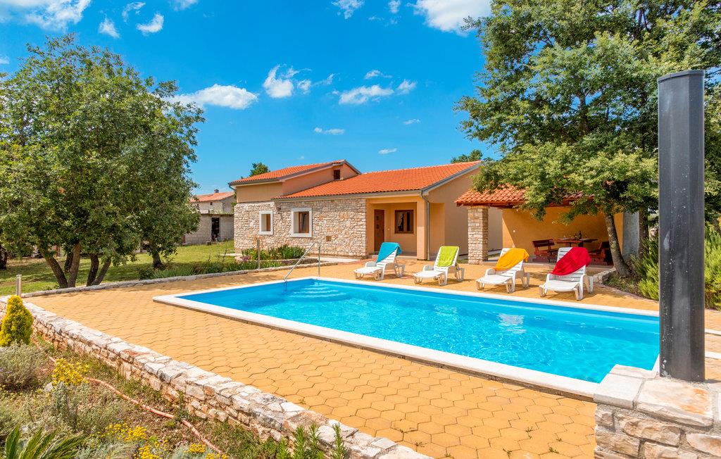 I den lille og rolige by Skicini, nær Vodnjan, ligger dette dejlige feriehus med privat pool. Det er moderne indrettet, men med traditionelle elementer af sten og træ, som er typiske for Istrien. Stor have, ideel til familier med børn, hvor der er en pool og en stor overdækket terrasse, til afslappede feriedage i den friske luft. I nærheden af mange cykelstier. Besøg det nærliggende Pula med monumenter fra romertiden og tag en tur til Nationalparken Brijuni hvis øer besidder en paradisisk skønhed. Om sommeren er der daglig afgang med båd fra Fazana.
