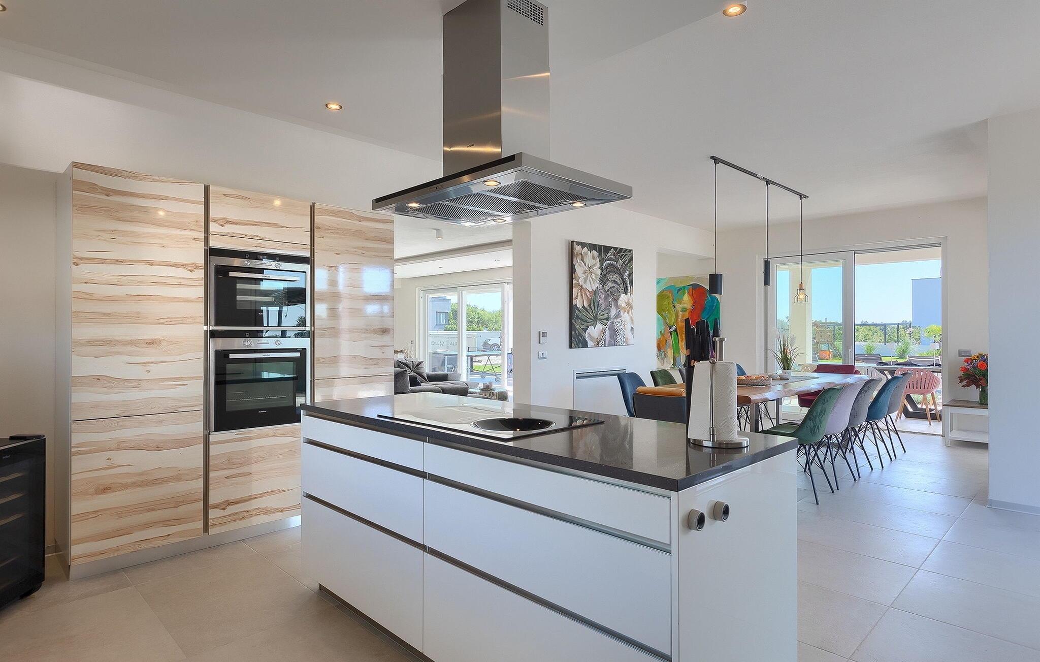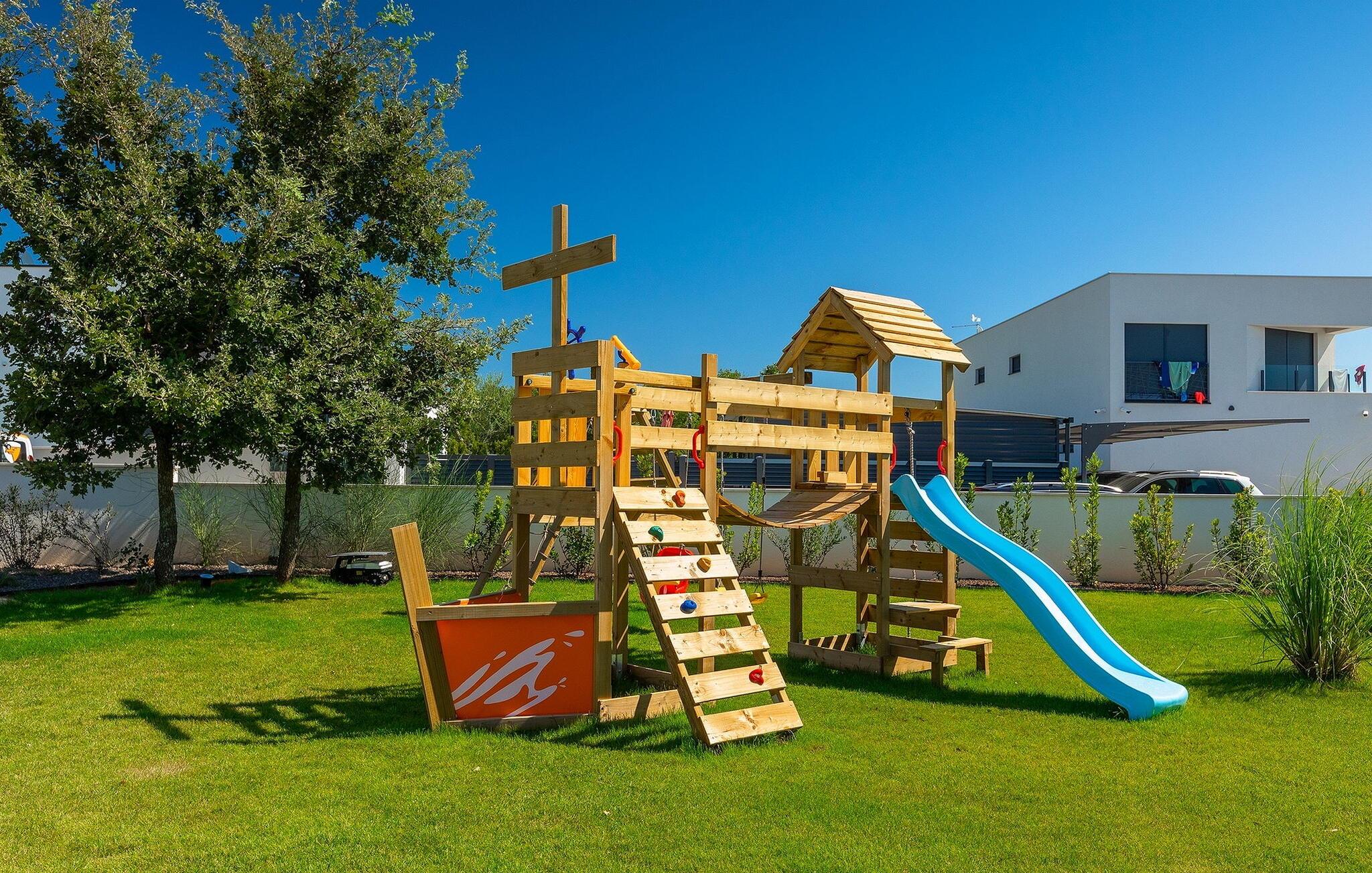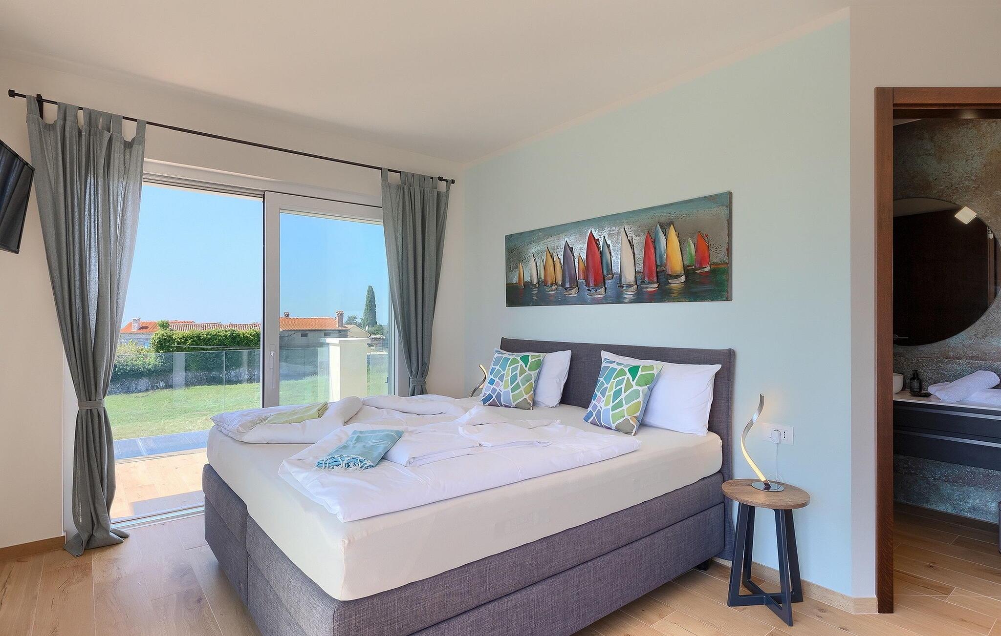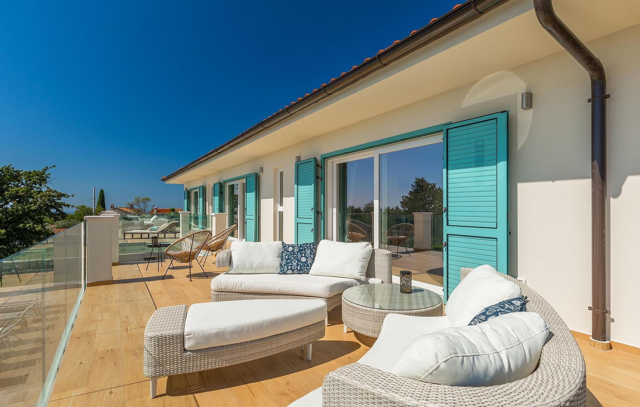 Villa Medici er en fantastisk luksusvilla med privat pool nær byen Pula. Ejendommen er det ideelle tilflugtssted for en større gruppe på 12+2 gæster i alt på 2 etager, 6 soveværelser, 6 badeværelser og et fantastisk udendørsområde. Der er mange højdepunkter udenfor, såsom den 65 m² opvarmede og private pool, hvor masser af sjov kan finde sted under dit ophold. Børnene vil helt sikkert nyde at tilbringe hele dagen i poolen, og forældrene kan have ro i sindet, da poolen har en dybde på 40 til 140 cm, hvilket gør den perfekt til alle aldre. Nyd andre fantastiske funktioner såsom lounge og pejs, solterrasse, et udendørs køkken, en hel legeplads for børn, bordtennis, volleyball og meget mere. Tilbered lækre og traditionelle kroatiske retter på gasgrillen og nyd dejlige familieaftener med dine kære i den overdækkede udendørs spiseplads. Villaens indretning vil også glæde dig - på de to etager kan du se et moderne og nøje udvalgt design med masser af træ og grå detaljer samt mange farverige billeder og statuer, der fremhæver villaens lysstyrke. Stueetagen af ??villaen har en rummelig opholds- og spisestue med masser af naturligt lys, et fuldt udstyret køkken, et dejligt bibliotek med en bogsamling og et fodboldbord, et separat toilet og et soveværelse med dobbeltseng og eget badeværelse med et brusebad. Hvis du tager trappen til det øverste niveau, vil du finde yderligere 5 soveværelser og deres badeværelser. Alle værelser i Villa Medici har aircondition, alle har SAT TV og enten udgang til stueetagens terrasse eller udgang til altanerne, hvor du kan nyde den smukke udsigt fra havemøblerne. Villa Medici tilbyder også sine gæster fuldt klimatiseret indkvartering, en stærk WiFi-forbindelse og en ladestation til elbiler. Book Villa Medici og tilbring en uforglemmelig ferie i en luksusejendom i hjertet af Istrien.