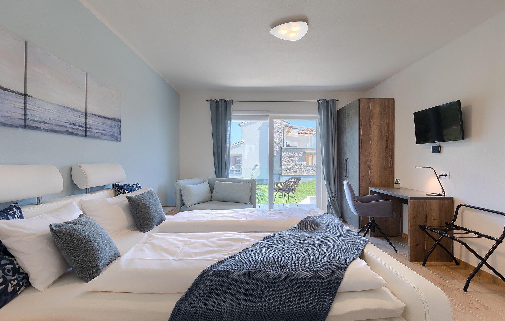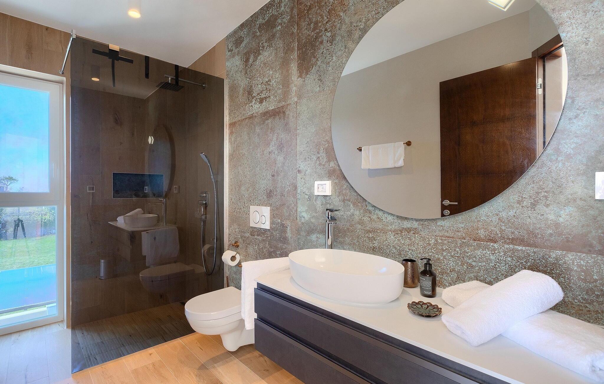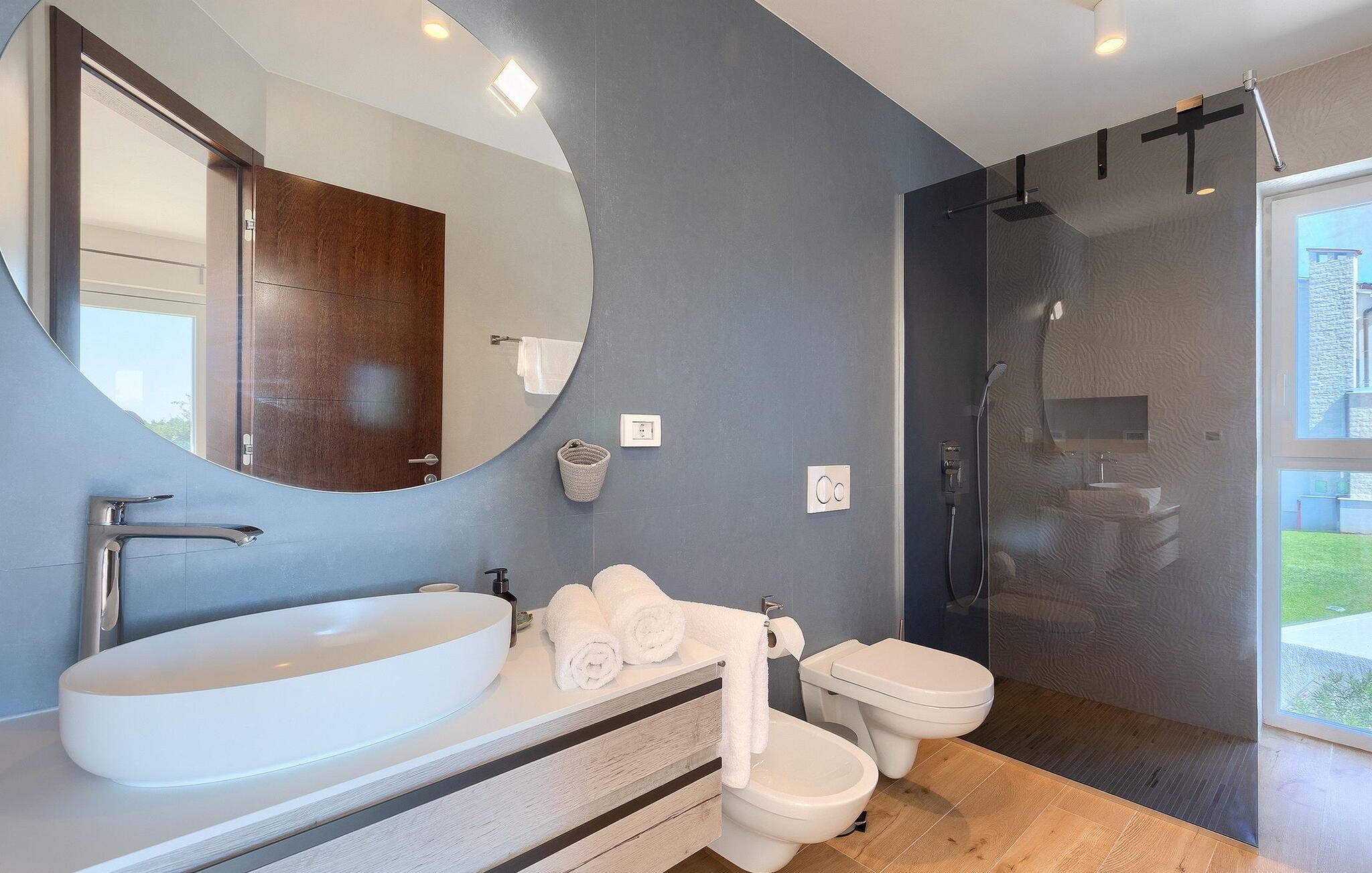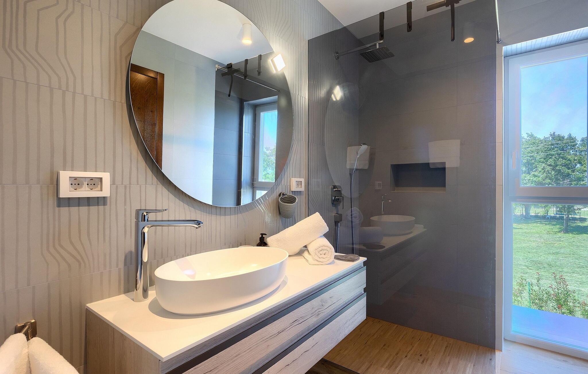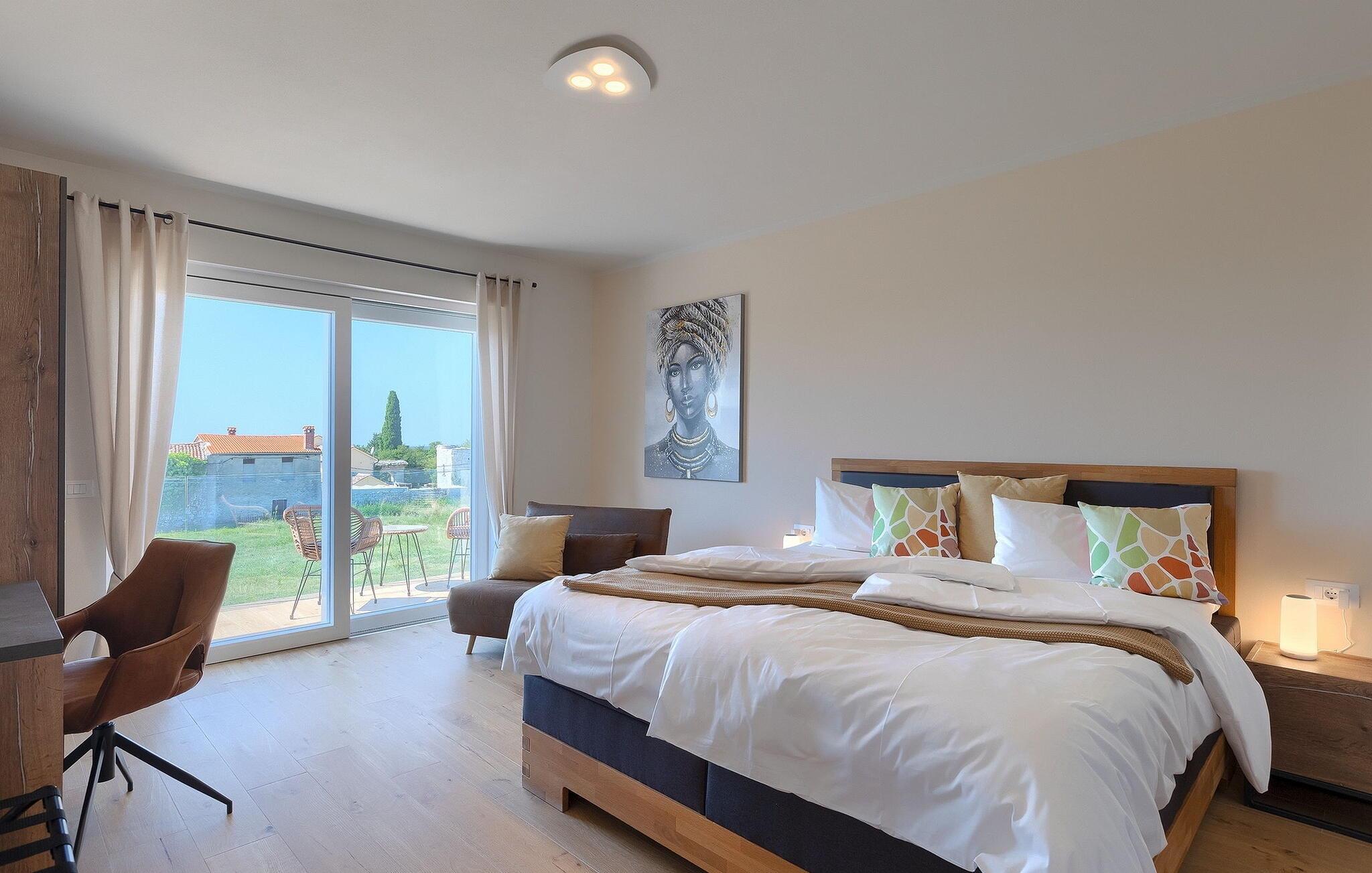 Villa Medici er en fantastisk luksusvilla med privat pool nær byen Pula. Ejendommen er det ideelle tilflugtssted for en større gruppe på 12+2 gæster i alt på 2 etager, 6 soveværelser, 6 badeværelser og et fantastisk udendørsområde. Der er mange højdepunkter udenfor, såsom den 65 m² opvarmede og private pool, hvor masser af sjov kan finde sted under dit ophold. Børnene vil helt sikkert nyde at tilbringe hele dagen i poolen, og forældrene kan have ro i sindet, da poolen har en dybde på 40 til 140 cm, hvilket gør den perfekt til alle aldre. Nyd andre fantastiske funktioner såsom lounge og pejs, solterrasse, et udendørs køkken, en hel legeplads for børn, bordtennis, volleyball og meget mere. Tilbered lækre og traditionelle kroatiske retter på gasgrillen og nyd dejlige familieaftener med dine kære i den overdækkede udendørs spiseplads. Villaens indretning vil også glæde dig - på de to etager kan du se et moderne og nøje udvalgt design med masser af træ og grå detaljer samt mange farverige billeder og statuer, der fremhæver villaens lysstyrke. Stueetagen af ??villaen har en rummelig opholds- og spisestue med masser af naturligt lys, et fuldt udstyret køkken, et dejligt bibliotek med en bogsamling og et fodboldbord, et separat toilet og et soveværelse med dobbeltseng og eget badeværelse med et brusebad. Hvis du tager trappen til det øverste niveau, vil du finde yderligere 5 soveværelser og deres badeværelser. Alle værelser i Villa Medici har aircondition, alle har SAT TV og enten udgang til stueetagens terrasse eller udgang til altanerne, hvor du kan nyde den smukke udsigt fra havemøblerne. Villa Medici tilbyder også sine gæster fuldt klimatiseret indkvartering, en stærk WiFi-forbindelse og en ladestation til elbiler. Book Villa Medici og tilbring en uforglemmelig ferie i en luksusejendom i hjertet af Istrien.