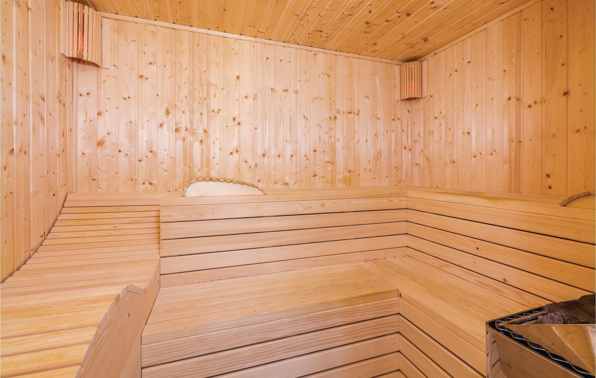 Det består af hovedbygningen, hvor stuen og soveværelserne er placeret. Interiøret er elegant og stilfuldt. Det andet, mindre hus ligger adskilt fra hovedhuset og er reserveret til fritidsudfoldelser. Her finder du billard, elektronisk dart, bordfodbold, samt sauna og nogle træningsredskaber. På den helt lukkede ejendom er også en fantastisk udendørs swimmingpool, perfekt til afkøling efter solbadning. Nyd det hyggelige samvær, eller tilbered en dejlig middag på grillen i den skøn gårdhave. Et legehus, gynger og rutsjebane vil børnene blive begejstrede for.