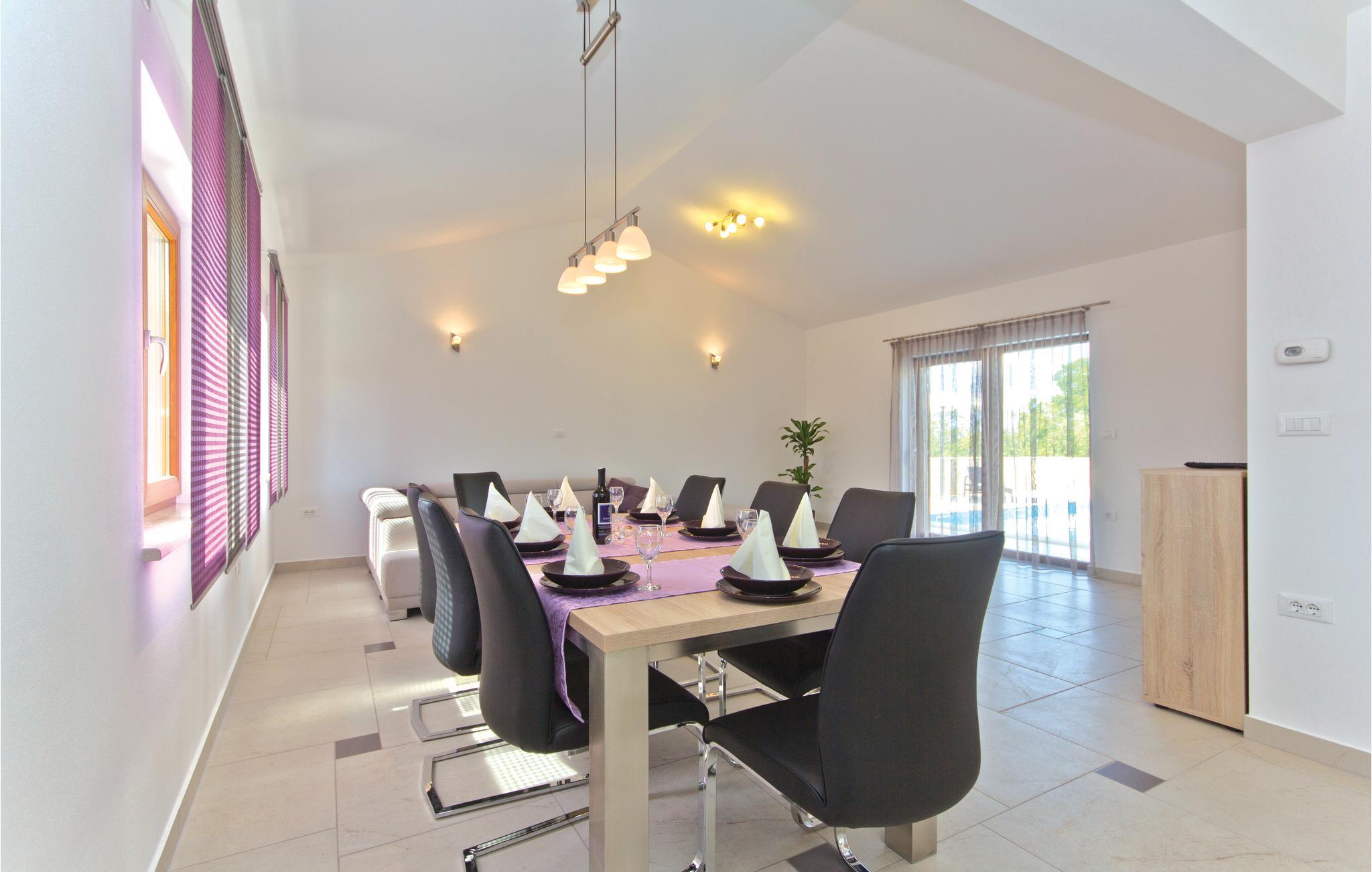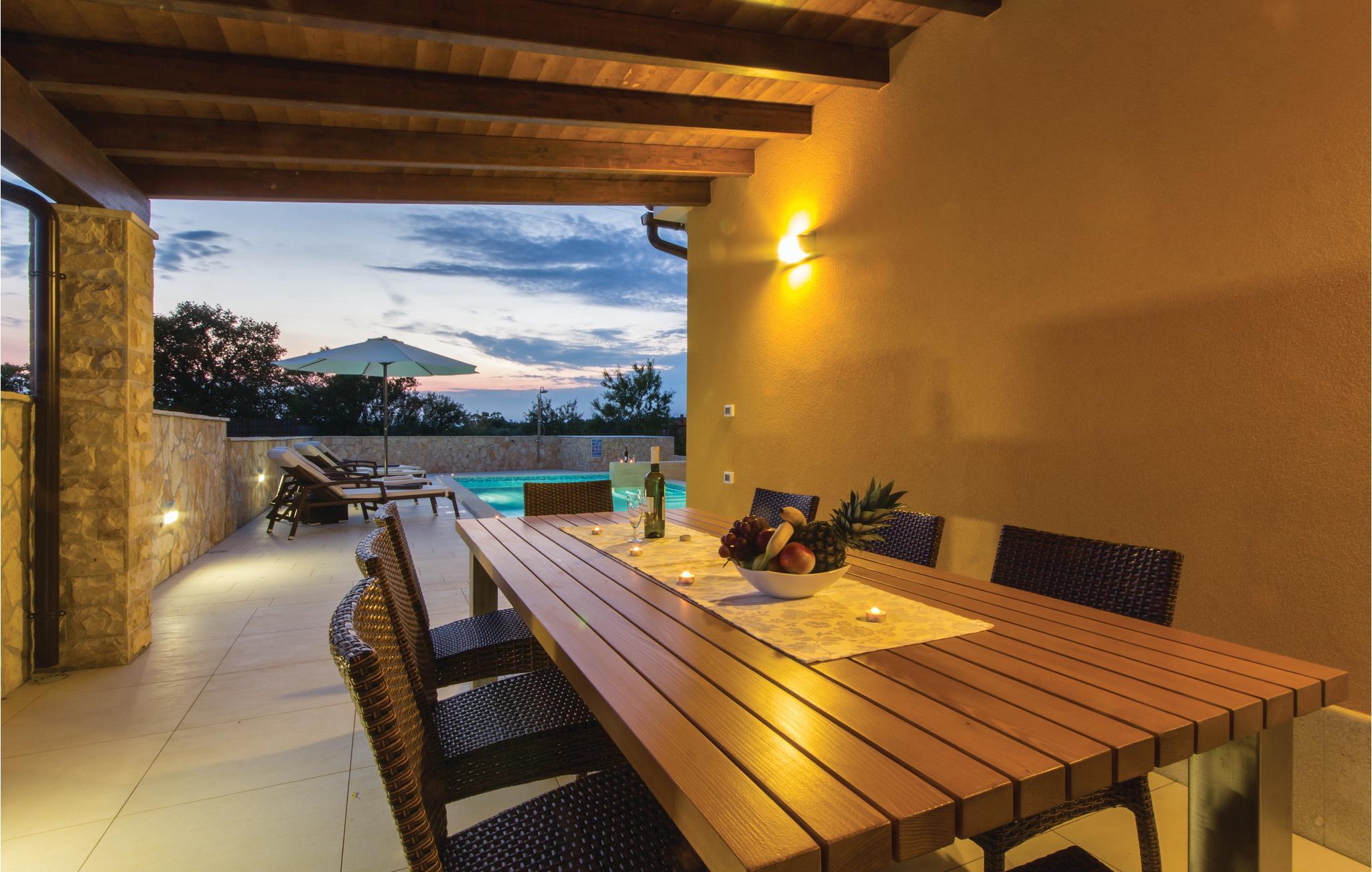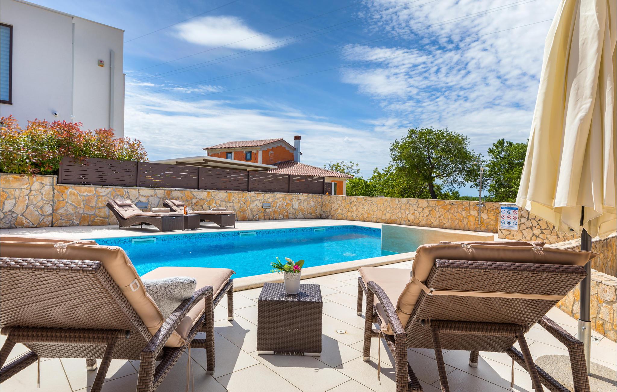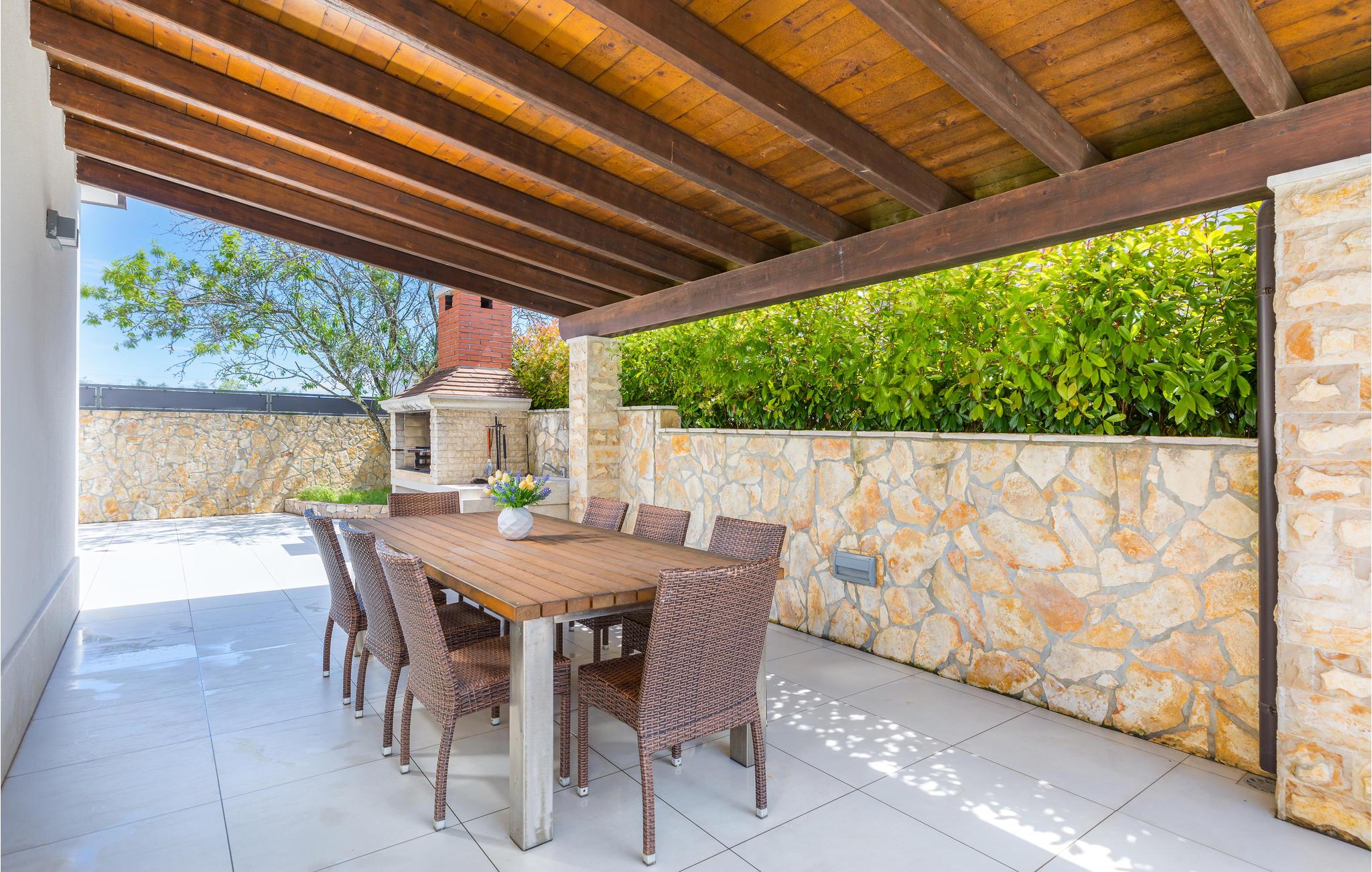 Dette lyse og hyggelige feriehus er perfekt til en ferie med familie eller venner. Det er komfortabelt indrettet og imponerer især med det vidunderlige udendørs område. Tilbring mange dejlige timer ved den private pool, mens du nyder Kroatiens vidunderlige vejr. Slap af på en af de komfortable liggestole, mens børnene plasker rundt i poolen eller leger på rutsjebanen og gyngerne. På den delvist overdækkede terrasse kan I nyde hyggelige måltider sammen og runde dagen af med et glas vin.