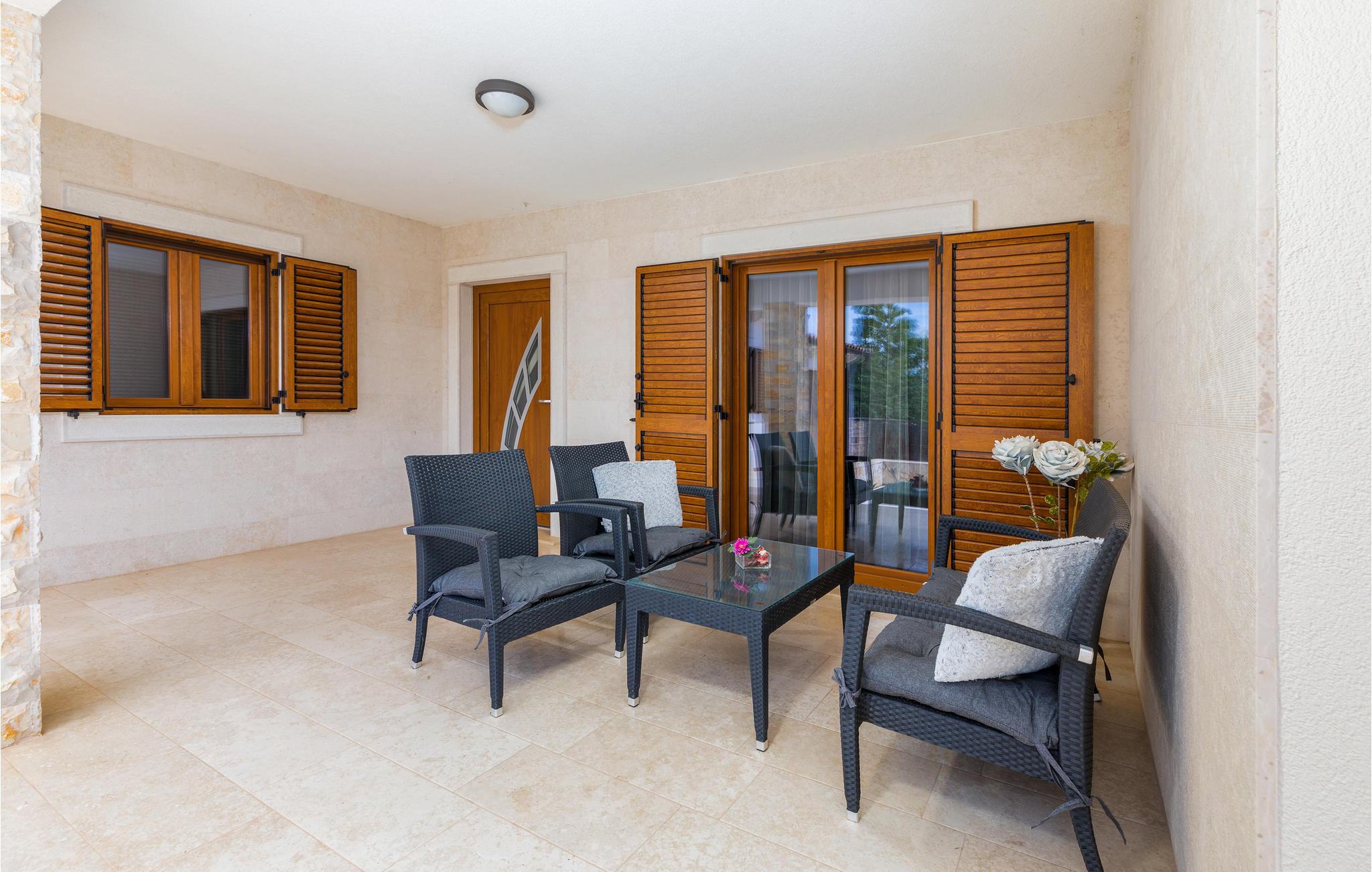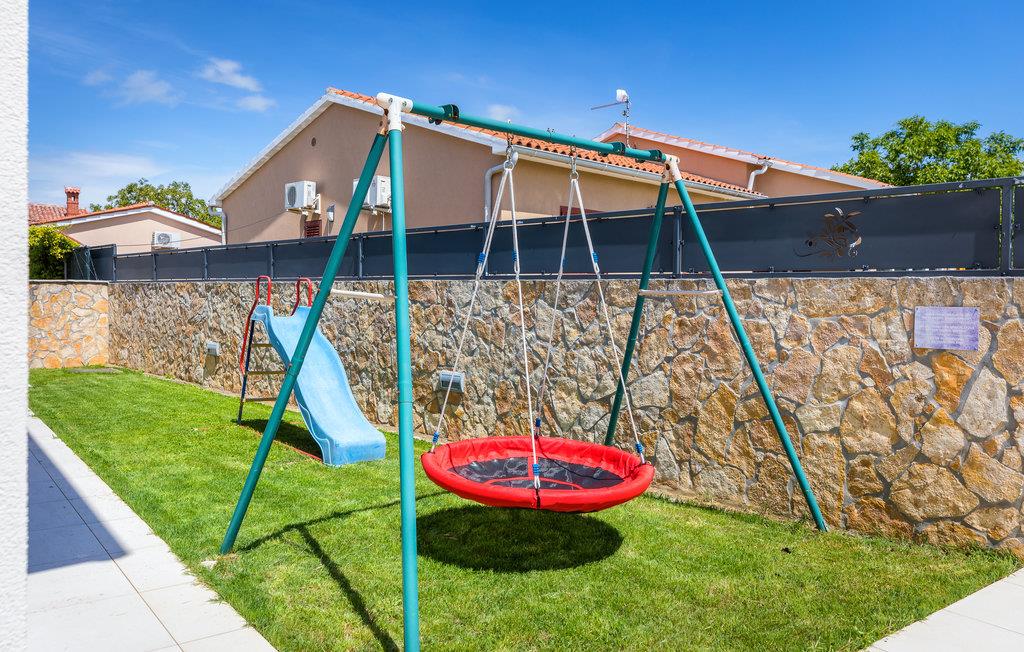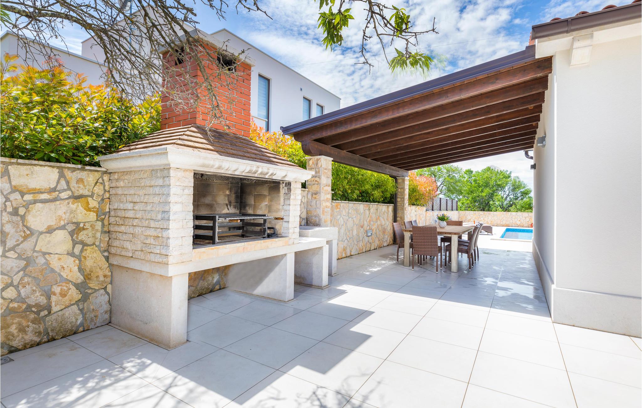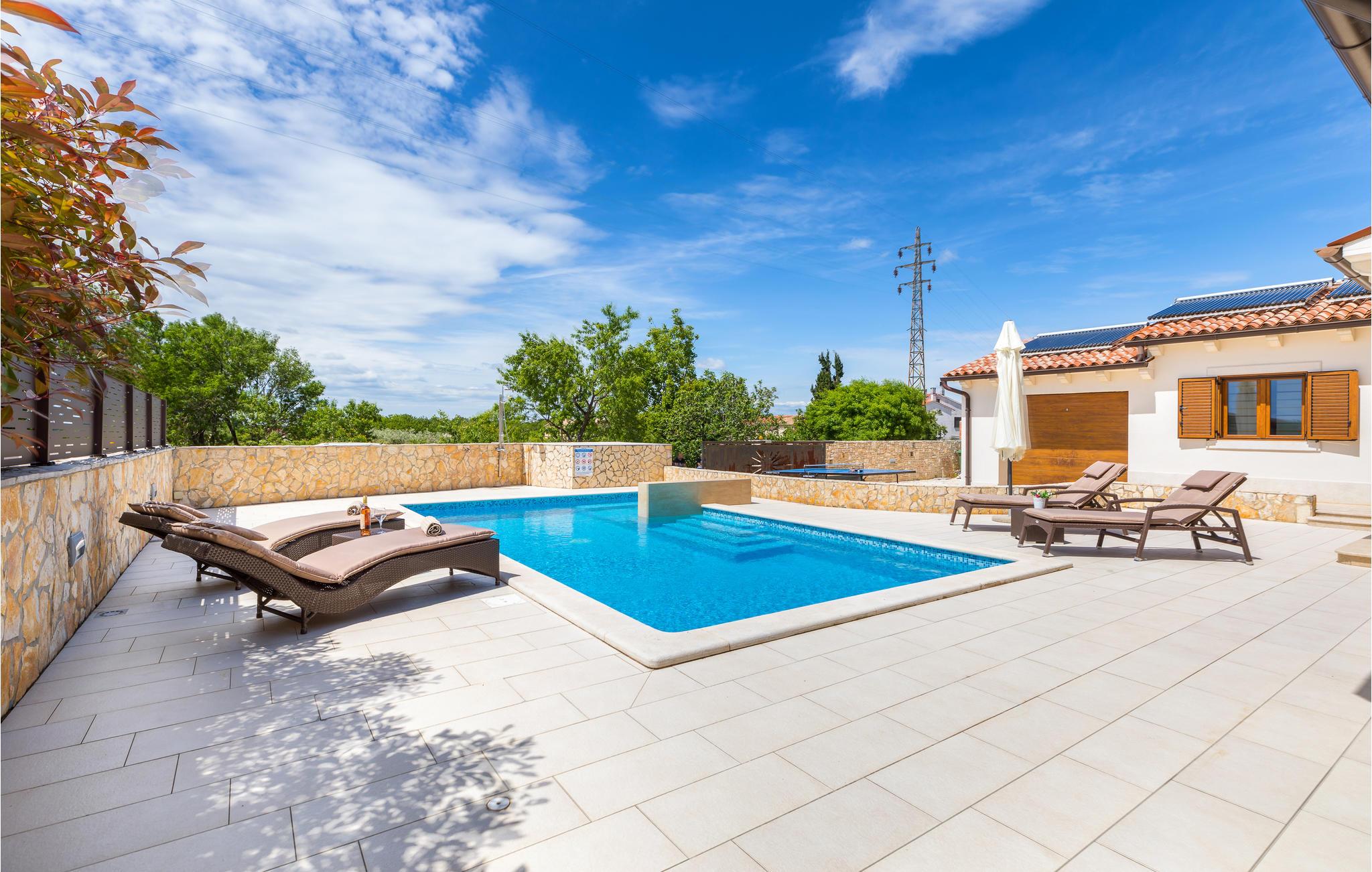 Dette lyse og hyggelige feriehus er perfekt til en ferie med familie eller venner. Det er komfortabelt indrettet og imponerer især med det vidunderlige udendørs område. Tilbring mange dejlige timer ved den private pool, mens du nyder Kroatiens vidunderlige vejr. Slap af på en af de komfortable liggestole, mens børnene plasker rundt i poolen eller leger på rutsjebanen og gyngerne. På den delvist overdækkede terrasse kan I nyde hyggelige måltider sammen og runde dagen af med et glas vin.