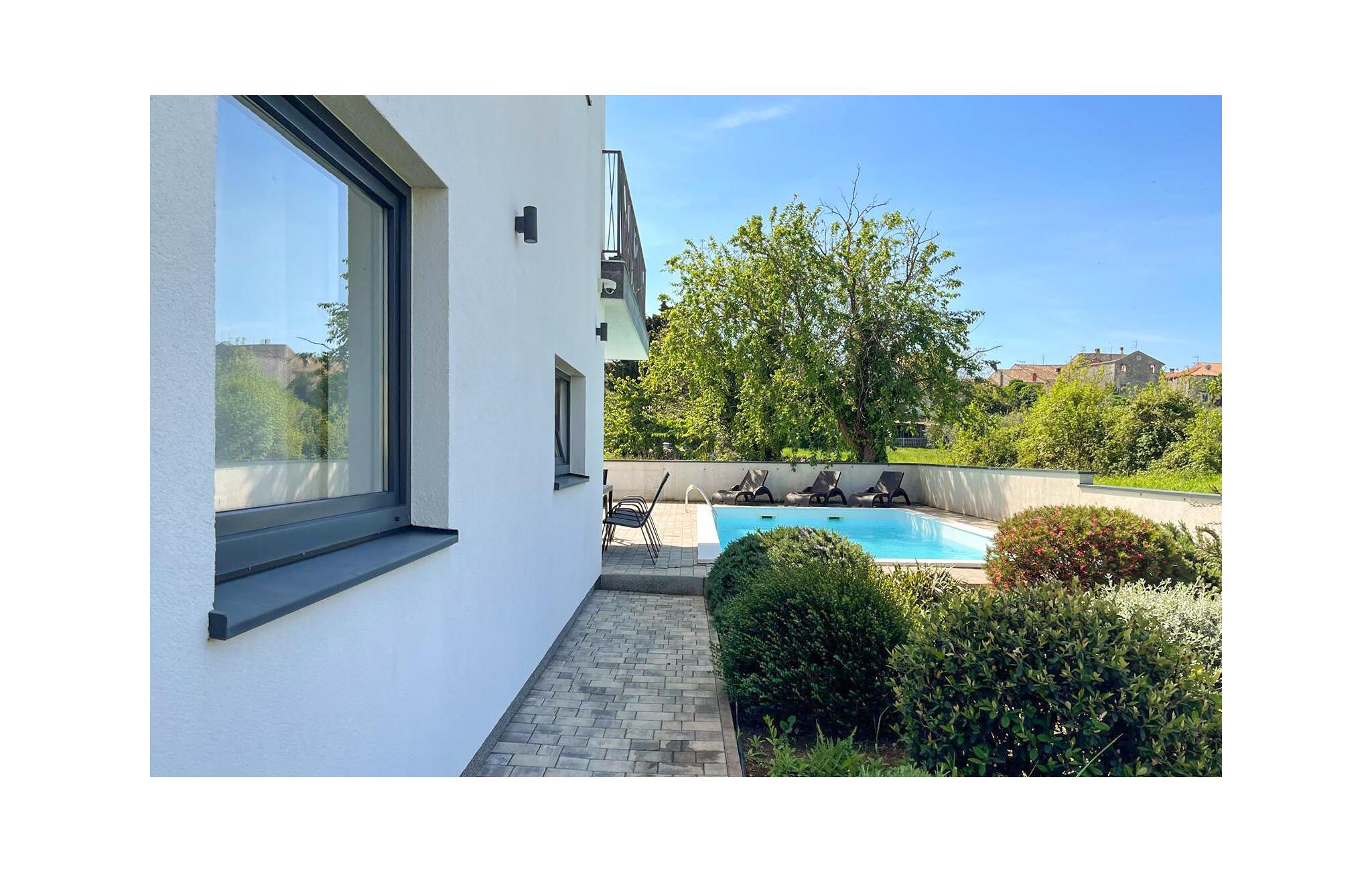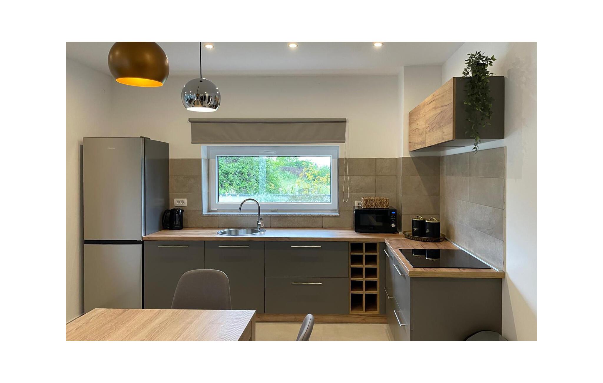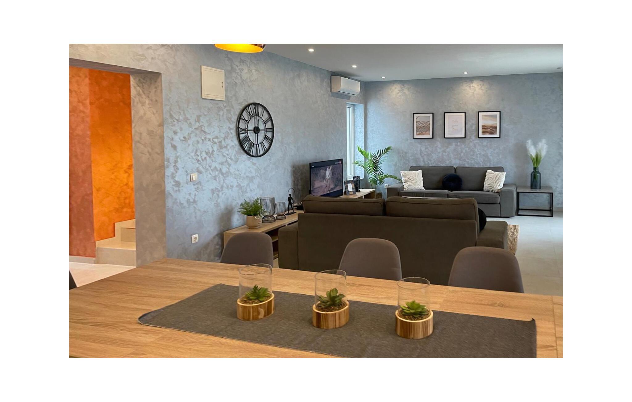 Med udsigt til havet og omgivet af den idylliske natur ved Vodnjan byder dette rummelige feriehus jer velkommen. Tilbered lækre retter i det fuldt udstyrede køkken, og nyd dem sammen ved det store spisebord. Slap af i den hyggelige stue, som med sine komfortable sofaer og et smart-TV er perfekt til filmaftener, eller brug rummet til rolige læsestunder i en afslappet atmosfære.