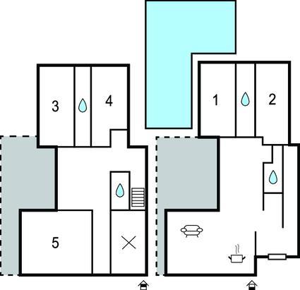 Badeværelse 5m2 (nr. 1) - WC. Varmt og koldt vand. Bruser