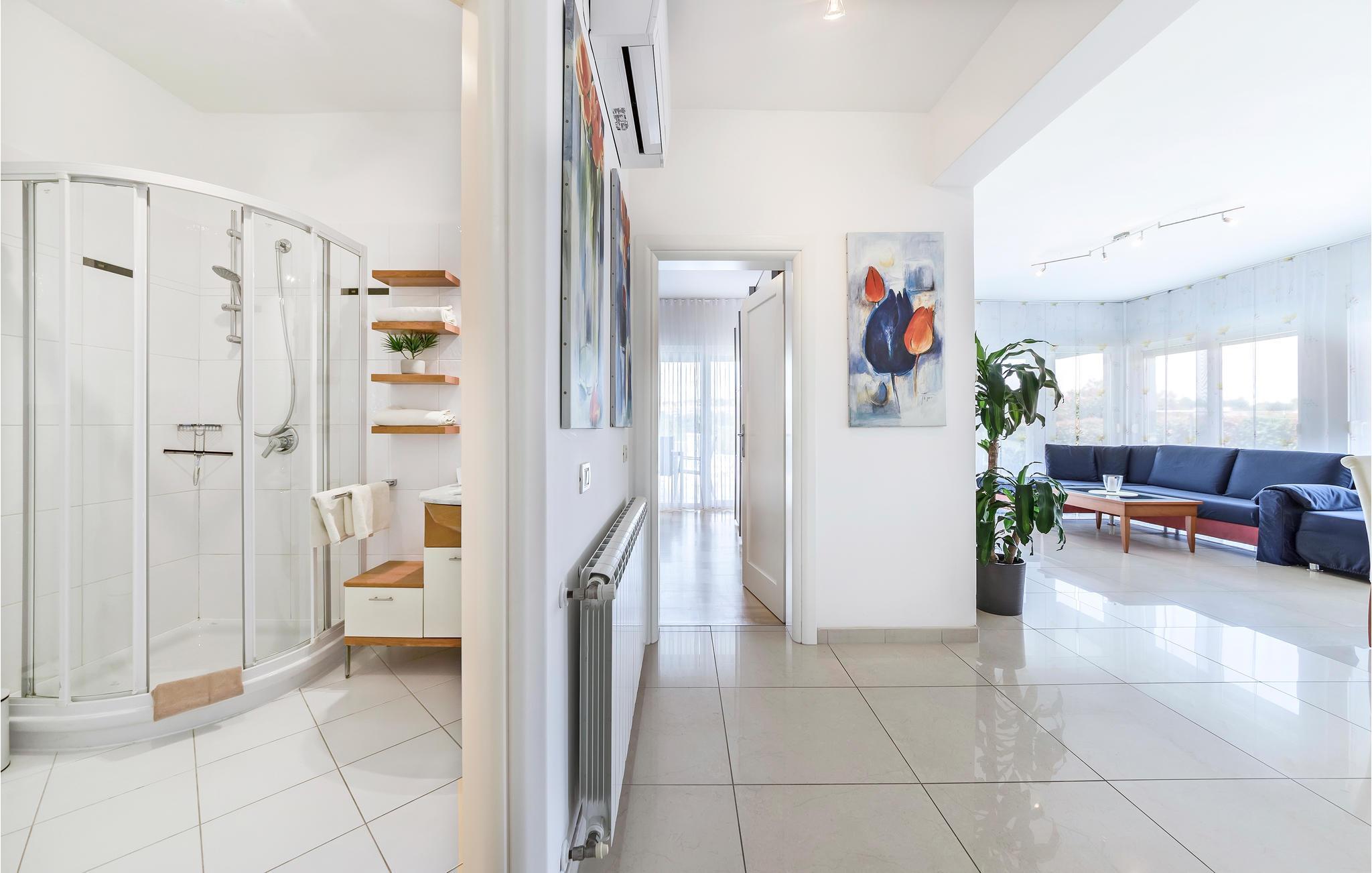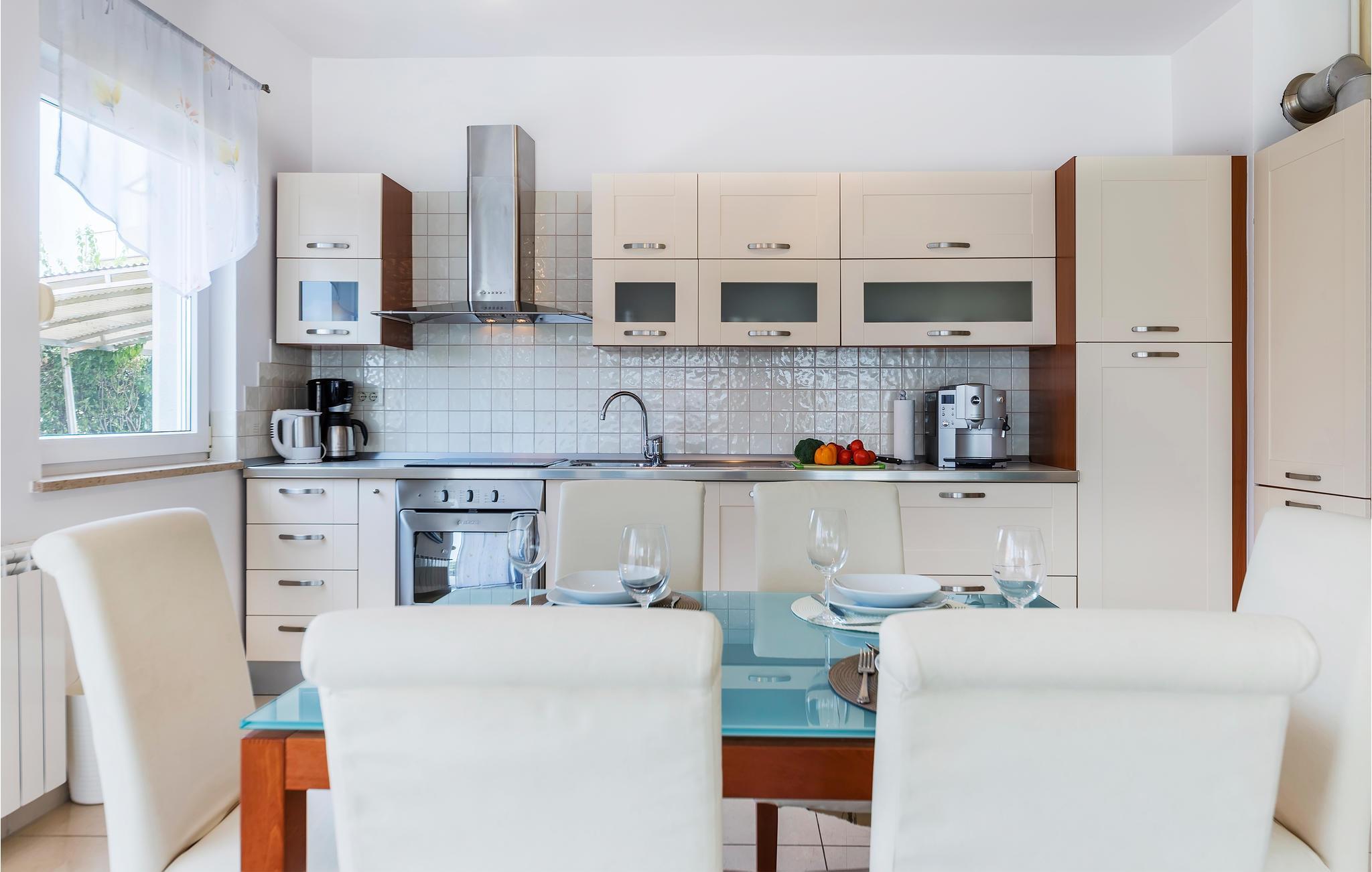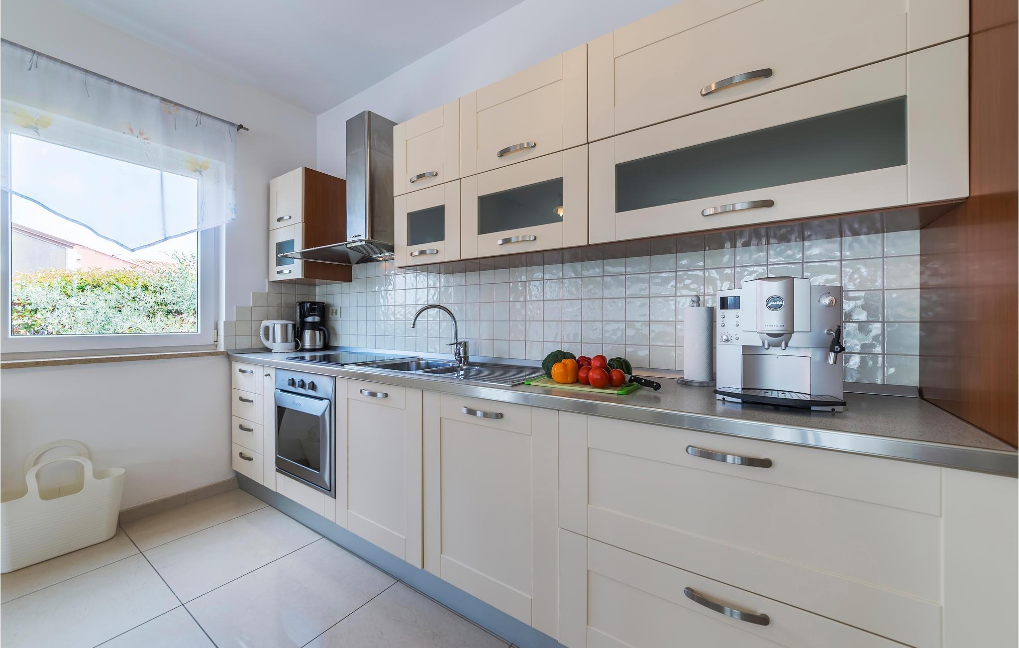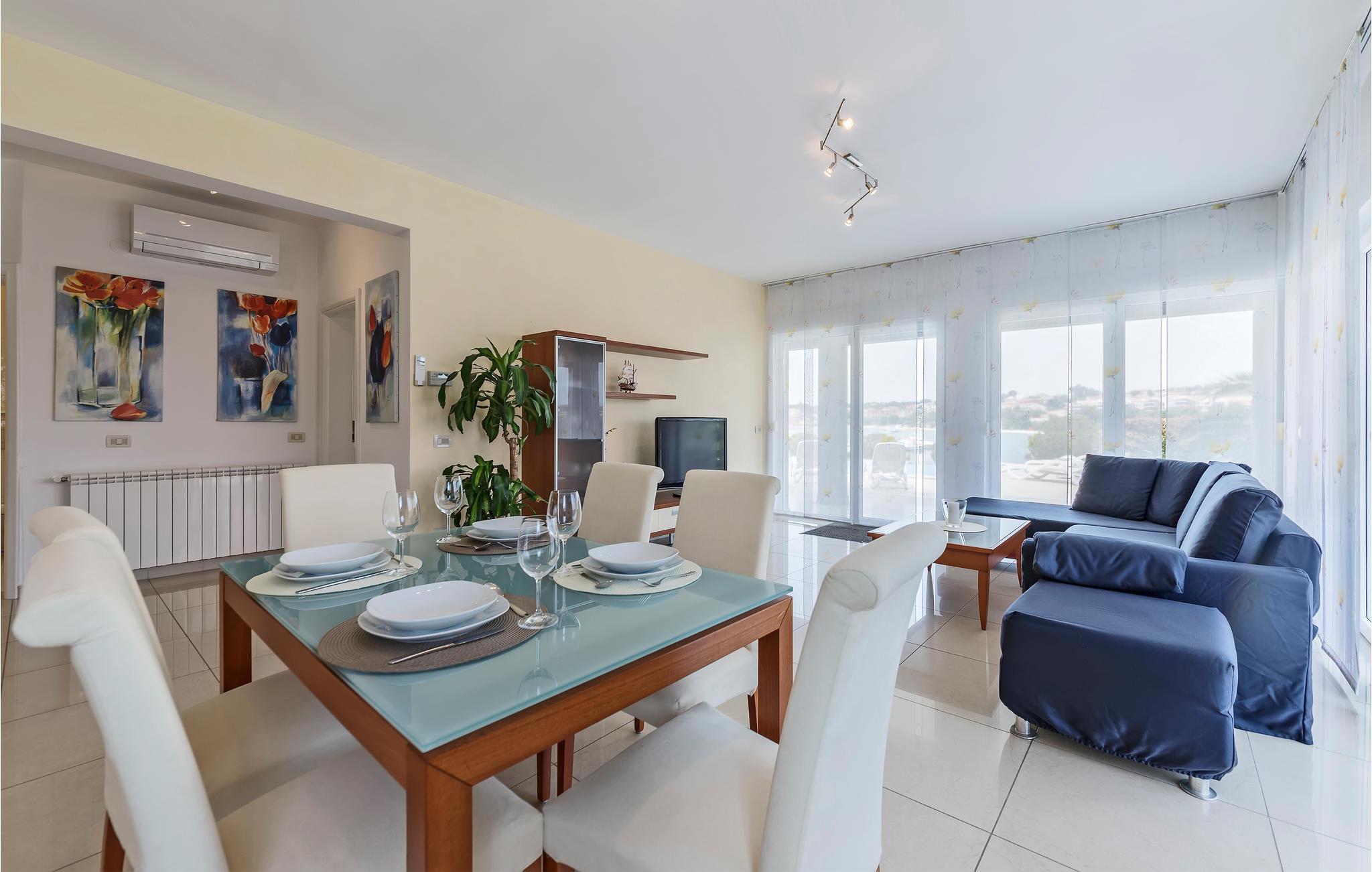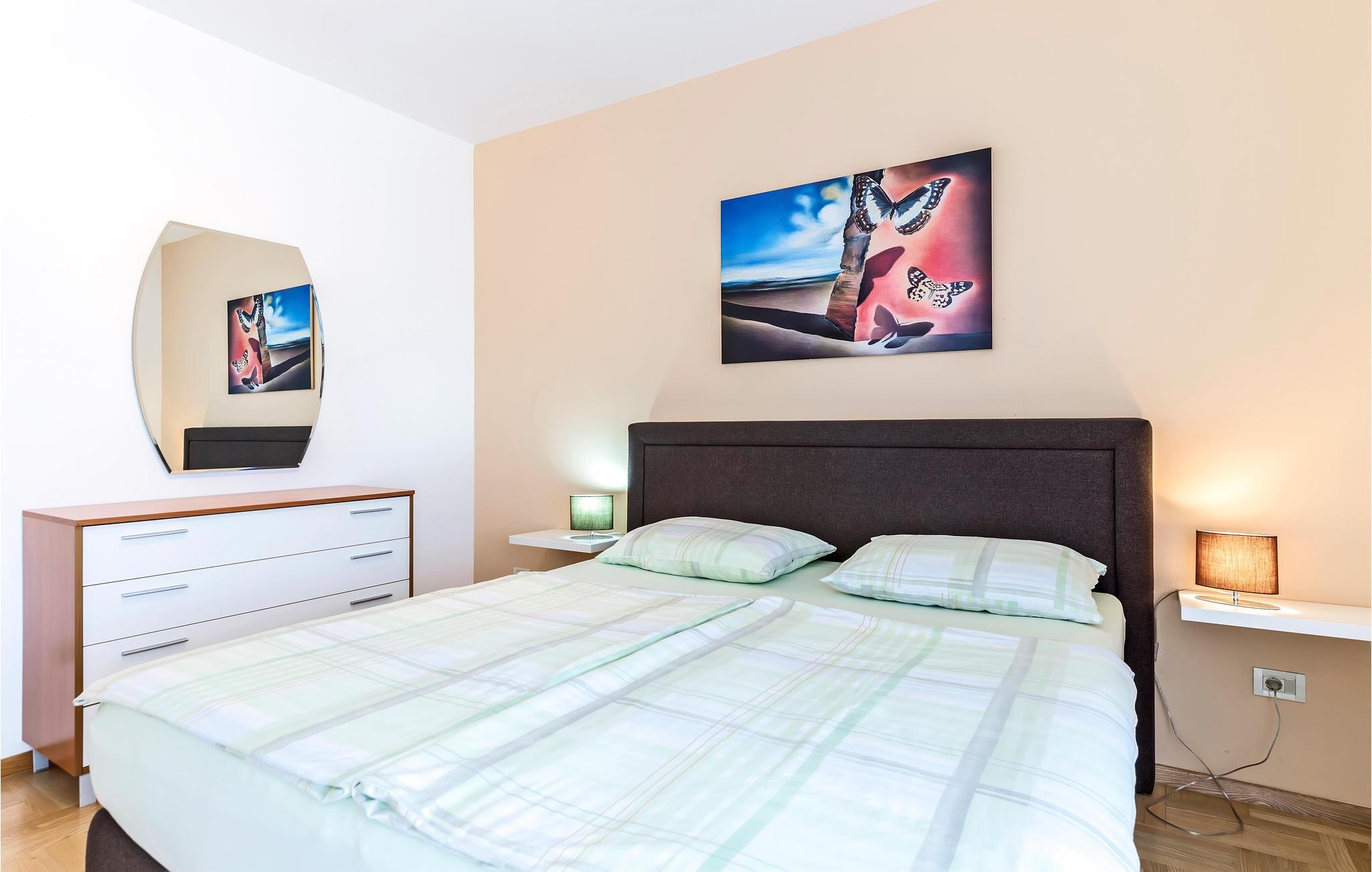 Lejligheden venter jer i stueetagen i et hus og er udstyret med møbler af høj kvalitet. Indretningen er moderne og lys. Med 2 soveværelser med dobbeltsenge tilbyder ferielejligheden plads til 4 personer, der kan tilbringe en afslappende ferie nær havet her når som helst på året. Takket være aircondition kan I nyde behagelige stuetemperaturer her også på varme sommerdage.