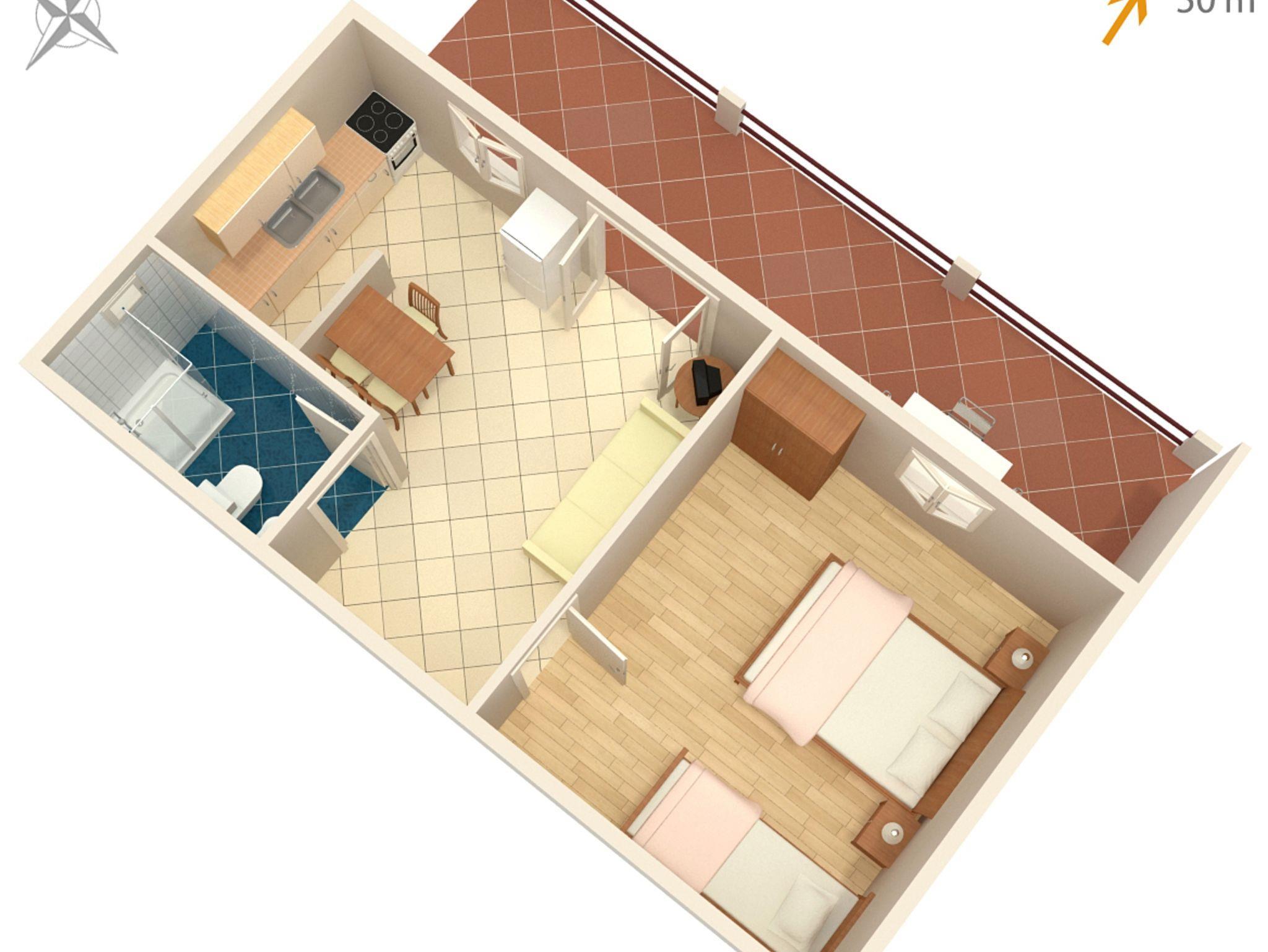 Ferienwohnung bietet Platz für 4 Gäste. Die Betten sind in Schlafzimmern, die es 1 gibt, und in Esszimmer, innerhalb einer Gesamtfläche von 32m2, angeordnet. Die Gäste haben eine eigene Terrasse zur Verfügung, auf der sie in warmen Sommernächten genießen können. Es ist erlaubt, Speisen auf dem Gemeinschafts-Grill vorzubereiten. In der Unterkunftseinheit besteht die Möglichkeit des Mitbringens von Haustieren gegen Aufpreis. IM PREIS INBEGRIFFEN: Kurtaxe, Endreinigung, Klimatisierung, Parkplatz, Internet, Bootsanlegeplatz. VERBINDLICHE ZUSÄTZLICHE KOSTEN: Aufzahlung für Kurzaufenthalte (prozentualer Zuschlag pro Nächtigungsanzahl: 30% - 1, 20% - 2, 10% - 3). UNVERBINDLICHE ZUSÄTZLICHE KOSTEN: Haustiere (10,00 € pro Nacht). Die Verfügbarkeit zusätzlicher Dienstleistungen in Ihrem reservierten Termin und die Preise derselben (falls nicht aufgeführt) müssen im Voraus überprüft werden. Zusätzliche Dienstleistungen die in der Zahlungsaufforderung nicht aufgeführt sind werden direkt beim Vermieter bezahlt, angenommen der Gast nutzt auch diese. Ermäßigung auf den Grundpreis: Gratistag 14=13 (bei einem Aufenthalt von 14 Tagen oder mehr erhalten Sie einen Gratistag für den Aufenthalt bis 31.12.26).