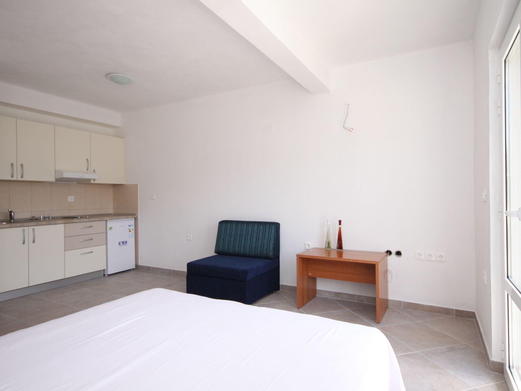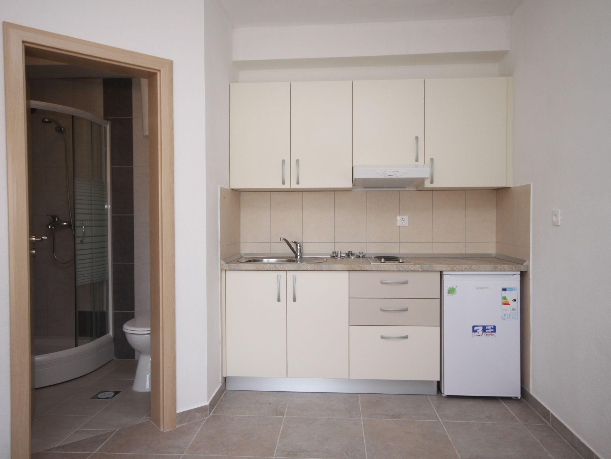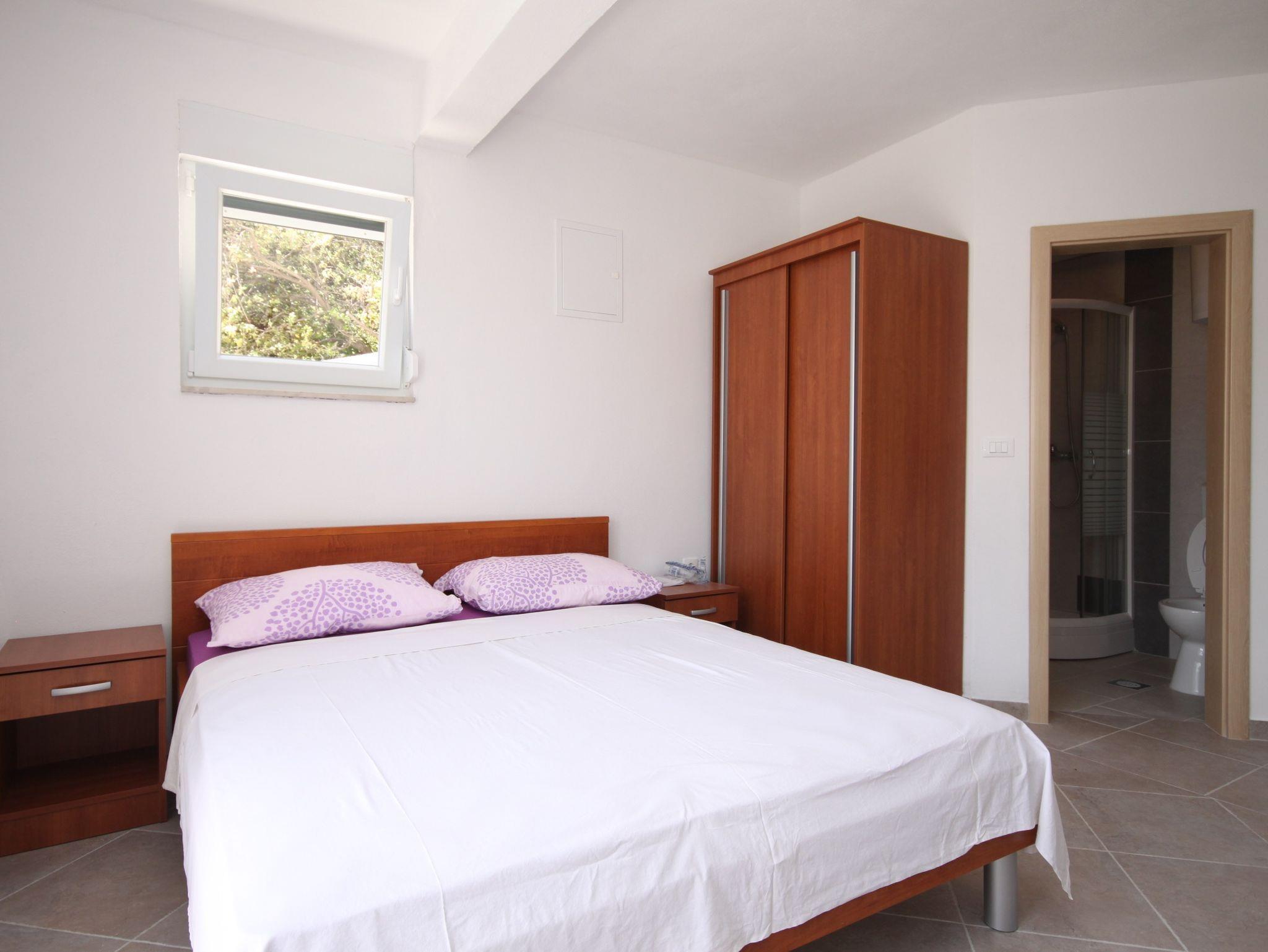 Studio bietet Platz für 2 Gäste. Die Betten sind in Schlafzimmern, die es 1 gibt, innerhalb einer Gesamtfläche von 20m2, angeordnet. Die Gäste haben eine eigene Terrasse zur Verfügung, auf der sie in warmen Sommernächten genießen können. Das Studio-Apartment bietet Meerblick. Es ist erlaubt, Speisen auf dem Gemeinschafts-Grill vorzubereiten. In der Unterkunftseinheit besteht die Möglichkeit des Mitbringens von Haustieren gegen Aufpreis. IM PREIS INBEGRIFFEN: Kurtaxe, Endreinigung, Parkplatz, Internet, Bügeleisen, Föhn. VERBINDLICHE ZUSÄTZLICHE KOSTEN: Aufzahlung für Kurzaufenthalte (prozentualer Zuschlag pro Nächtigungsanzahl: 30% - 1, 20% - 2, 10% - 3). UNVERBINDLICHE ZUSÄTZLICHE KOSTEN: Wäschewaschen (5,00 € Waschen), Bootsanlegeplatz (5,00 € pro Nacht), Haustiere (7,00 € pro Nacht). Die Verfügbarkeit zusätzlicher Dienstleistungen in Ihrem reservierten Termin und die Preise derselben (falls nicht aufgeführt) müssen im Voraus überprüft werden. Zusätzliche Dienstleistungen die in der Zahlungsaufforderung nicht aufgeführt sind werden direkt beim Vermieter bezahlt, angenommen der Gast nutzt auch diese.