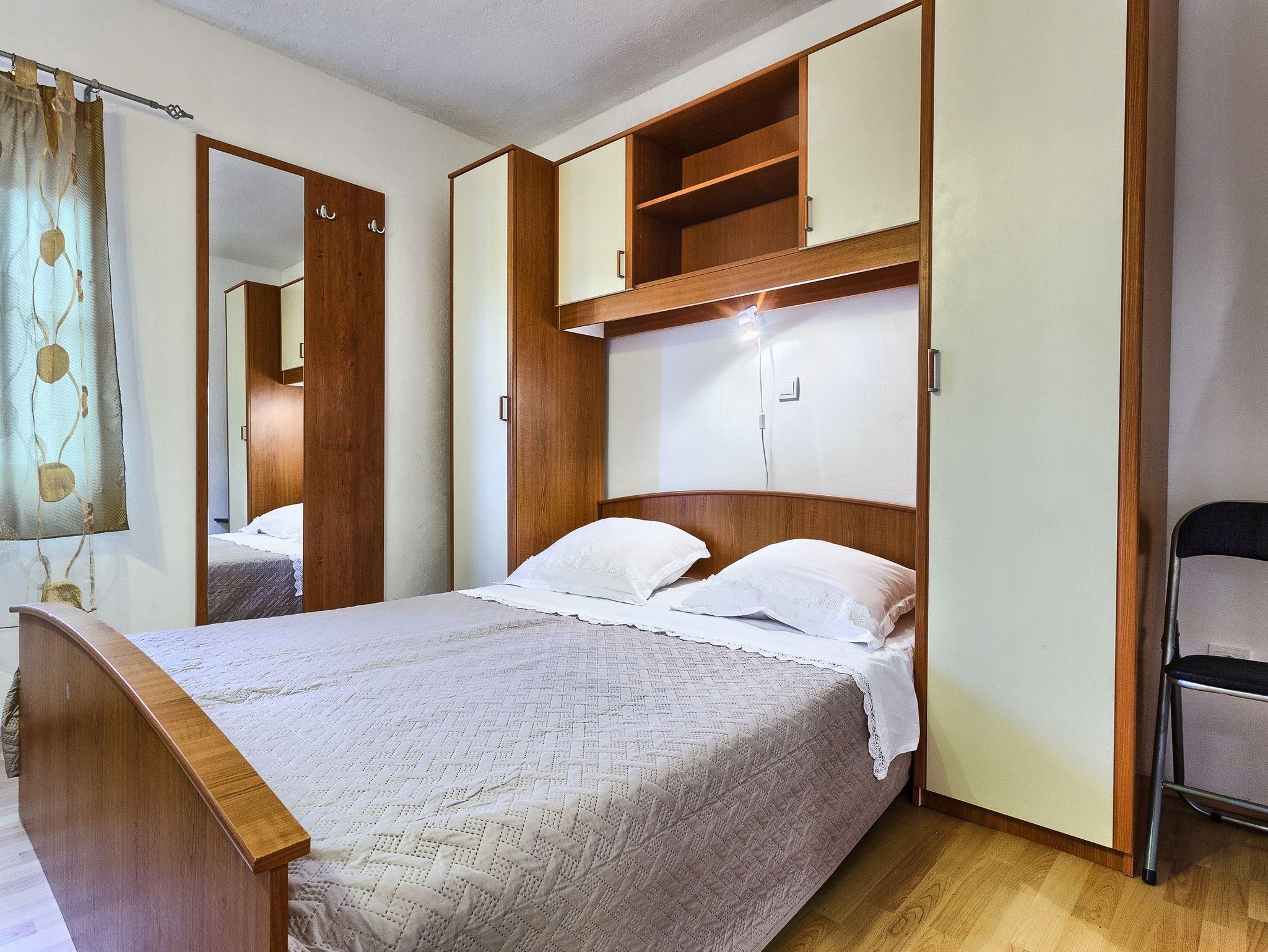 Ferienwohnung bietet Platz für 4 Gäste. Die Betten sind in Schlafzimmern, die es 2 gibt, innerhalb einer Gesamtfläche von 33m2, angeordnet. Die Gäste haben eine eigene Terrasse zur Verfügung, auf der sie in warmen Sommernächten genießen können. Das Apartment bietet Meerblick. Es ist erlaubt, Speisen auf dem Gemeinschafts-Grill vorzubereiten. In der Unterkunftseinheit besteht die Möglichkeit des Mitbringens von Haustieren gegen Aufpreis. IM PREIS INBEGRIFFEN: Kurtaxe, Endreinigung, Klimatisierung, Parkplatz, Internet, Wäschewaschen, Kinderbett, Bügeleisen, Bügelbrett, Föhn. VERBINDLICHE ZUSÄTZLICHE KOSTEN: Aufzahlung für Kurzaufenthalte (prozentualer Zuschlag pro Nächtigungsanzahl: 30% - 1, 20% - 2, 10% - 3). UNVERBINDLICHE ZUSÄTZLICHE KOSTEN: Bootsanlegeplatz (10,00 € pro Nacht), Haustiere (10,00 € pro Nacht). Die Verfügbarkeit zusätzlicher Dienstleistungen in Ihrem reservierten Termin und die Preise derselben (falls nicht aufgeführt) müssen im Voraus überprüft werden. Zusätzliche Dienstleistungen die in der Zahlungsaufforderung nicht aufgeführt sind werden direkt beim Vermieter bezahlt, angenommen der Gast nutzt auch diese.