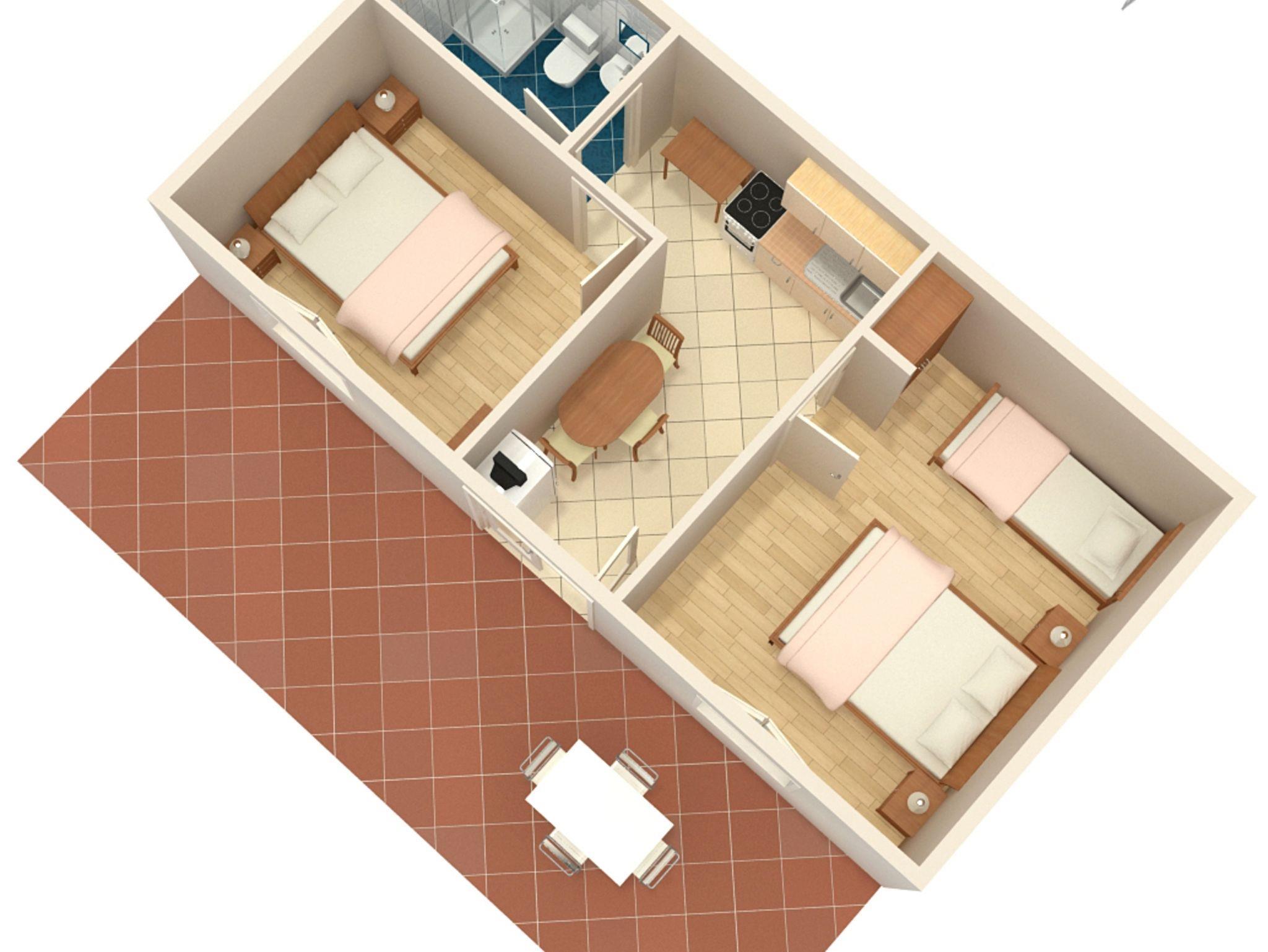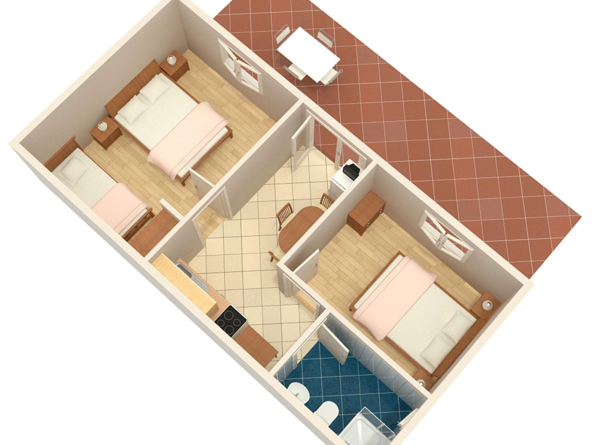 Ferienwohnung bietet Platz für 5 Gäste. Die Betten sind in Schlafzimmern, die es 2 gibt, innerhalb einer Gesamtfläche von 31m2, angeordnet. Die Gäste haben eine eigene Terrasse zur Verfügung, auf der sie in warmen Sommernächten genießen können. Es ist erlaubt, Speisen auf dem Gemeinschafts-Grill vorzubereiten. In der Unterkunftseinheit besteht die Möglichkeit des Mitbringens von Haustieren gegen Aufpreis. IM PREIS INBEGRIFFEN: Kurtaxe, Endreinigung, Klimatisierung, Parkplatz, Internet, Bootsanlegeplatz. VERBINDLICHE ZUSÄTZLICHE KOSTEN: Aufzahlung für Kurzaufenthalte (prozentualer Zuschlag pro Nächtigungsanzahl: 30% - 1, 20% - 2, 10% - 3). UNVERBINDLICHE ZUSÄTZLICHE KOSTEN: Haustiere (10,00 € pro Nacht). Die Verfügbarkeit zusätzlicher Dienstleistungen in Ihrem reservierten Termin und die Preise derselben (falls nicht aufgeführt) müssen im Voraus überprüft werden. Zusätzliche Dienstleistungen die in der Zahlungsaufforderung nicht aufgeführt sind werden direkt beim Vermieter bezahlt, angenommen der Gast nutzt auch diese. Ermäßigung auf den Grundpreis: Gratistag 14=13 (bei einem Aufenthalt von 14 Tagen oder mehr erhalten Sie einen Gratistag für den Aufenthalt bis 31.12.26).