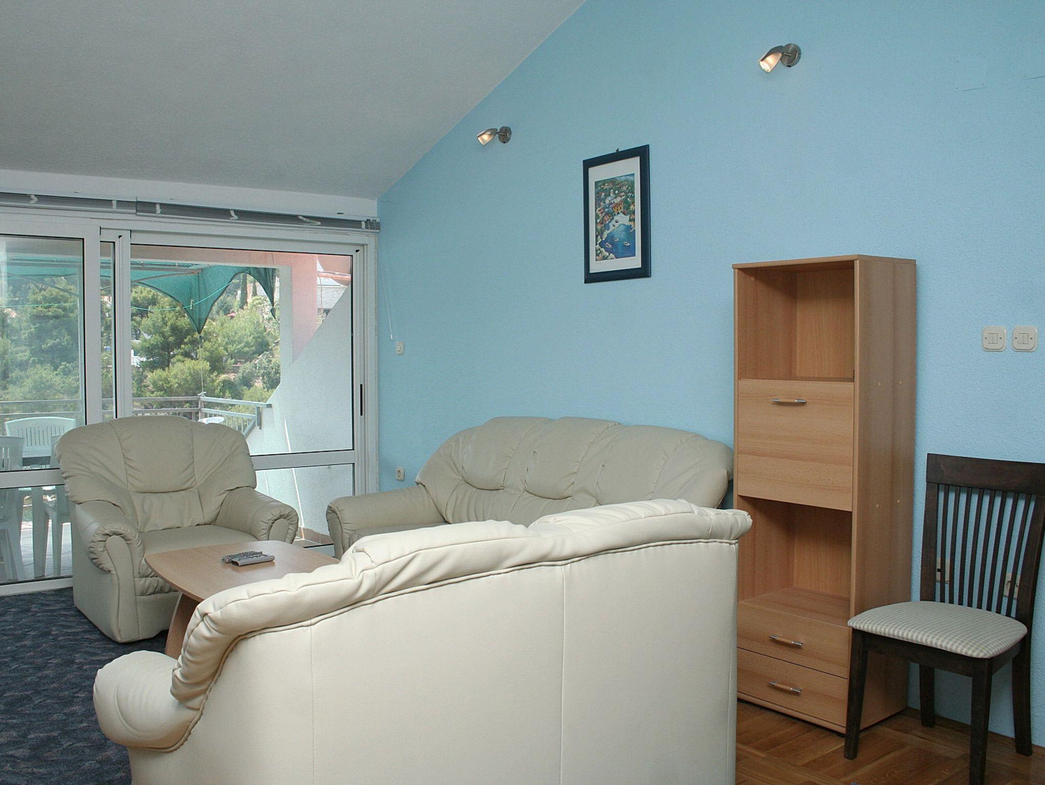 Ferienwohnung bietet Platz für 6 Gäste. Die Betten sind in Schlafzimmern, die es 3 gibt, innerhalb einer Gesamtfläche von 78m2, angeordnet. Die Gäste haben eine eigene Terrasse zur Verfügung, auf der sie in warmen Sommernächten genießen können. Das Apartment bietet Meerblick. Es ist erlaubt, Speisen auf dem Gemeinschafts-Grill vorzubereiten. In der Unterkunftseinheit besteht die Möglichkeit des Mitbringens von Haustieren gegen Aufpreis. IM PREIS INBEGRIFFEN: Kurtaxe, Endreinigung, Klimatisierung, Parkplatz, Bügeleisen, Föhn. VERBINDLICHE ZUSÄTZLICHE KOSTEN: Aufzahlung für Kurzaufenthalte (prozentualer Zuschlag pro Nächtigungsanzahl: 30% - 1, 20% - 2, 10% - 3). UNVERBINDLICHE ZUSÄTZLICHE KOSTEN: Wäschewaschen (5,00 € Waschen), Bootsanlegeplatz (7,00 € pro Nacht), Haustiere (7,00 € pro Nacht). Die Verfügbarkeit zusätzlicher Dienstleistungen in Ihrem reservierten Termin und die Preise derselben (falls nicht aufgeführt) müssen im Voraus überprüft werden. Zusätzliche Dienstleistungen die in der Zahlungsaufforderung nicht aufgeführt sind werden direkt beim Vermieter bezahlt, angenommen der Gast nutzt auch diese.