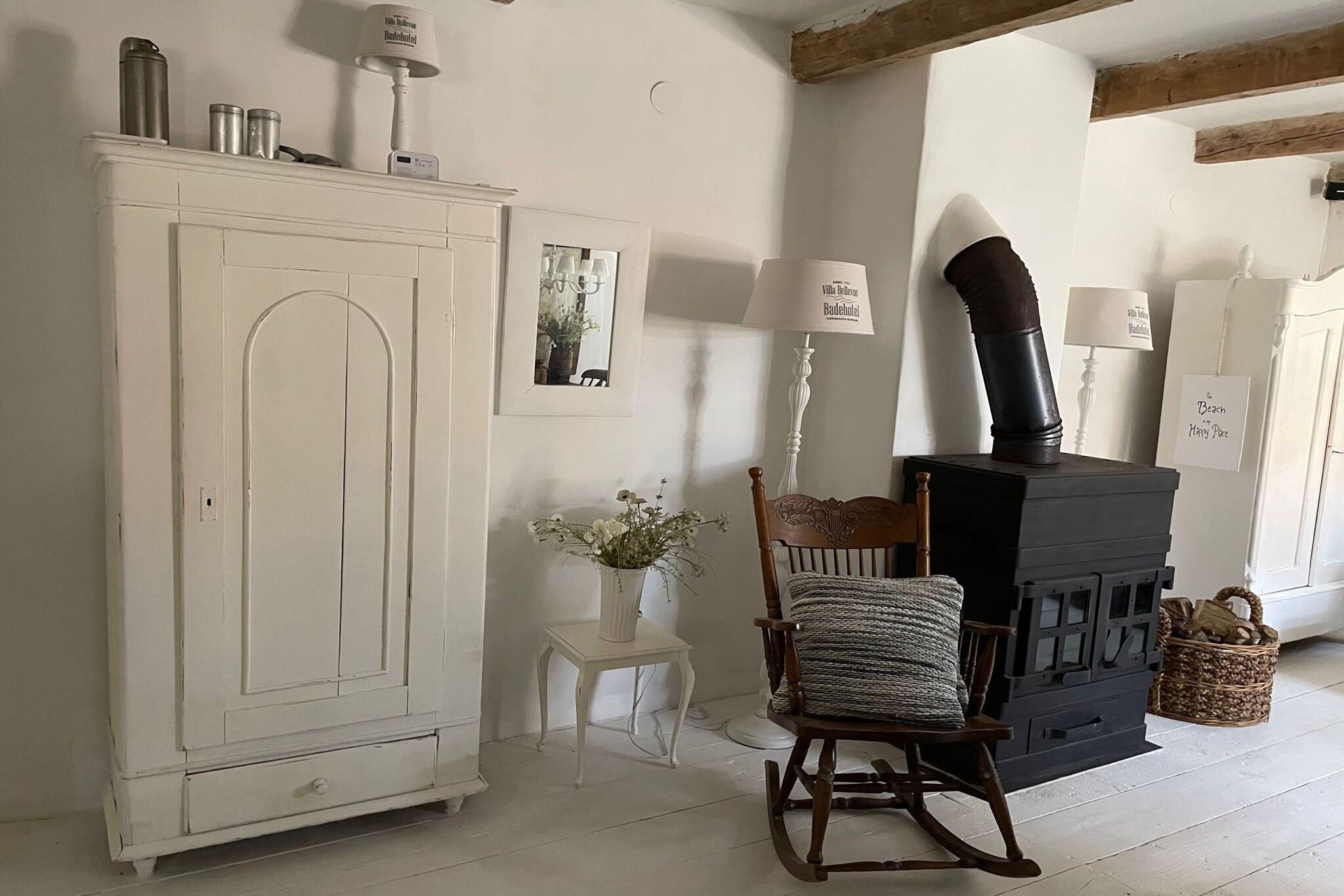 Stueetage: (Køkken(kaffemaskine, køleskab), soveværelse(dobbeltseng(180 x 210 cm)), badeværelse(bruser, toilet)) På 1. etage: (soveværelse(dobbeltseng(180 x 200 cm)), badeværelse(tørretumbler, bruser, toilet, vaskemaskine)) På 2. etage: (Stue(dobbeltsovesofa(160 x 200 cm), spisebord(6 personer), pejs), Køkken(kaffemaskine, ovn, grill, mikrobølgeovn, køle-fryseskab, Blender)) På 3. etage: (spisebord(6 personer), tagterrasse, solstole, solstole, Puslepude, Puslepude)