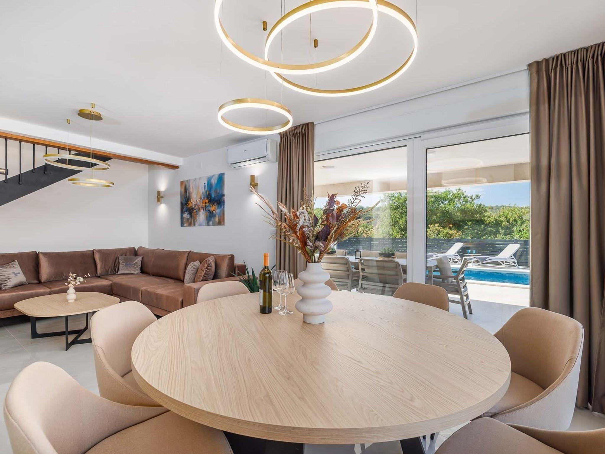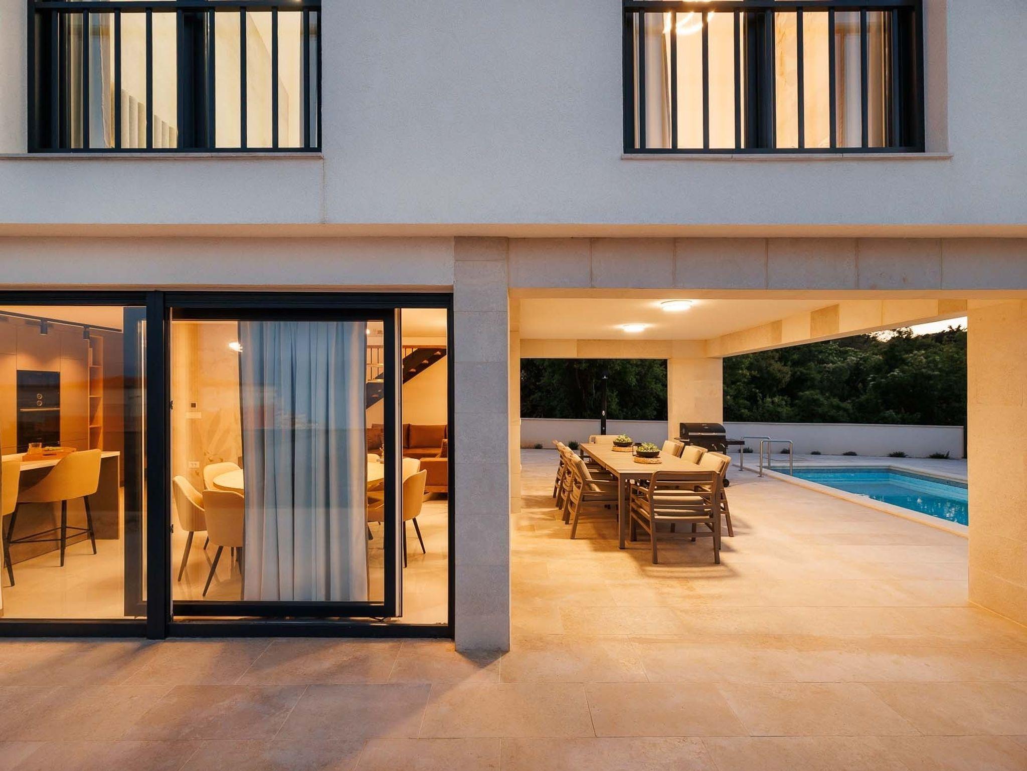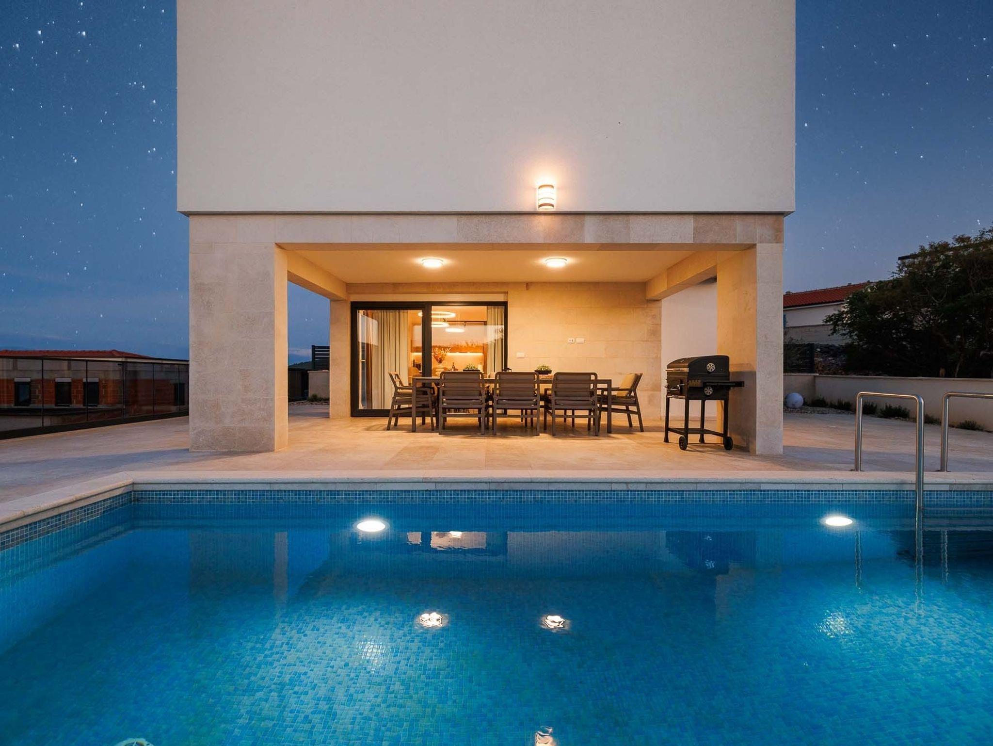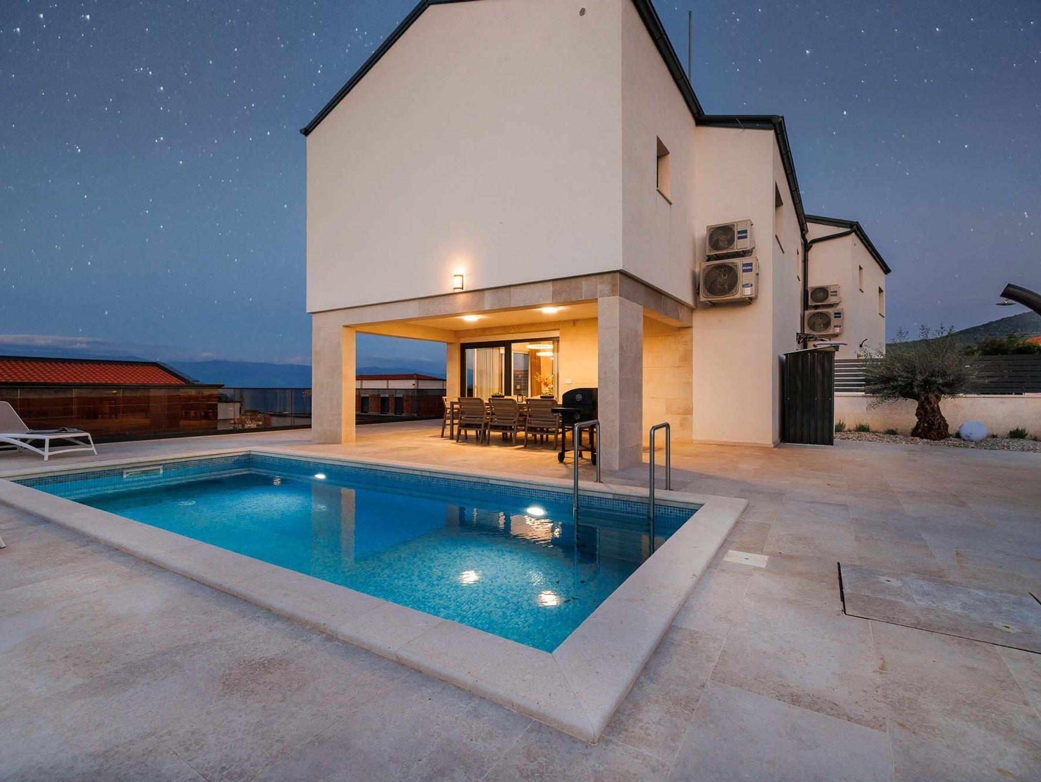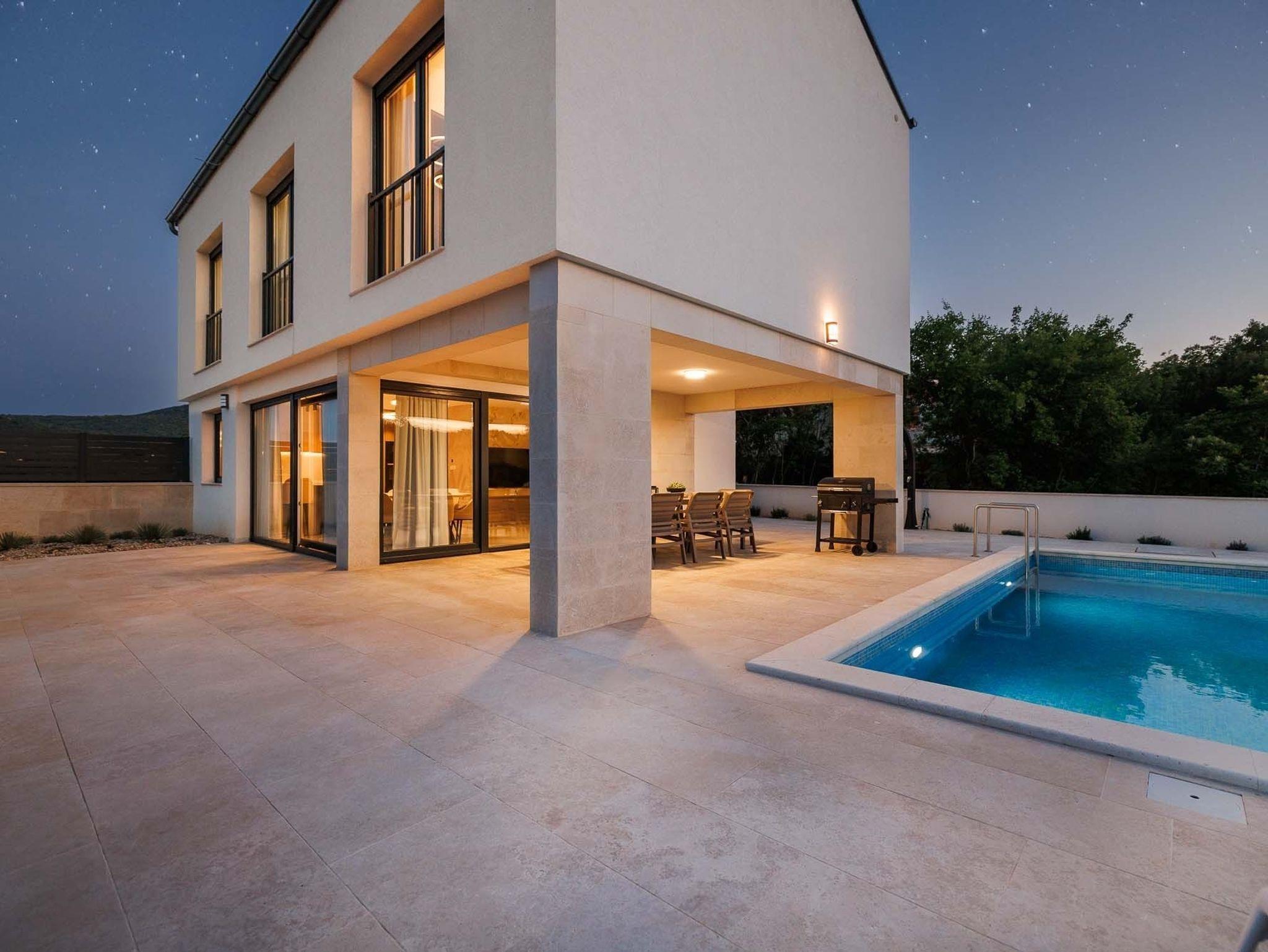 Haus bietet Platz für 8 Gäste. Die Betten sind in Schlafzimmern, die es 3 gibt, und in Wohnzimmer, innerhalb einer Gesamtfläche von 85m2, angeordnet. Das Haus bietet Meerblick. Für vollen Genuss und Entspannung gibt es einen privaten Grill für Gäste dieser Unterkunft. Während ihres Aufenthalts können sich Gäste im privaten Schwimmbad entspannen. In der Unterkunftseinheit besteht die Möglichkeit des Mitbringens von Haustieren gegen Aufpreis. Die reservierte Unterkunftseinheit hat keinen Balkon und keine Terrasse. Räume der gebuchten Unterkunftseinheit werden nicht in eine Ganze verbunden. In der gebuchten Unterkunftseinheit zahlt man am Ort ein Depositum ( der Preis ist an der Internetseite angeführt ). IM PREIS INBEGRIFFEN: Endreinigung, Klimatisierung, Pool, Parkplatz, Internet, Bügeleisen, Bügelbrett, Föhn. VERBINDLICHE ZUSÄTZLICHE KOSTEN: Kurtaxe (Erwachsene 0,93 € - 2,00 € Nacht/Person, Kinderermäßigung 12 - 17 Jahre), Kaution (500,00 € Einmalzahlung). UNVERBINDLICHE ZUSÄTZLICHE KOSTEN: Haustiere (20,00 € pro Nacht). Die Verfügbarkeit zusätzlicher Dienstleistungen in Ihrem reservierten Termin und die Preise derselben (falls nicht aufgeführt) müssen im Voraus überprüft werden. Zusätzliche Dienstleistungen die in der Zahlungsaufforderung nicht aufgeführt sind werden direkt beim Vermieter bezahlt, angenommen der Gast nutzt auch diese.