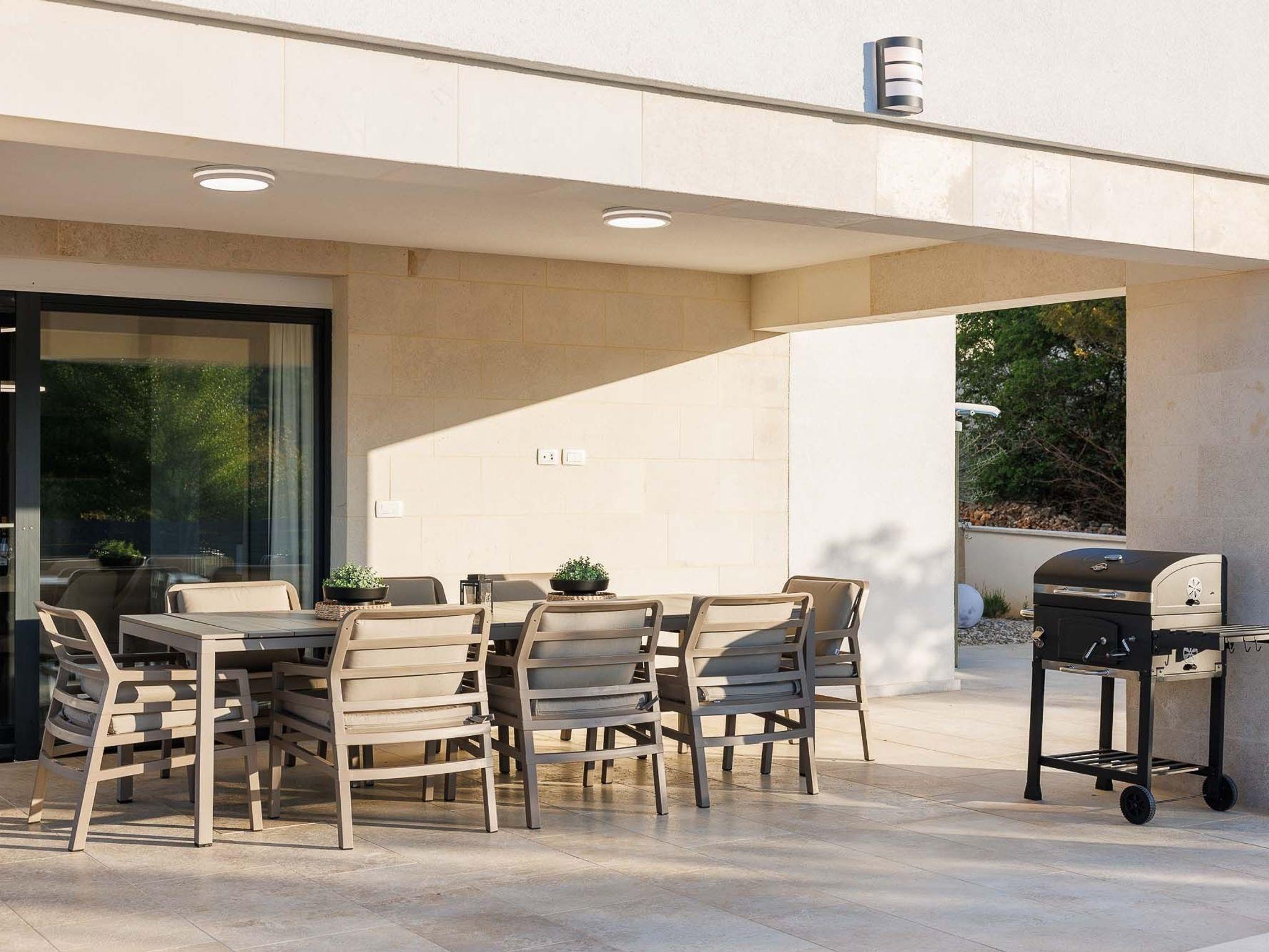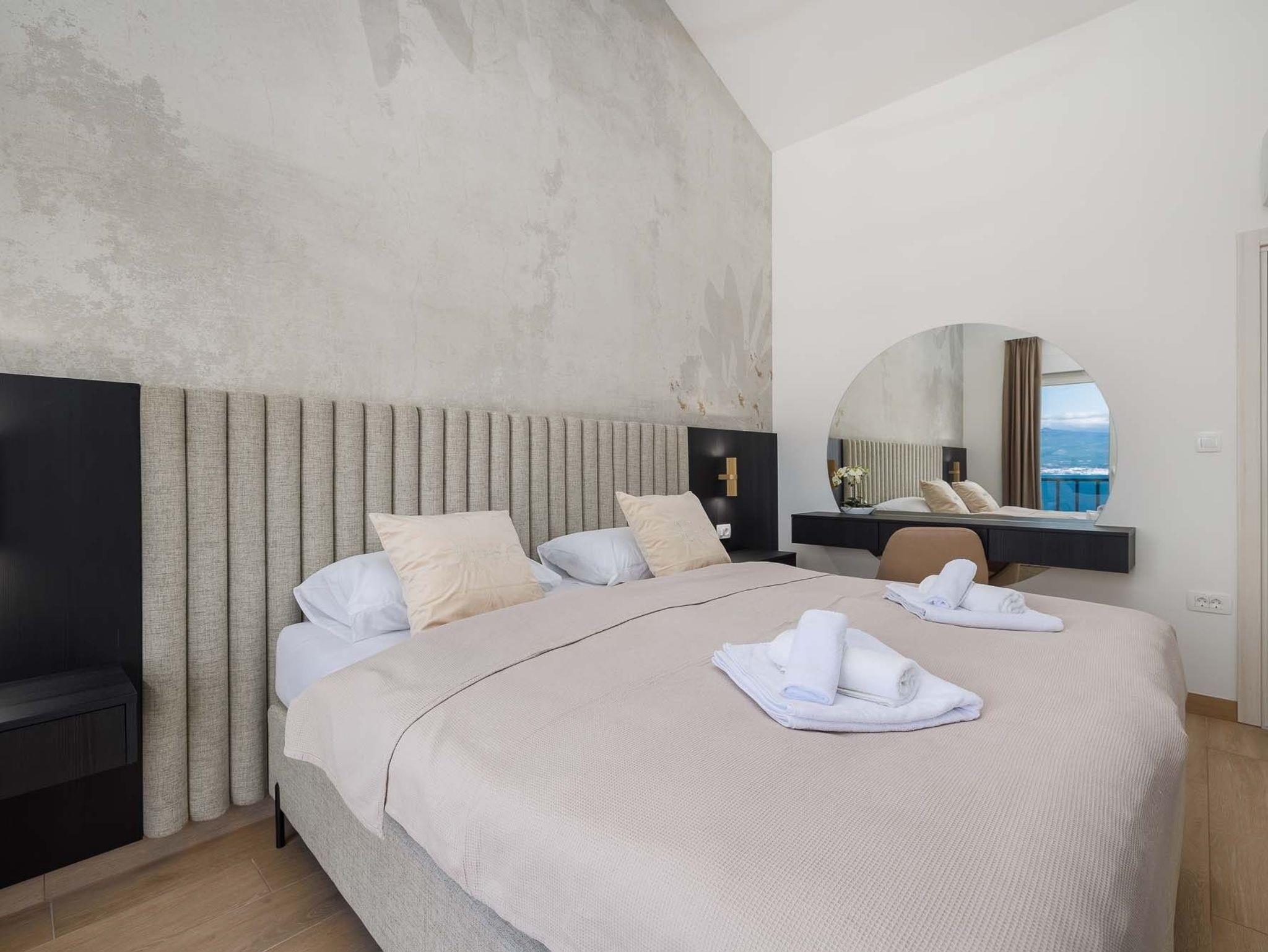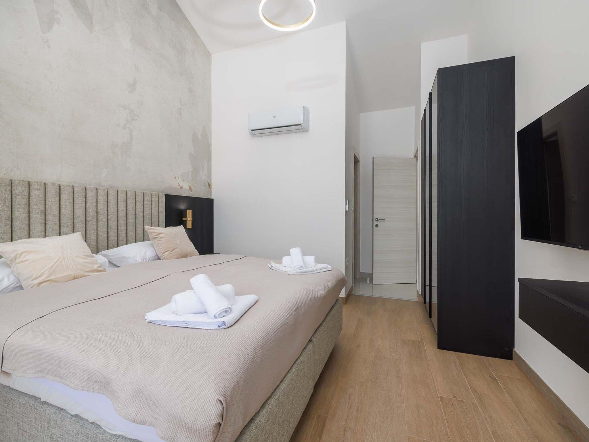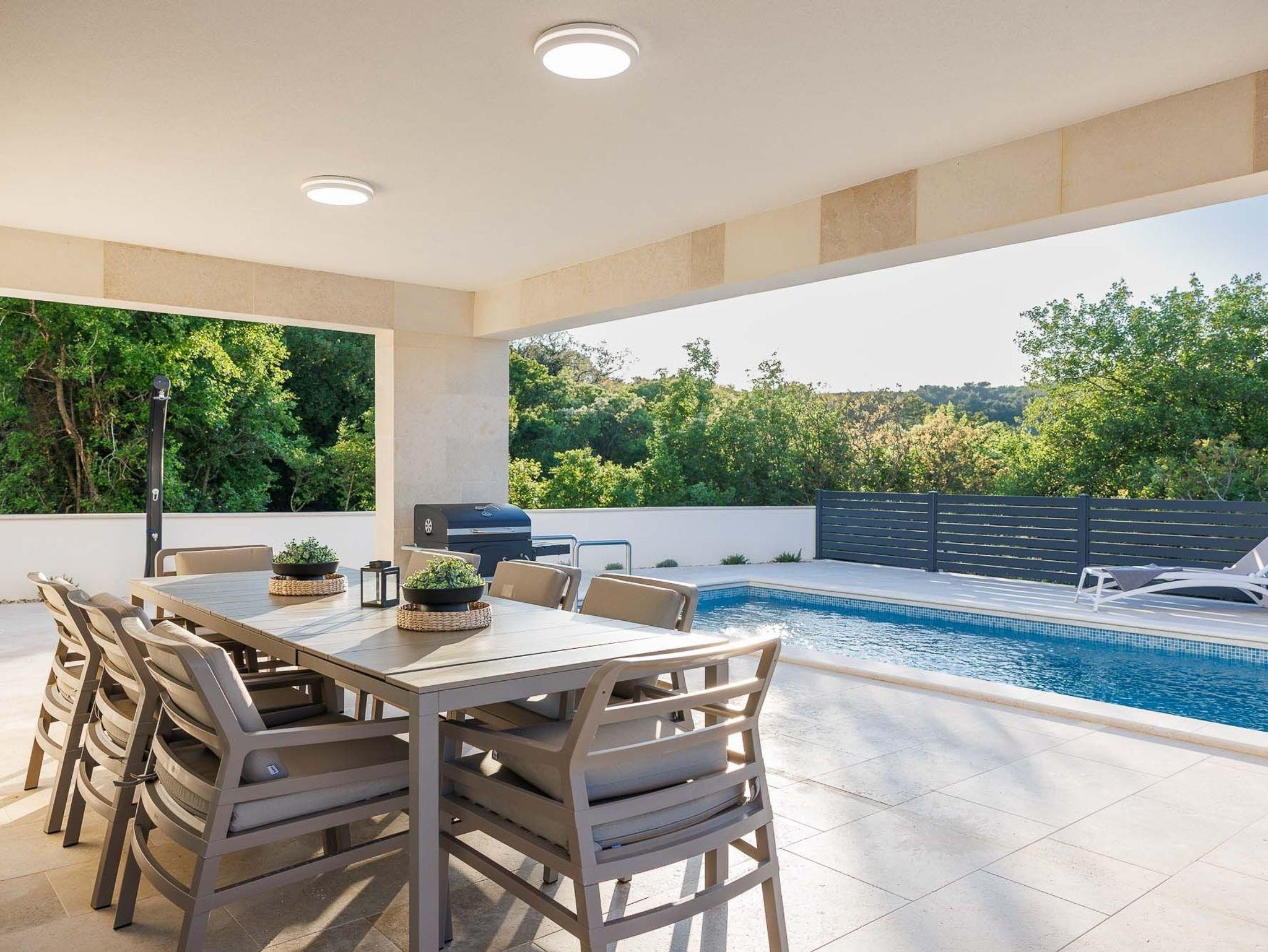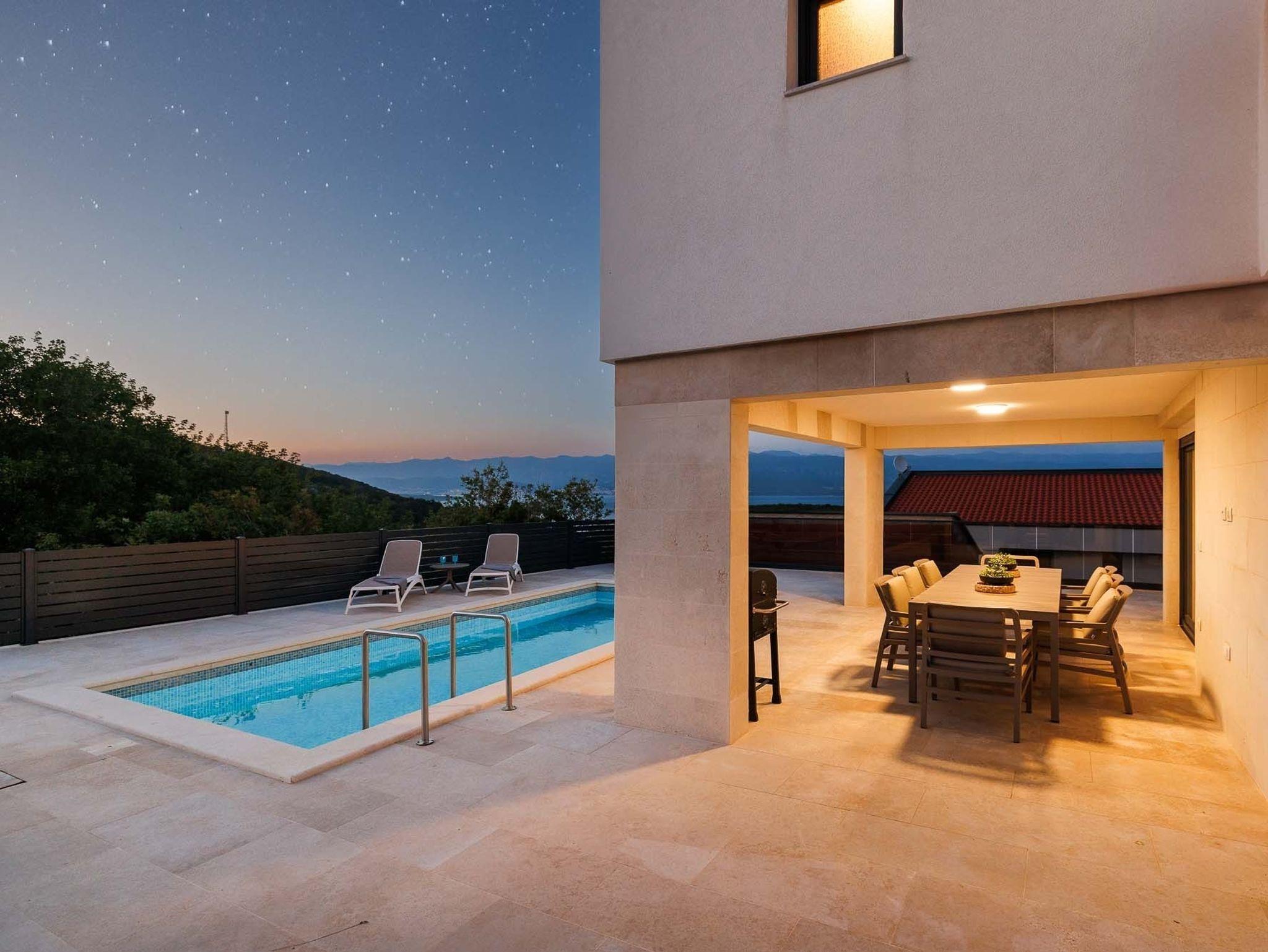 Haus bietet Platz für 8 Gäste. Die Betten sind in Schlafzimmern, die es 3 gibt, und in Wohnzimmer, innerhalb einer Gesamtfläche von 85m2, angeordnet. Das Haus bietet Meerblick. Für vollen Genuss und Entspannung gibt es einen privaten Grill für Gäste dieser Unterkunft. Während ihres Aufenthalts können sich Gäste im privaten Schwimmbad entspannen. In der Unterkunftseinheit besteht die Möglichkeit des Mitbringens von Haustieren gegen Aufpreis. Die reservierte Unterkunftseinheit hat keinen Balkon und keine Terrasse. Räume der gebuchten Unterkunftseinheit werden nicht in eine Ganze verbunden. In der gebuchten Unterkunftseinheit zahlt man am Ort ein Depositum ( der Preis ist an der Internetseite angeführt ). IM PREIS INBEGRIFFEN: Endreinigung, Klimatisierung, Pool, Parkplatz, Internet, Bügeleisen, Bügelbrett, Föhn. VERBINDLICHE ZUSÄTZLICHE KOSTEN: Kurtaxe (Erwachsene 0,93 € - 2,00 € Nacht/Person, Kinderermäßigung 12 - 17 Jahre), Kaution (500,00 € Einmalzahlung). UNVERBINDLICHE ZUSÄTZLICHE KOSTEN: Haustiere (20,00 € pro Nacht). Die Verfügbarkeit zusätzlicher Dienstleistungen in Ihrem reservierten Termin und die Preise derselben (falls nicht aufgeführt) müssen im Voraus überprüft werden. Zusätzliche Dienstleistungen die in der Zahlungsaufforderung nicht aufgeführt sind werden direkt beim Vermieter bezahlt, angenommen der Gast nutzt auch diese.