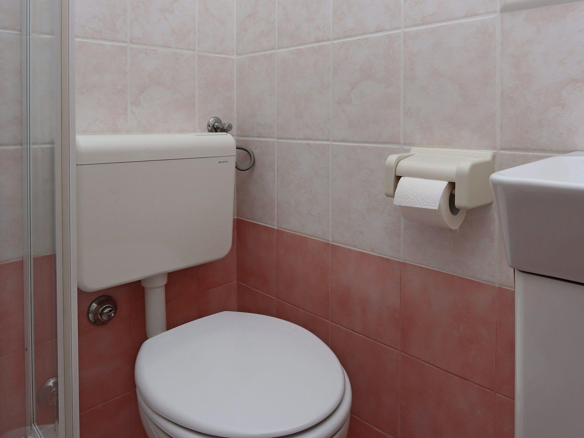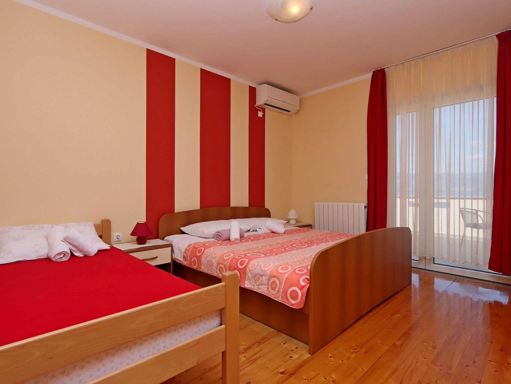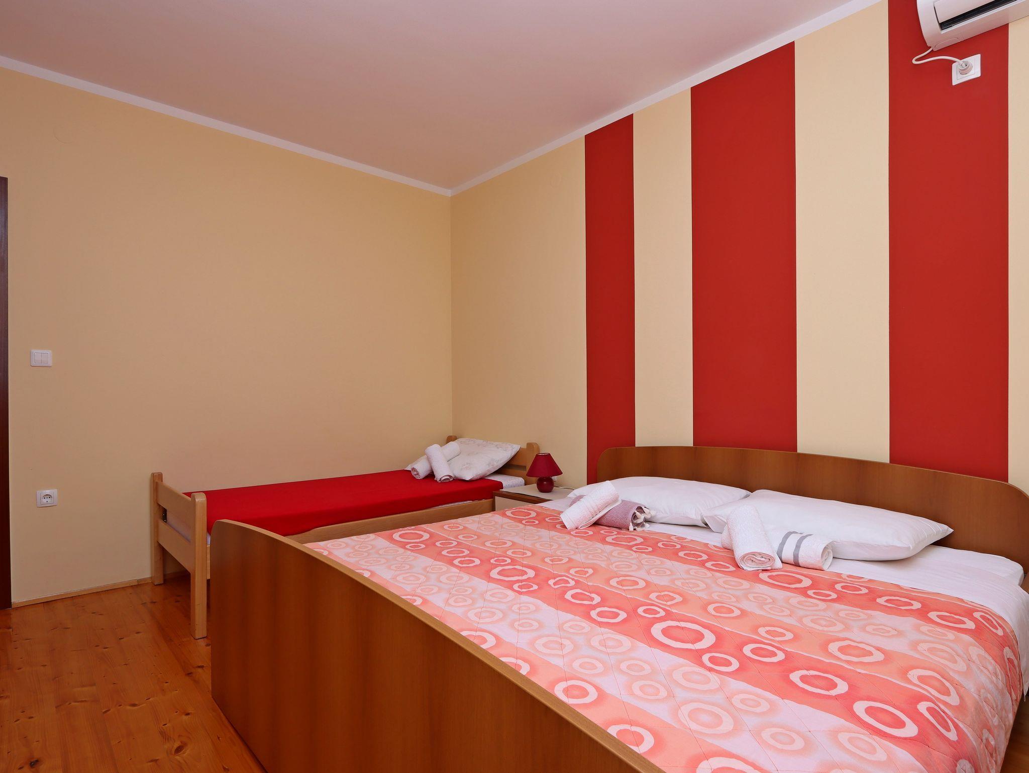 Zimmer bietet Platz für 2 Gäste. Die Betten sind in Schlafzimmern, die es 1 gibt, innerhalb einer Gesamtfläche von 18m2, angeordnet. Die Gäste haben eine eigene Terrasse zur Verfügung, auf der sie in warmen Sommernächten genießen können. Das Zimmer bietet Meerblick. Es ist erlaubt, Speisen auf dem Gemeinschafts-Grill vorzubereiten. Die reservierte Unterkunftseinheit ist ein Zimmer mit eigenem Badezimmer ohne die Möglichkeit der Nutzung einer Küche. IM PREIS INBEGRIFFEN: Kurtaxe, Endreinigung, Zentralheizung, Parkplatz, Internet, Bügeleisen, Bügelbrett, Föhn. VERBINDLICHE ZUSÄTZLICHE KOSTEN: Aufzahlung für Kurzaufenthalte (prozentualer Zuschlag pro Nächtigungsanzahl: 30% - 1, 20% - 2, 10% - 3). UNVERBINDLICHE ZUSÄTZLICHE KOSTEN: Klimatisierung (7,00 € pro Nacht), Wäschewaschen (10,00 € Waschen). Die Verfügbarkeit zusätzlicher Dienstleistungen in Ihrem reservierten Termin und die Preise derselben (falls nicht aufgeführt) müssen im Voraus überprüft werden. Zusätzliche Dienstleistungen die in der Zahlungsaufforderung nicht aufgeführt sind werden direkt beim Vermieter bezahlt, angenommen der Gast nutzt auch diese.
