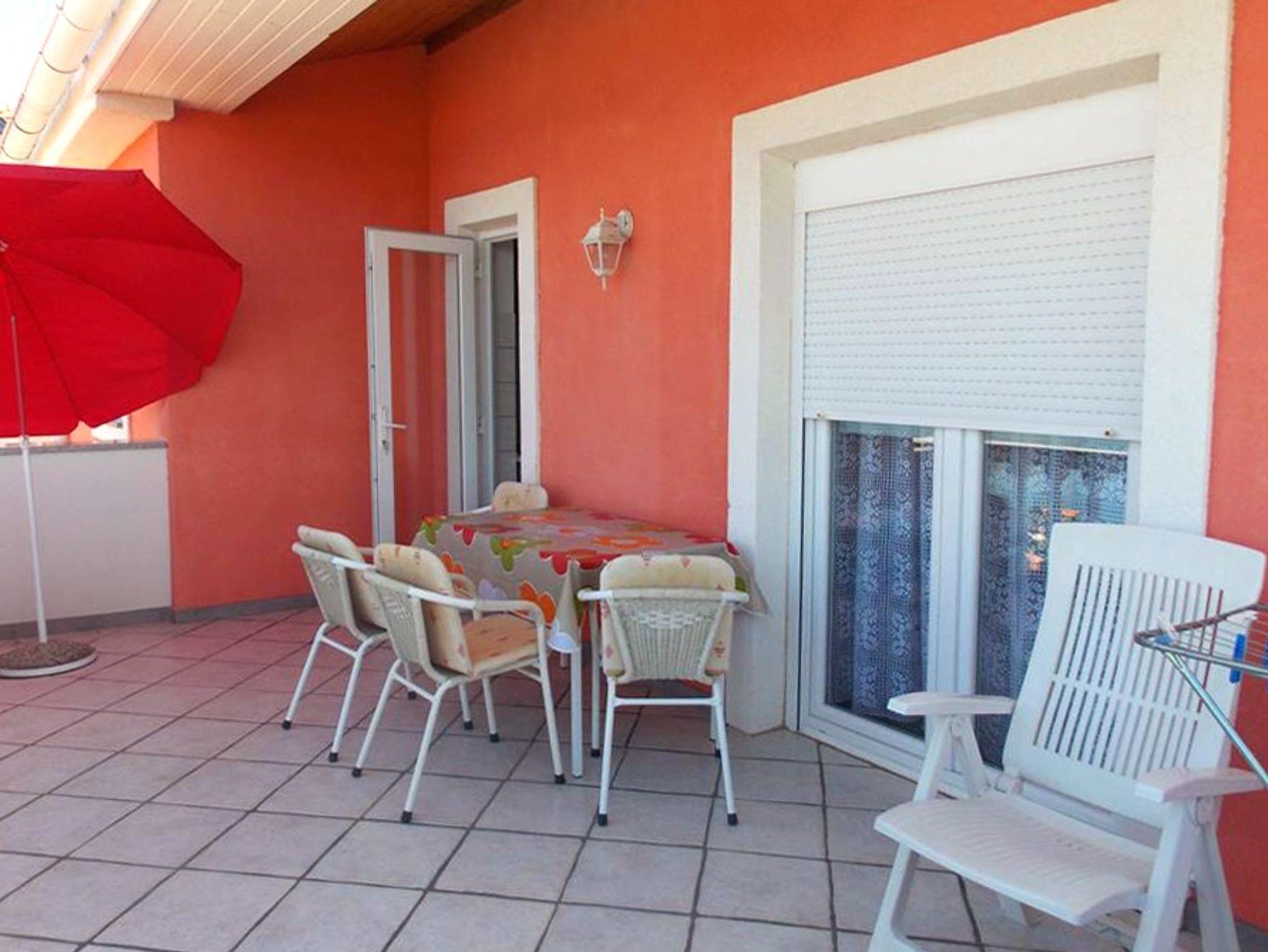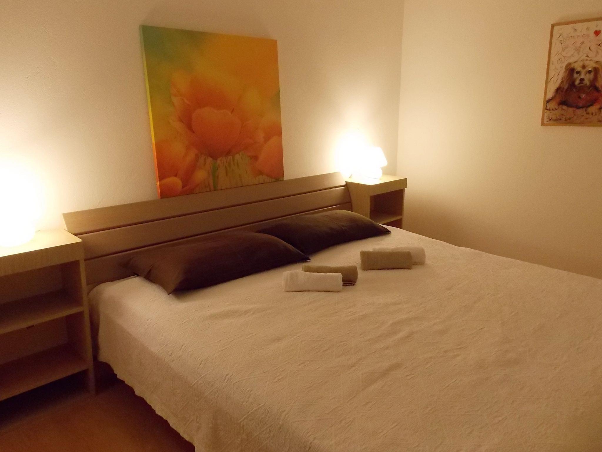 Ferienwohnung bietet Platz für 4 Gäste. Die Betten sind in Schlafzimmern, die es 2 gibt, innerhalb einer Gesamtfläche von 69m2, angeordnet. Die Gäste haben eine eigene Terrasse zur Verfügung, auf der sie in warmen Sommernächten genießen können. Das Apartment bietet Meerblick. Es ist erlaubt, Speisen auf dem Gemeinschafts-Grill vorzubereiten. IM PREIS INBEGRIFFEN: Kurtaxe, Endreinigung, Klimatisierung, Parkplatz, Internet, Wäschewaschen, Kinderbett, Bügeleisen, Bügelbrett, Föhn. VERBINDLICHE ZUSÄTZLICHE KOSTEN: Aufzahlung für Kurzaufenthalte (prozentualer Zuschlag pro Nächtigungsanzahl: 30% - 1, 20% - 2, 10% - 3). Die Verfügbarkeit zusätzlicher Dienstleistungen in Ihrem reservierten Termin und die Preise derselben (falls nicht aufgeführt) müssen im Voraus überprüft werden. Zusätzliche Dienstleistungen die in der Zahlungsaufforderung nicht aufgeführt sind werden direkt beim Vermieter bezahlt, angenommen der Gast nutzt auch diese. Ermäßigung auf den Grundpreis: Gratistag 14=13 (bei einem Aufenthalt von 14 Tagen oder mehr erhalten Sie einen Gratistag für den Aufenthalt bis 31.12.26).