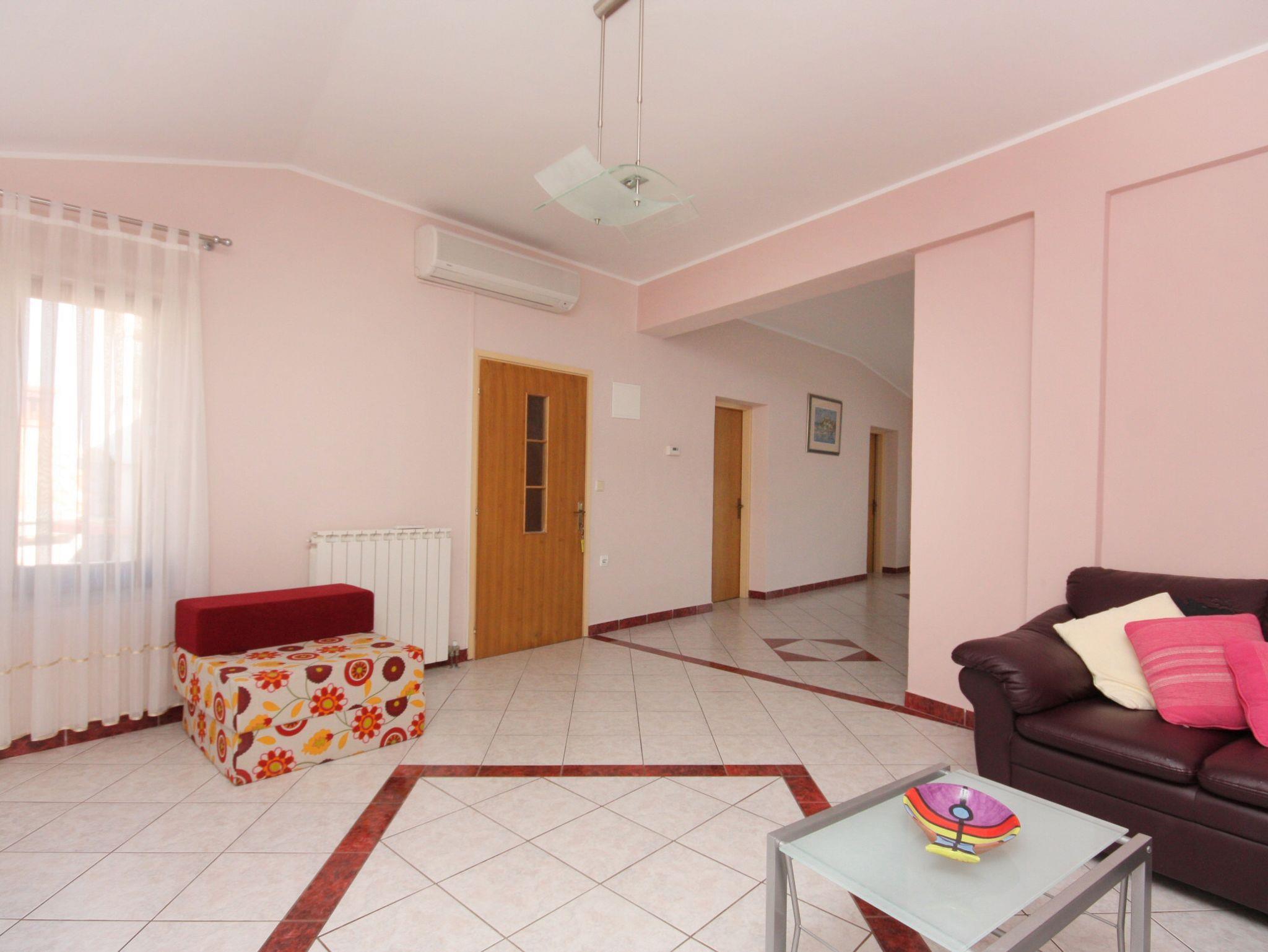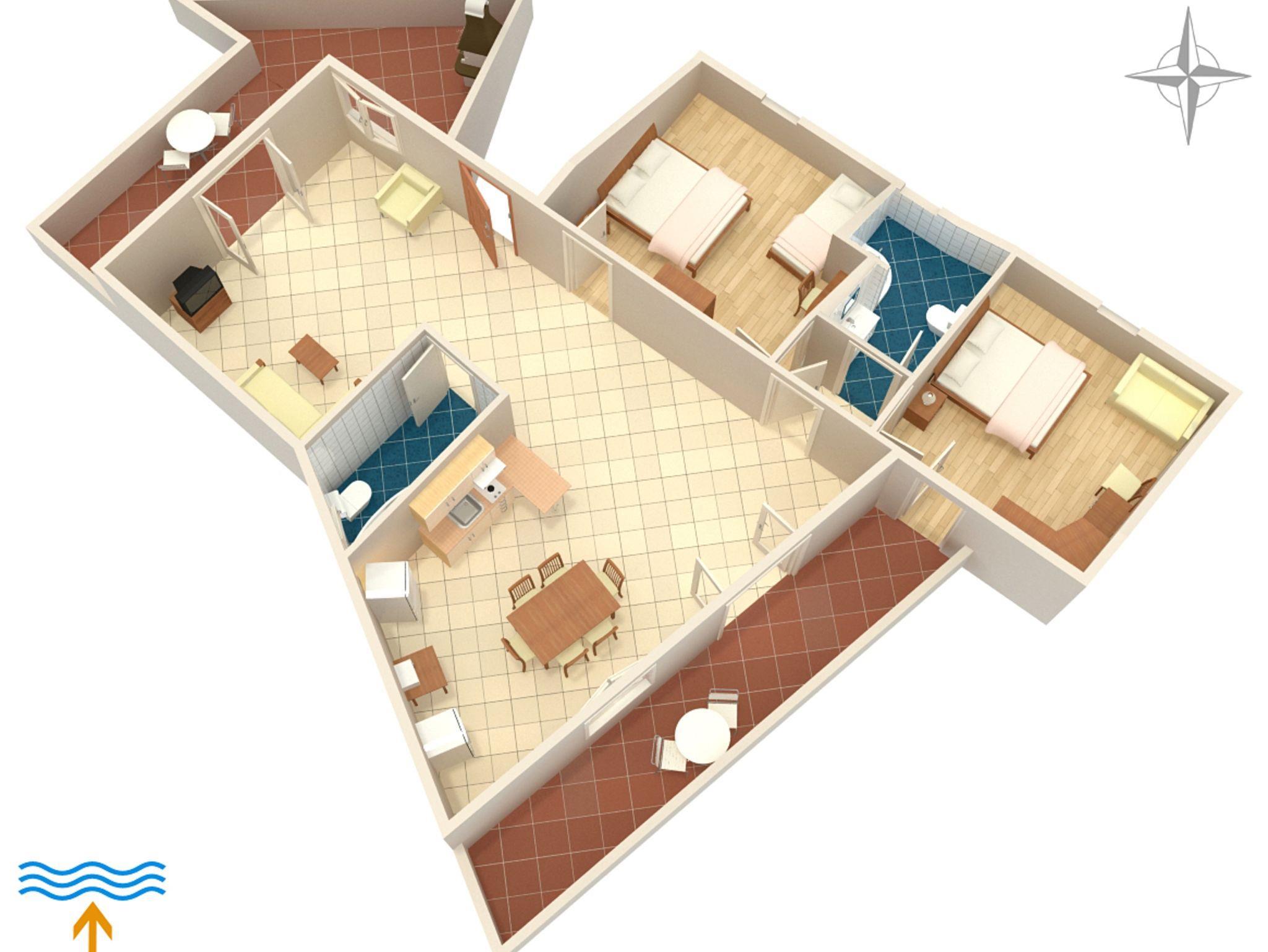 Ferienwohnung bietet Platz für 6 Gäste. Die Betten sind in Schlafzimmern, die es 2 gibt, innerhalb einer Gesamtfläche von 102m2, angeordnet. Die Gäste haben eine eigene Terrasse zur Verfügung, auf der sie in warmen Sommernächten genießen können. Das Apartment bietet Meerblick. Für vollen Genuss und Entspannung gibt es einen privaten Grill für Gäste dieser Unterkunft. IM PREIS INBEGRIFFEN: Kurtaxe, Endreinigung, Klimatisierung, Zentralheizung, Parkplatz, Internet, Bügeleisen, Föhn. VERBINDLICHE ZUSÄTZLICHE KOSTEN: Aufzahlung für Kurzaufenthalte (prozentualer Zuschlag pro Nächtigungsanzahl: 30% - 1, 20% - 2, 10% - 3). UNVERBINDLICHE ZUSÄTZLICHE KOSTEN: Zusatzbett (7,00 € pro Nacht). Die Verfügbarkeit zusätzlicher Dienstleistungen in Ihrem reservierten Termin und die Preise derselben (falls nicht aufgeführt) müssen im Voraus überprüft werden. Zusätzliche Dienstleistungen die in der Zahlungsaufforderung nicht aufgeführt sind werden direkt beim Vermieter bezahlt, angenommen der Gast nutzt auch diese. Ermäßigung auf den Grundpreis: Gratistag 21=19 (bei einem Aufenthalt von 21 Tagen oder mehr erhalten Sie 2 Gratistage für den Aufenthalt bis 31.12.25).