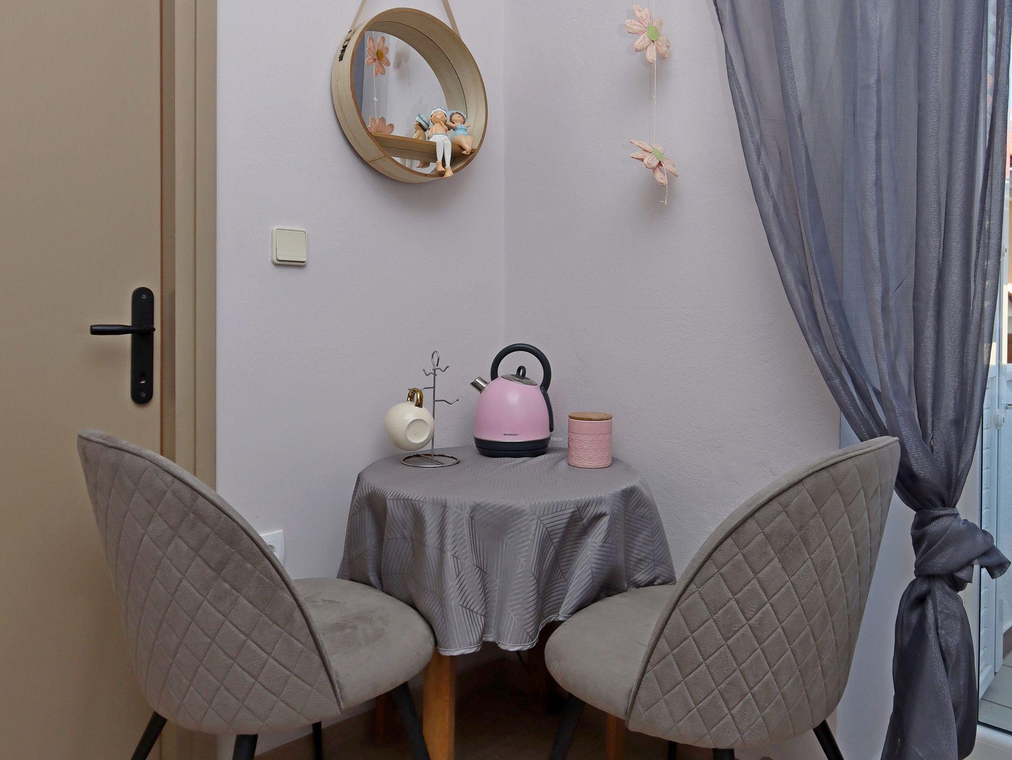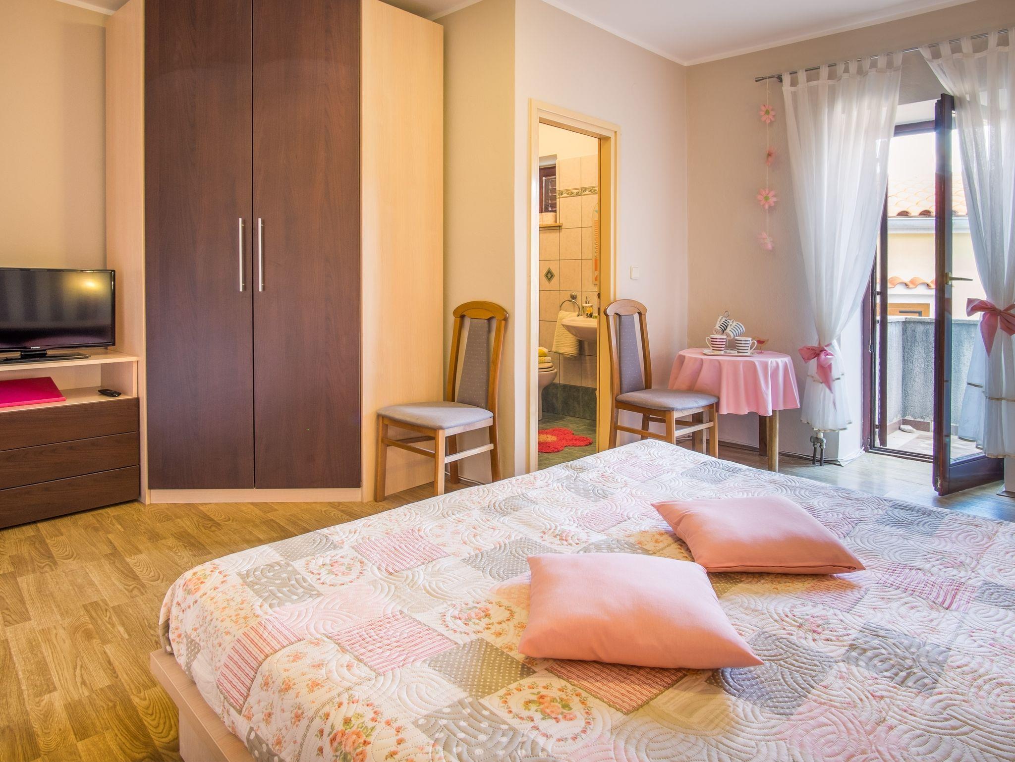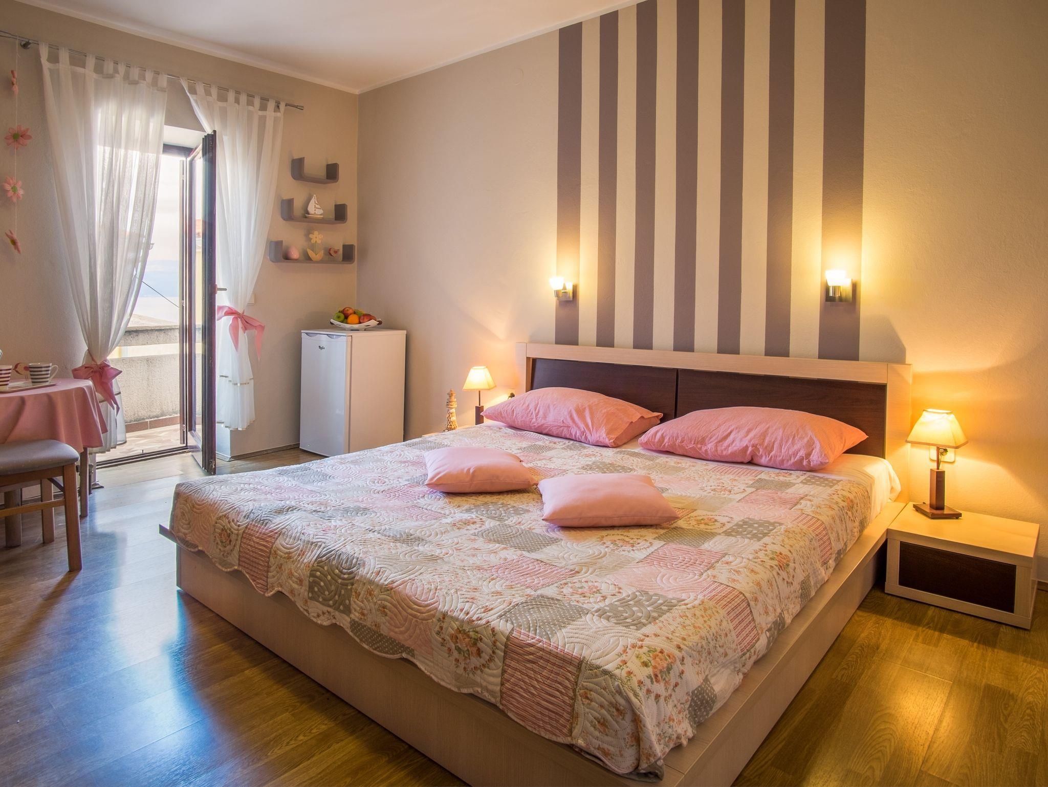 Zimmer bietet Platz für 2 Gäste. Die Betten sind in Schlafzimmern, die es 1 gibt, innerhalb einer Gesamtfläche von 18m2, angeordnet. Die Gäste haben einen eigenen Balkon zur Verfügung, auf der sie in warmen Sommernächten genießen können. Das Zimmer bietet Meerblick. Die reservierte Unterkunftseinheit ist ein Zimmer mit eigenem Badezimmer ohne die Möglichkeit der Nutzung einer Küche. IM PREIS INBEGRIFFEN: Kurtaxe, Endreinigung, Klimatisierung, Zentralheizung, Parkplatz, Internet, Bügeleisen, Föhn. VERBINDLICHE ZUSÄTZLICHE KOSTEN: Aufzahlung für Kurzaufenthalte (prozentualer Zuschlag pro Nächtigungsanzahl: 30% - 1, 20% - 2, 10% - 3). UNVERBINDLICHE ZUSÄTZLICHE KOSTEN: Zusatzbett (7,00 € pro Nacht). Die Verfügbarkeit zusätzlicher Dienstleistungen in Ihrem reservierten Termin und die Preise derselben (falls nicht aufgeführt) müssen im Voraus überprüft werden. Zusätzliche Dienstleistungen die in der Zahlungsaufforderung nicht aufgeführt sind werden direkt beim Vermieter bezahlt, angenommen der Gast nutzt auch diese. Ermäßigung auf den Grundpreis: Gratistag 21=19 (bei einem Aufenthalt von 21 Tagen oder mehr erhalten Sie 2 Gratistage für den Aufenthalt bis 31.12.25).