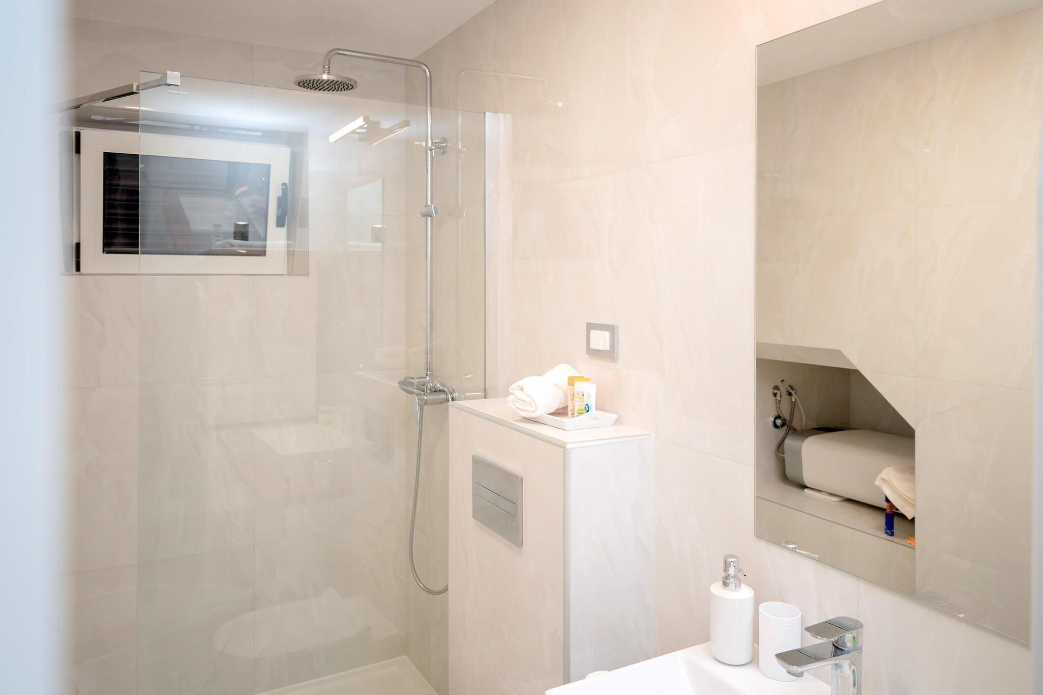 På 1. etage: (Soveværelse med badeværelse(dobbeltseng, Fjernsyn(fladskærm), bruser, håndvask, toilet, klimaanlæg), Soveværelse med badeværelse(dobbeltseng, Fjernsyn(fladskærm), bruser, håndvask, toilet, klimaanlæg), vaskerum (tørretumbler, vaskemaskine), terrasse(privat)) Loft: (Køkken(spisebord(6 personer), elkedel, brødrister, komfur, kaffemaskine, ovn, mikrobølgeovn, opvaskemaskine , køle-fryseskab, , Wine glasses), Stue/soveværelse(dobbeltsovesofa, Fjernsyn(fladskærm)), terrasse(privat, overdækket, indhegnet)) klimaanlæg, terrasse, havemøbler, solstole, parkering, strygebræt, strygejern, føntørrer, loungemøbler, ,