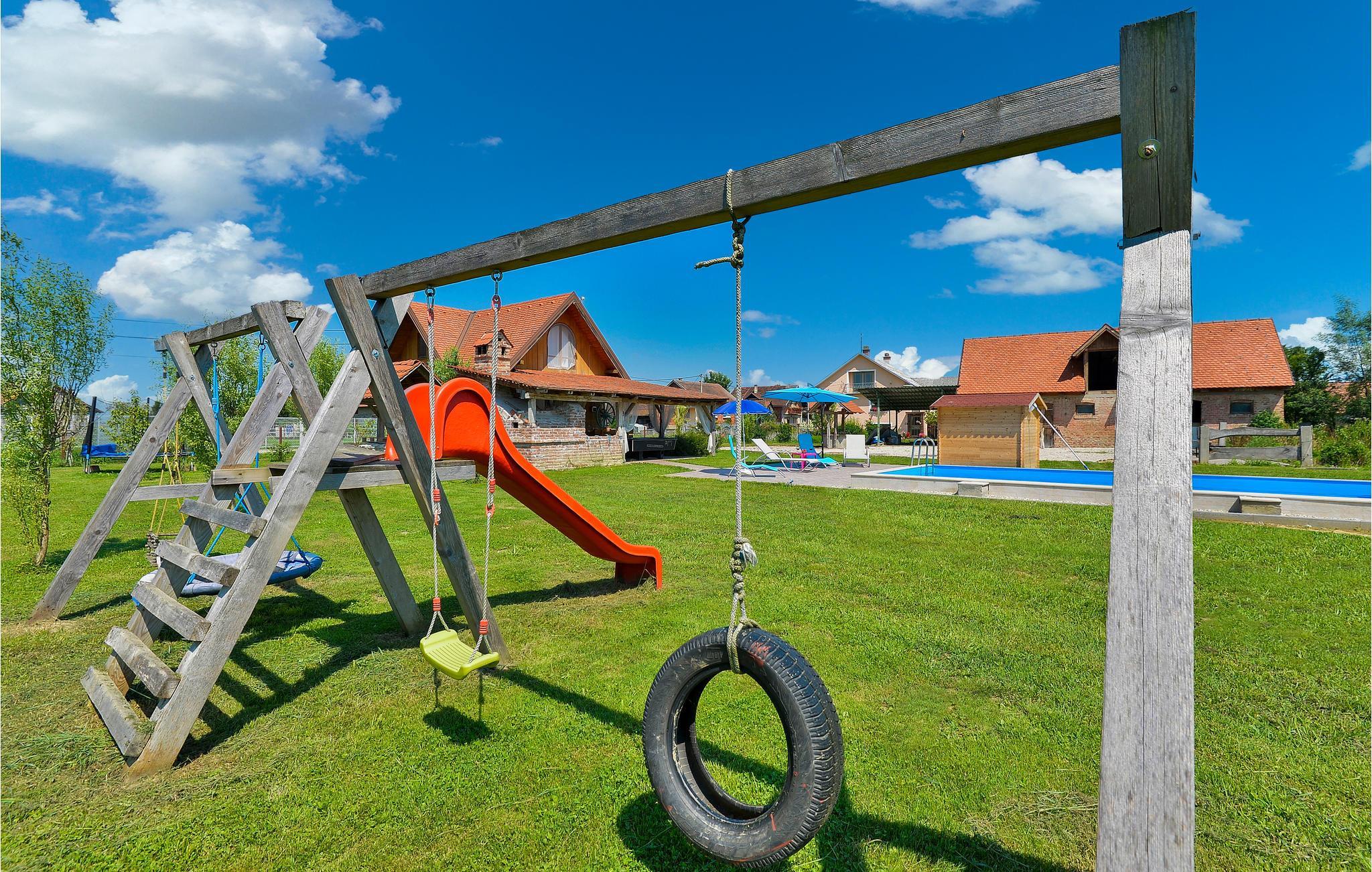 Fra den hyggelige stue, kan I træde ud på terrassen hvorfra der er udsigt ud over det frodigt grønne idylliske landskab, hvor I kan slappe af efter en forfriskende svømmetur i husets pool. Det omgivende landskab Hrvatsko zagorje er både smukt og idyllisk. Her kan I holde en ferie i samklang med naturen, hvor I kan slappe af eller være aktive, nøjagtig lige som I har lyst.