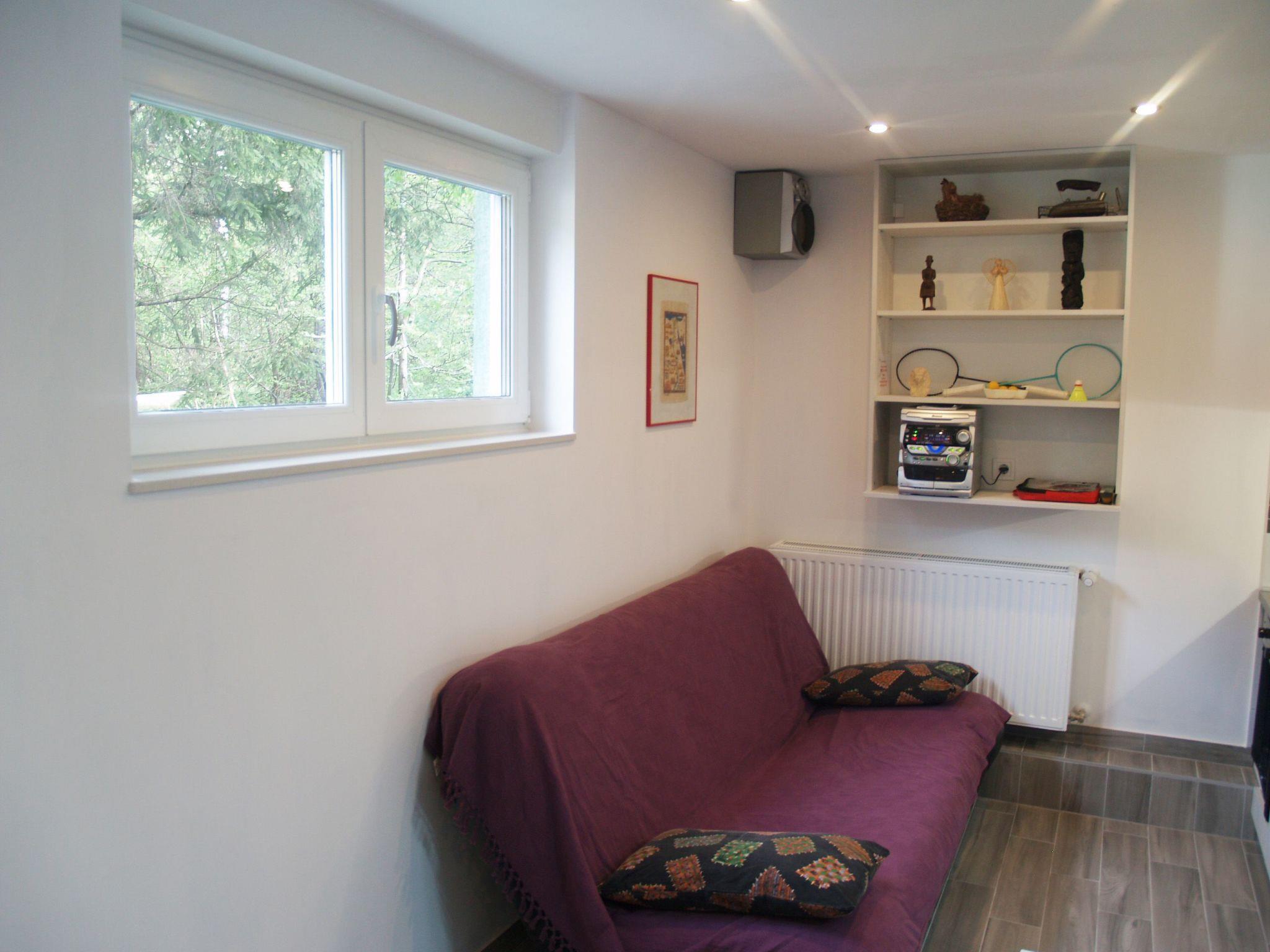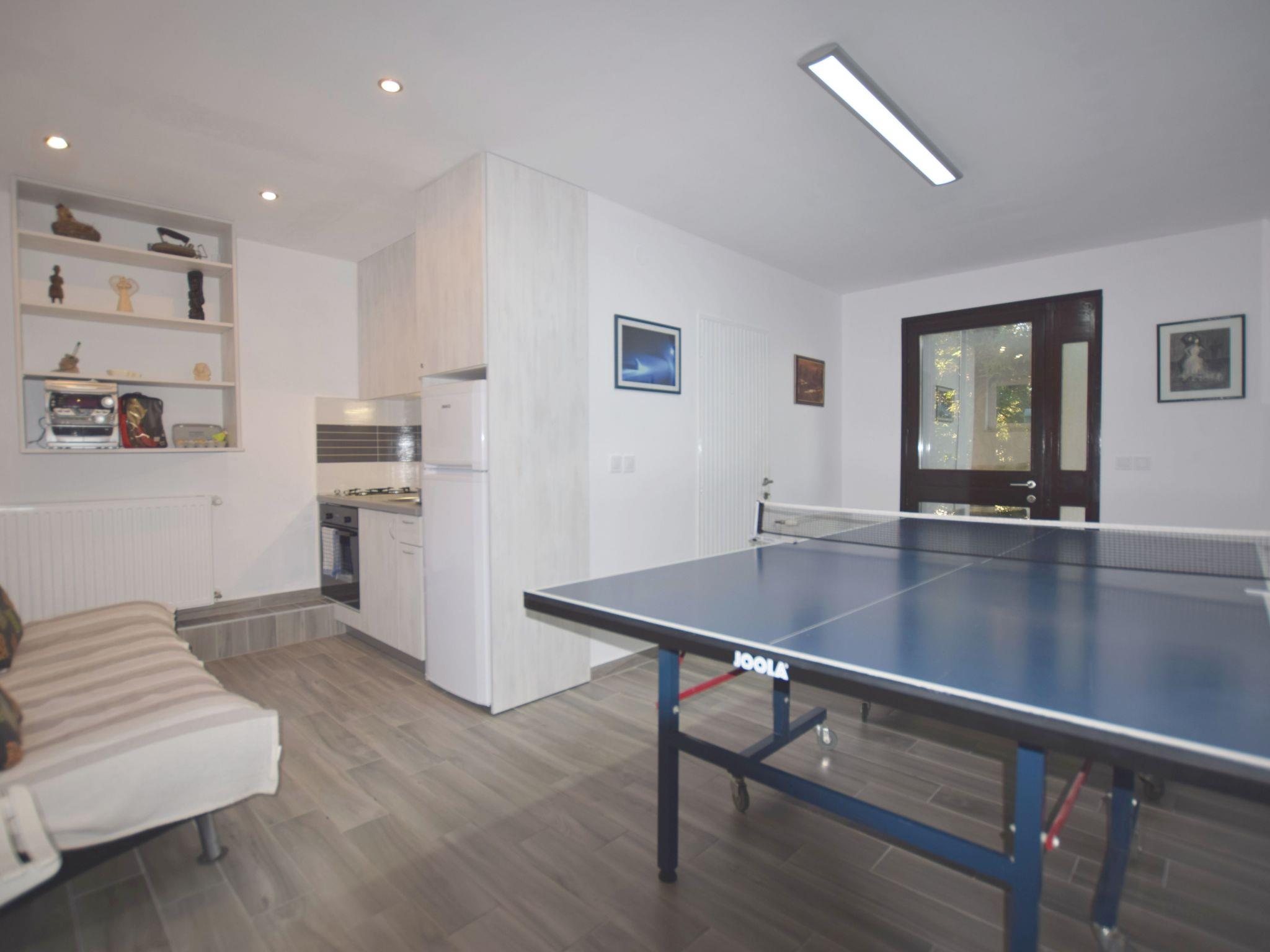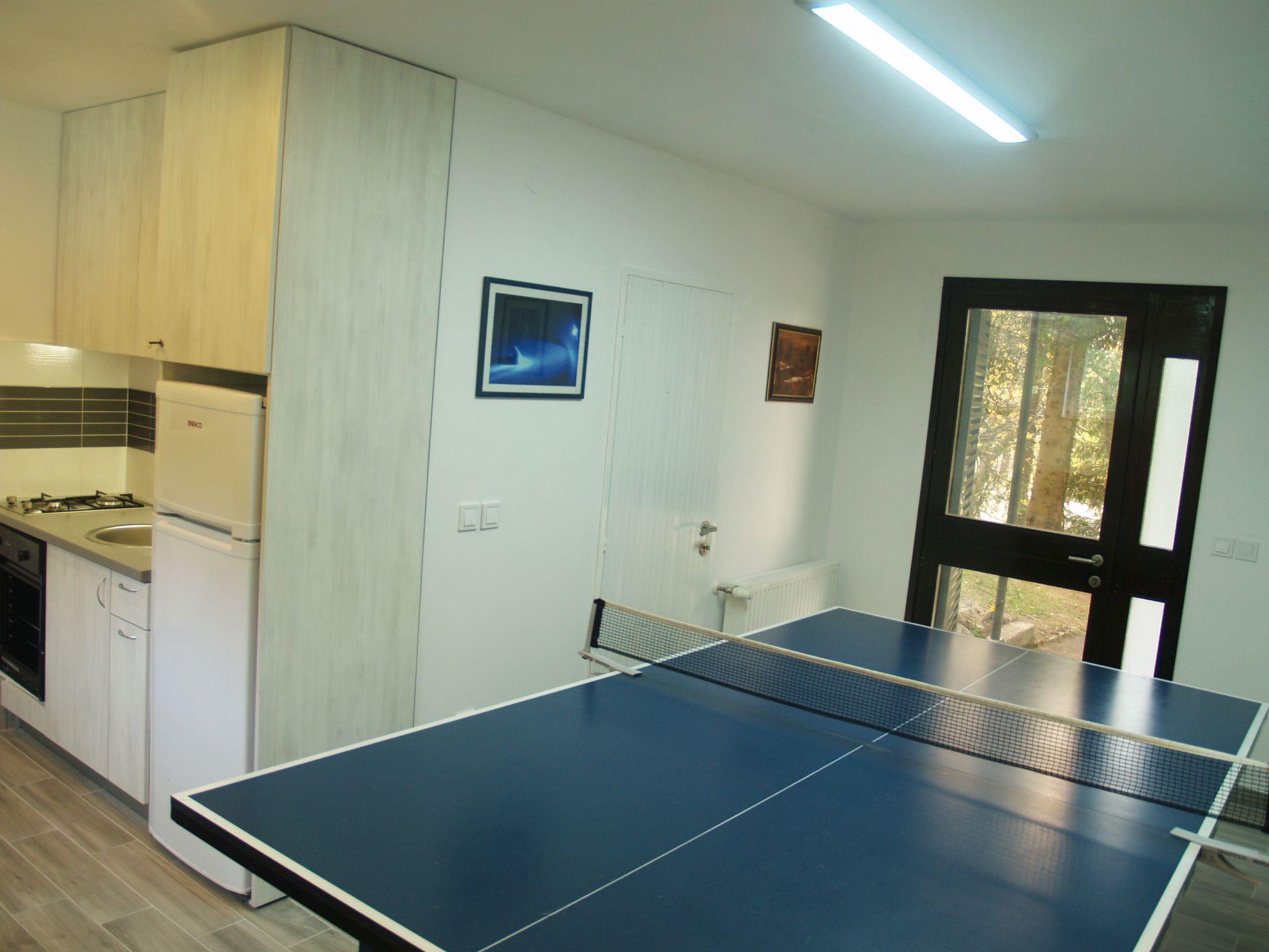 - Space for party guests on the ground floor with a separate entrance has an additional kitchen, extra bed, music, and equipment for a variety of activities: table tennis, darts, badminton, sledges, chairs and a table on the outdoor terrace, deck chairs