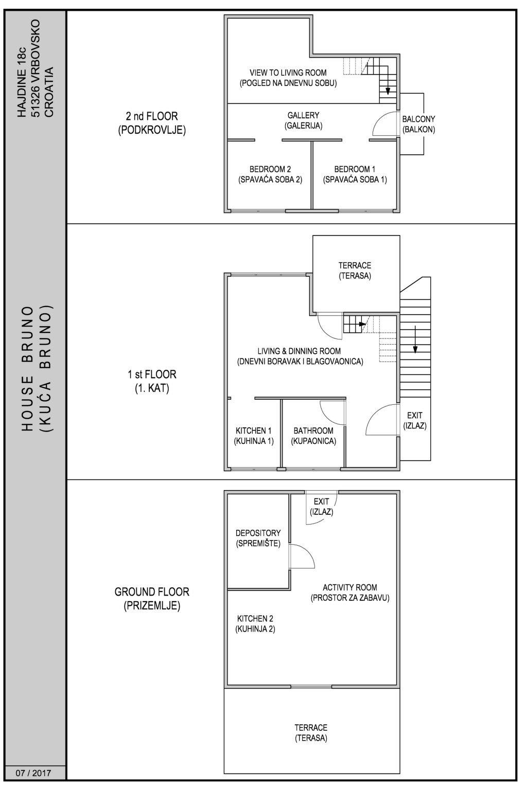 - The residential part consists of a hall, living room, 2 bedrooms in the attic, bathroom with toilet, kitchen, balcony and a little terrace