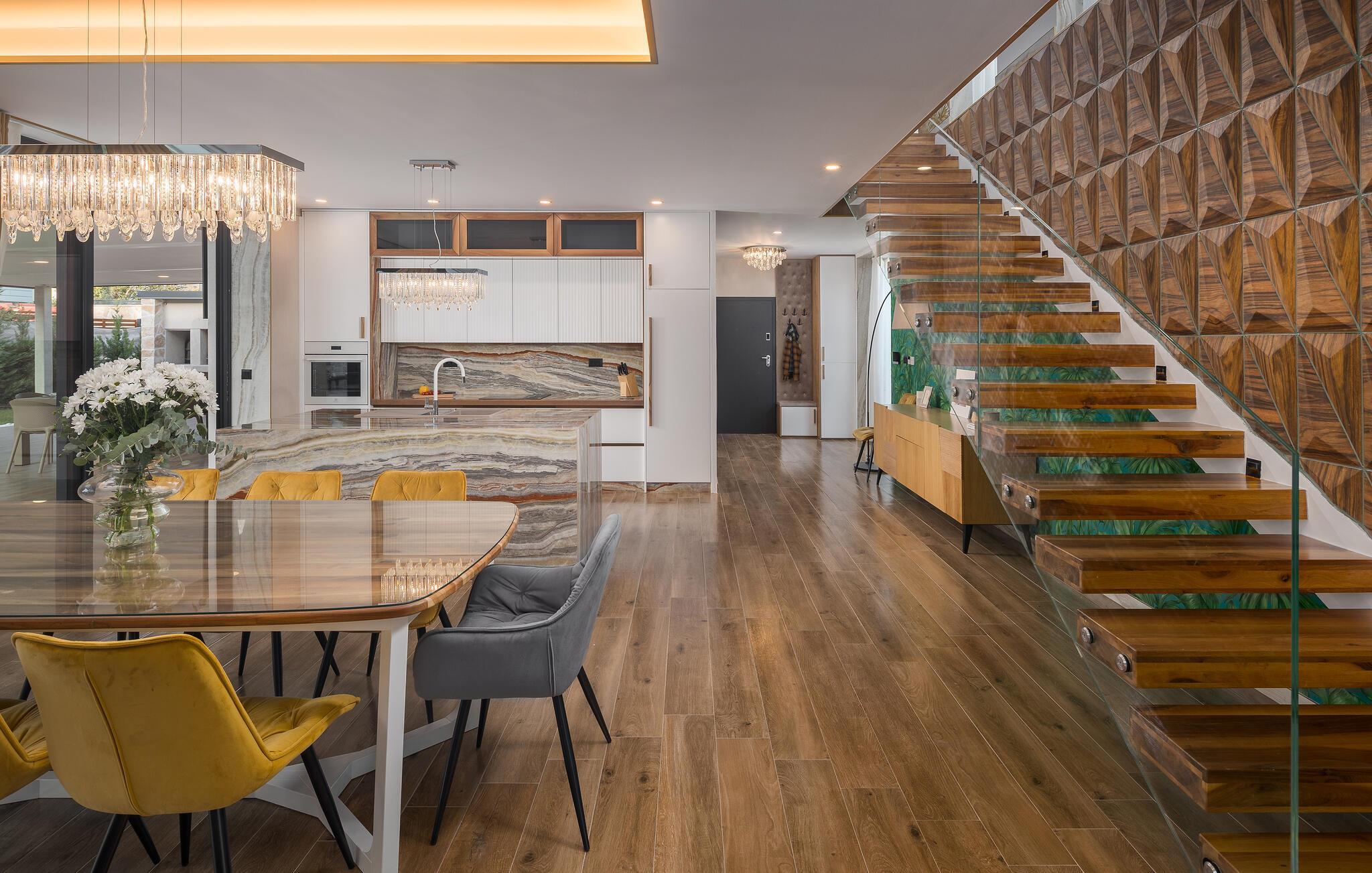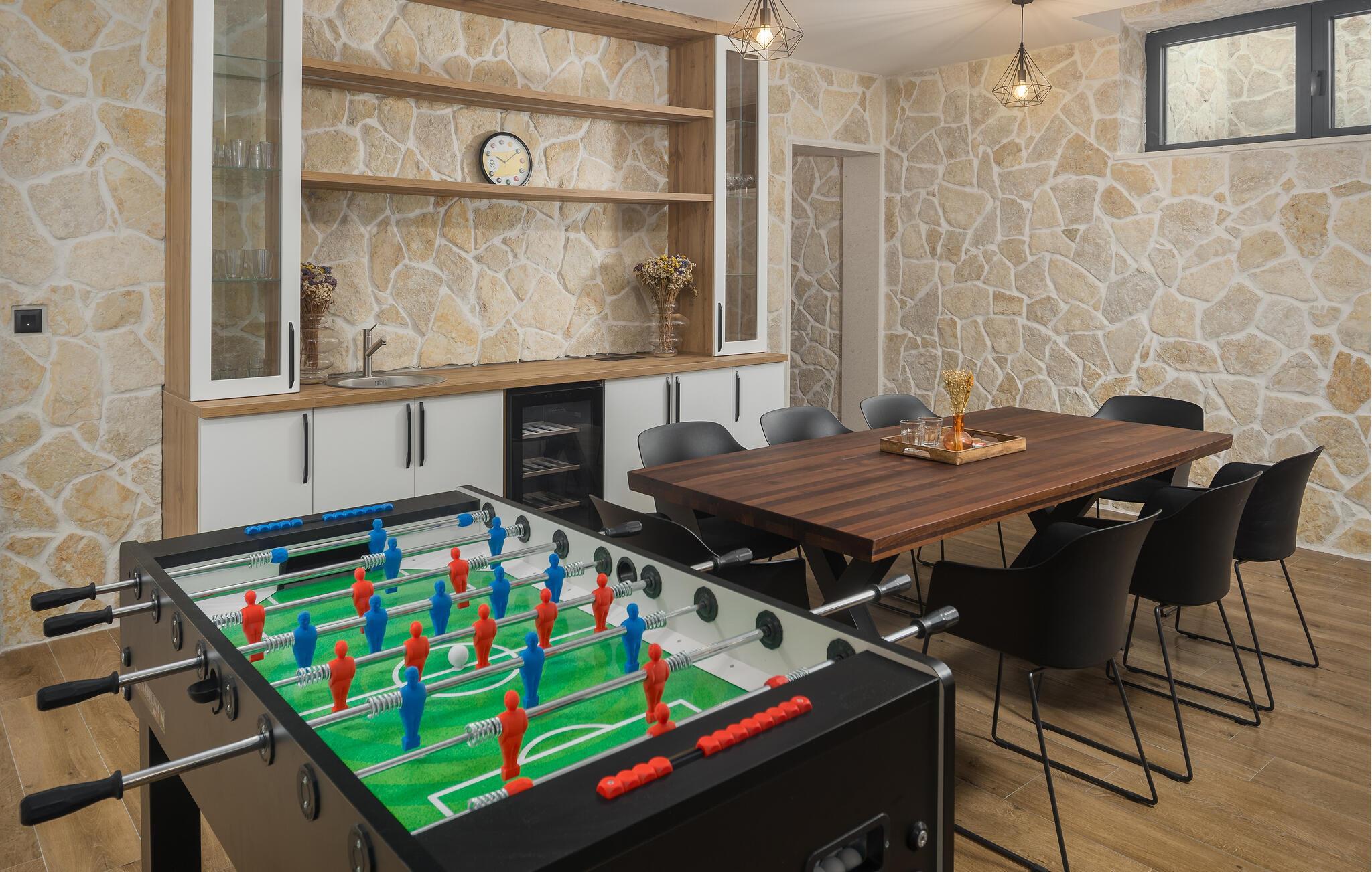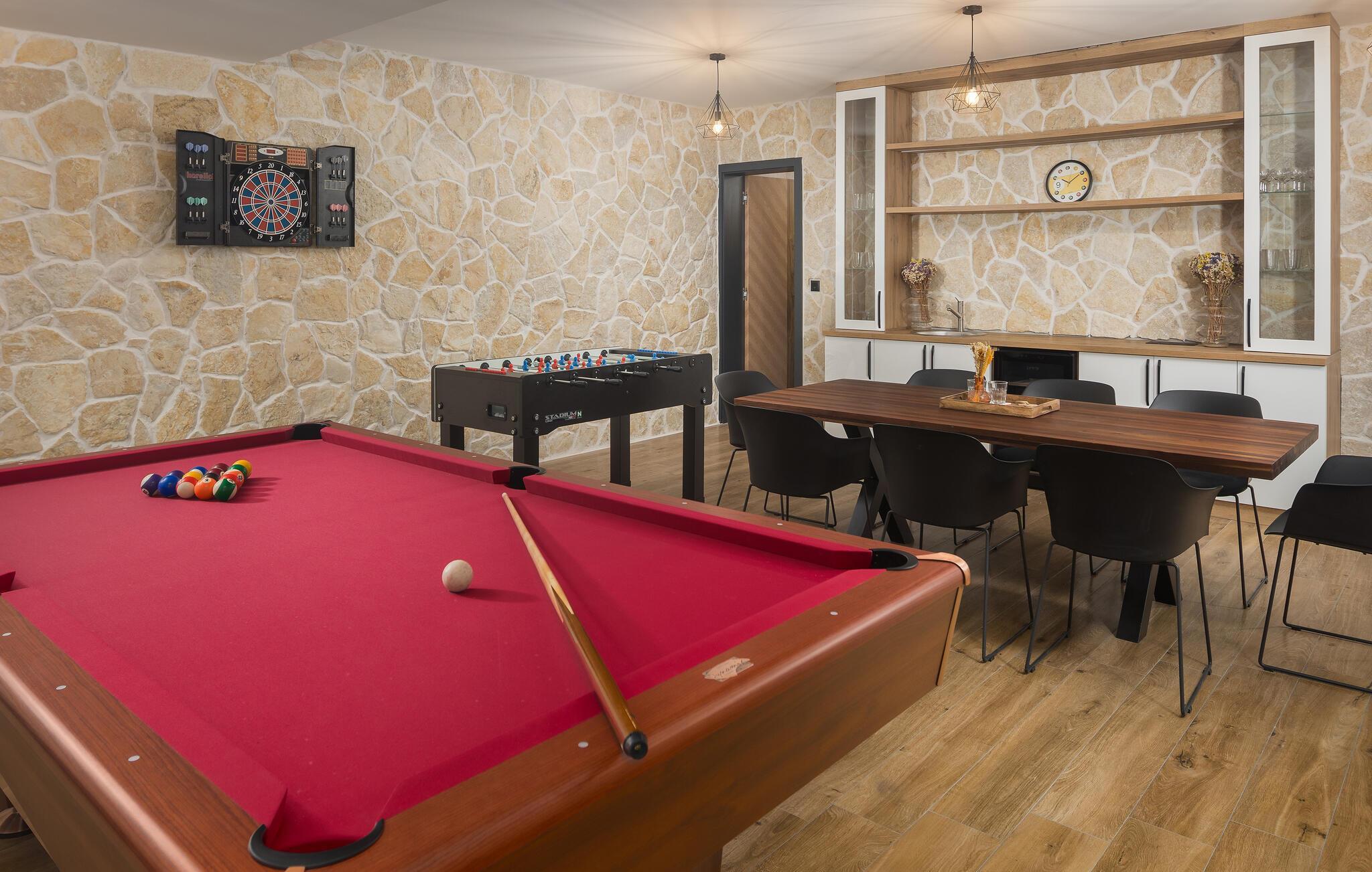 Dette rummelige feriehus på Istriens kyst syd for Porec lægger op til et unikt ophold. Et rummeligt interiør af høj kvalitet venter jer her, hvor komfort og æstetik er kombineret til en meget smagfuld helhed. Tilbring en afslappende ferie i en stilfuld atmosfære og God ferie med bordfodbold, bordtennis, dart eller pool.