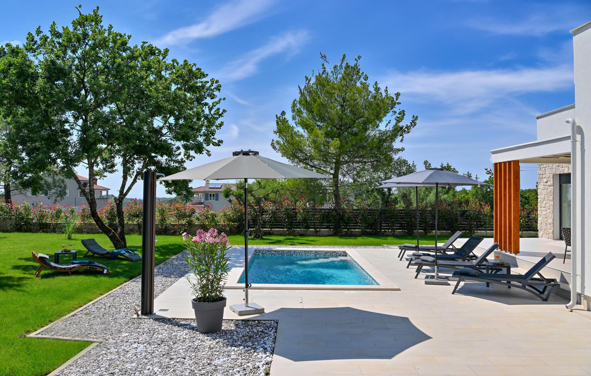 Nyd dette moderne og rummelige feriehus i Marasi.