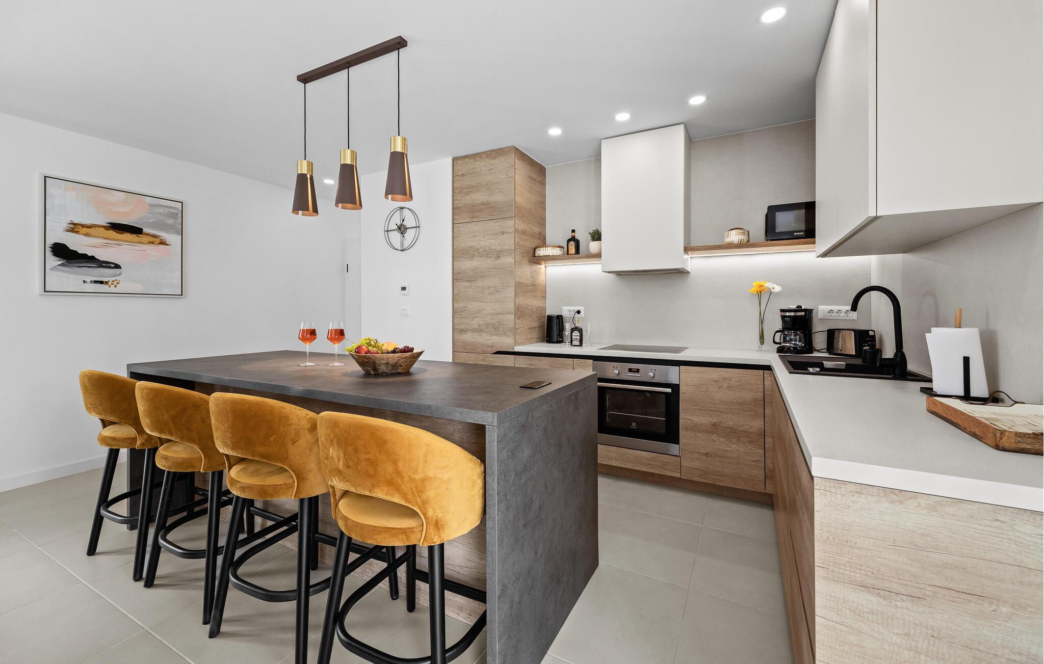 Lyst og indbydende design skaber en ægte atmosfære, der giver jer og familien mulighed for at slappe af. Kom her for at hvile og nyde de tiltalende lokaler, der opfordrer jer til at deltage i aktiviteter sammen. Fremtryll jeres yndlingsretter i det åbne køkken eller tilbring en underholdende filmaften i sofaen. I kan også tilbringe timer sammen med spil og sjov på terrassen og slappe af i solen på liggestolen eller i poolen.