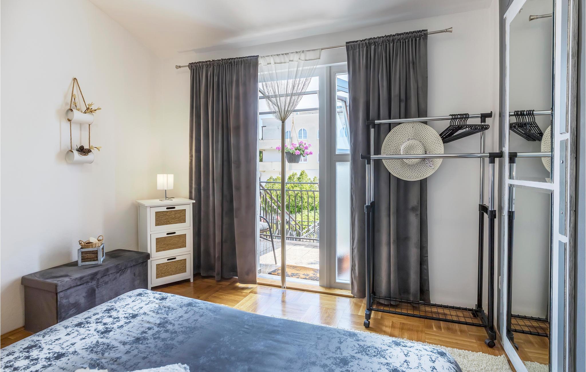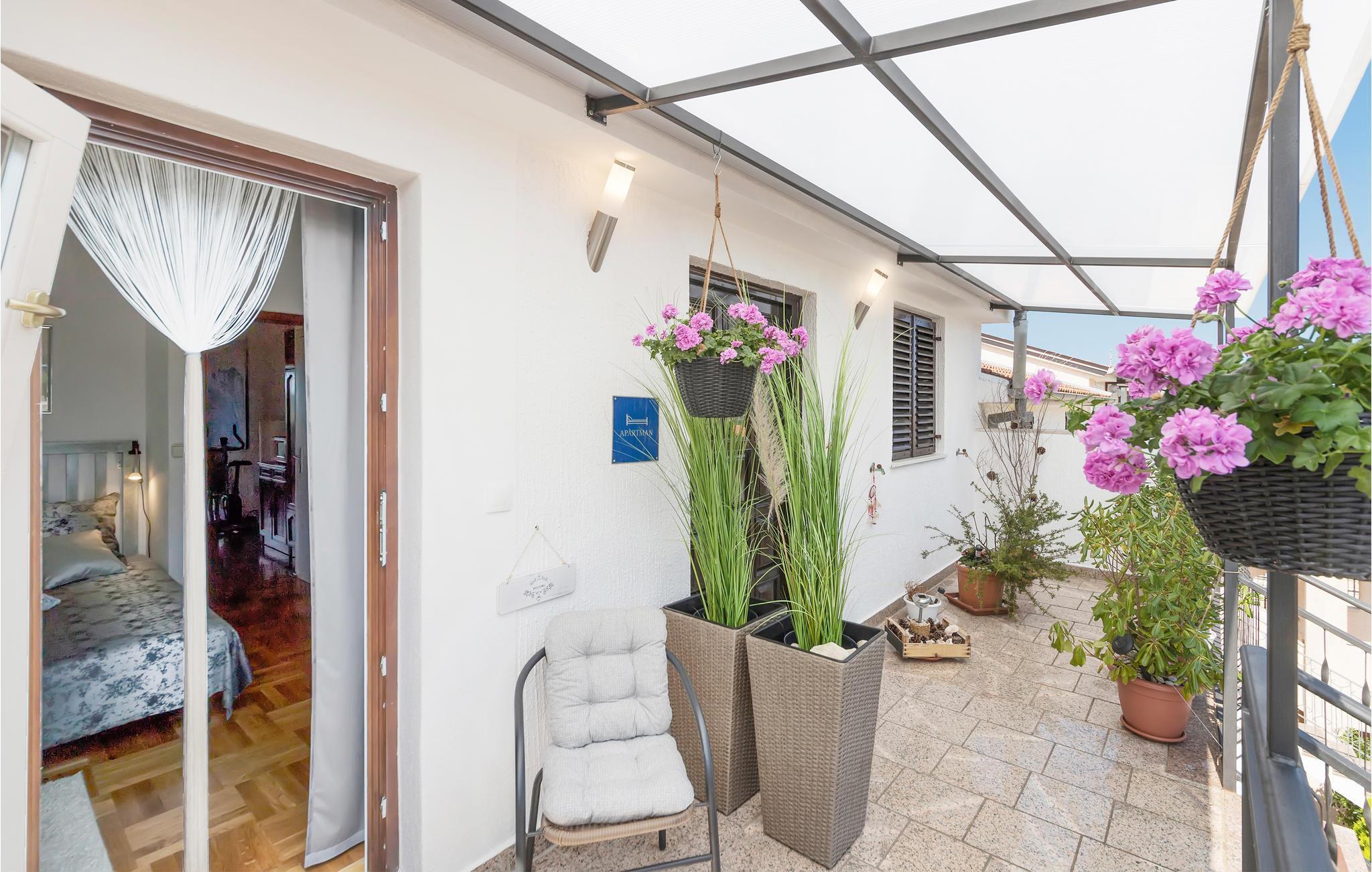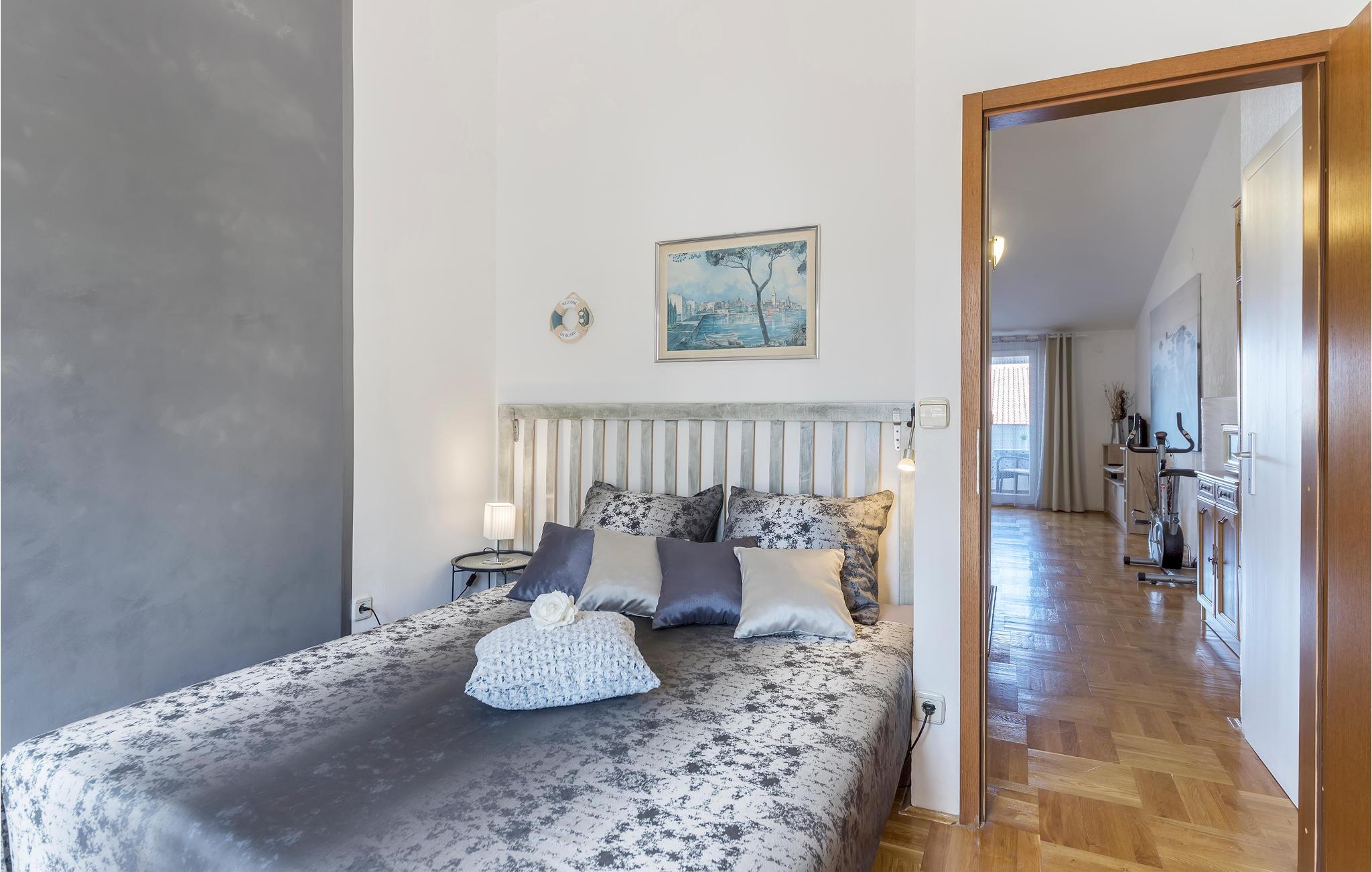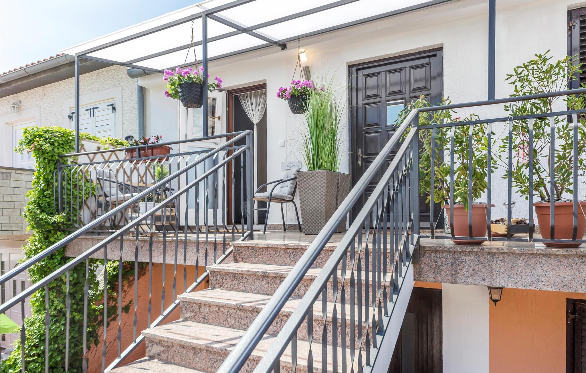 Denne enkelt indrettede ferielejlighed med terrasse og havudsigt ligger i en ny bydel i Vrsar. Den ligger på anden sal i en privat ejendom, og rummet et soveværelse, et køkken og en spise og opholdsstue. Ejendommen ligger i et bakket område, hvor det er dejligt at tage på gåture.
