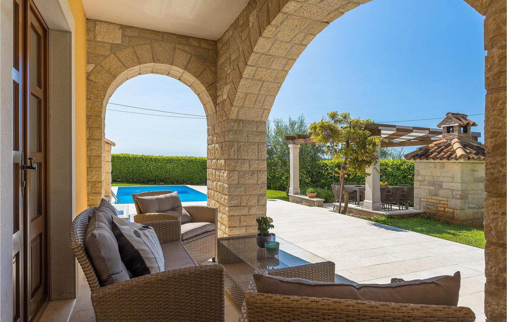 Diese wunderschöne Villa befindet sich nur eine kurze Autofahrt von den touristischen und historischen Hotspots Istriens entfernt. Die Villa verfügt über einen großen, eingezäunten und sorgfältig gepflegten Garten mit privatem Pool und bereitet die besten Zutaten für einen erholsamen Familienurlaub. Die Villa bietet Platz für bis zu 8 Personen in 4 komfortabel eingerichteten Schlafzimmern.