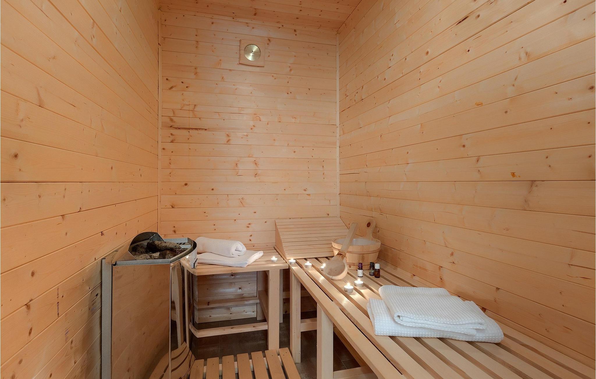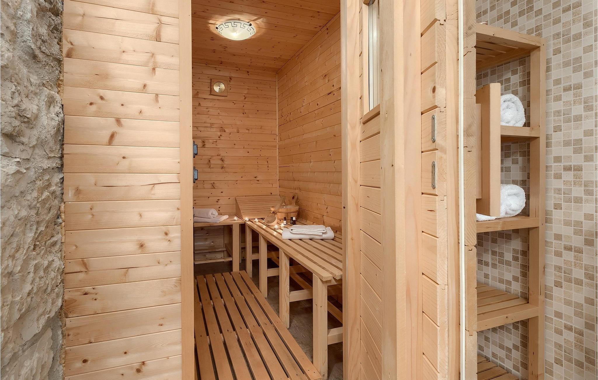 Das Erdgeschoss verfügt über ein gemütliches und geräumiges Wohnzimmer mit einem Kamin, das mit der Küche und dem Essbereich verbunden ist, sowie ein Badezimmer. Im Erdgeschoss finden Sie auch Ihre eigene Sauna vor, die zum Entspannen in Ruhe und Privatsphäre einlädt. Das Obergeschoss gehört zu den 4 Schlafzimmern - drei mit einem Doppelbett, und eine mit zwei Einzelbetten - sowie drei Badezimmern. Zwei der Schlafzimmer haben ein eigenes Bad, sowie Zugang zur überdachten Terrasse, der ideale Ort für Ihren morgendlichen Kaffee.