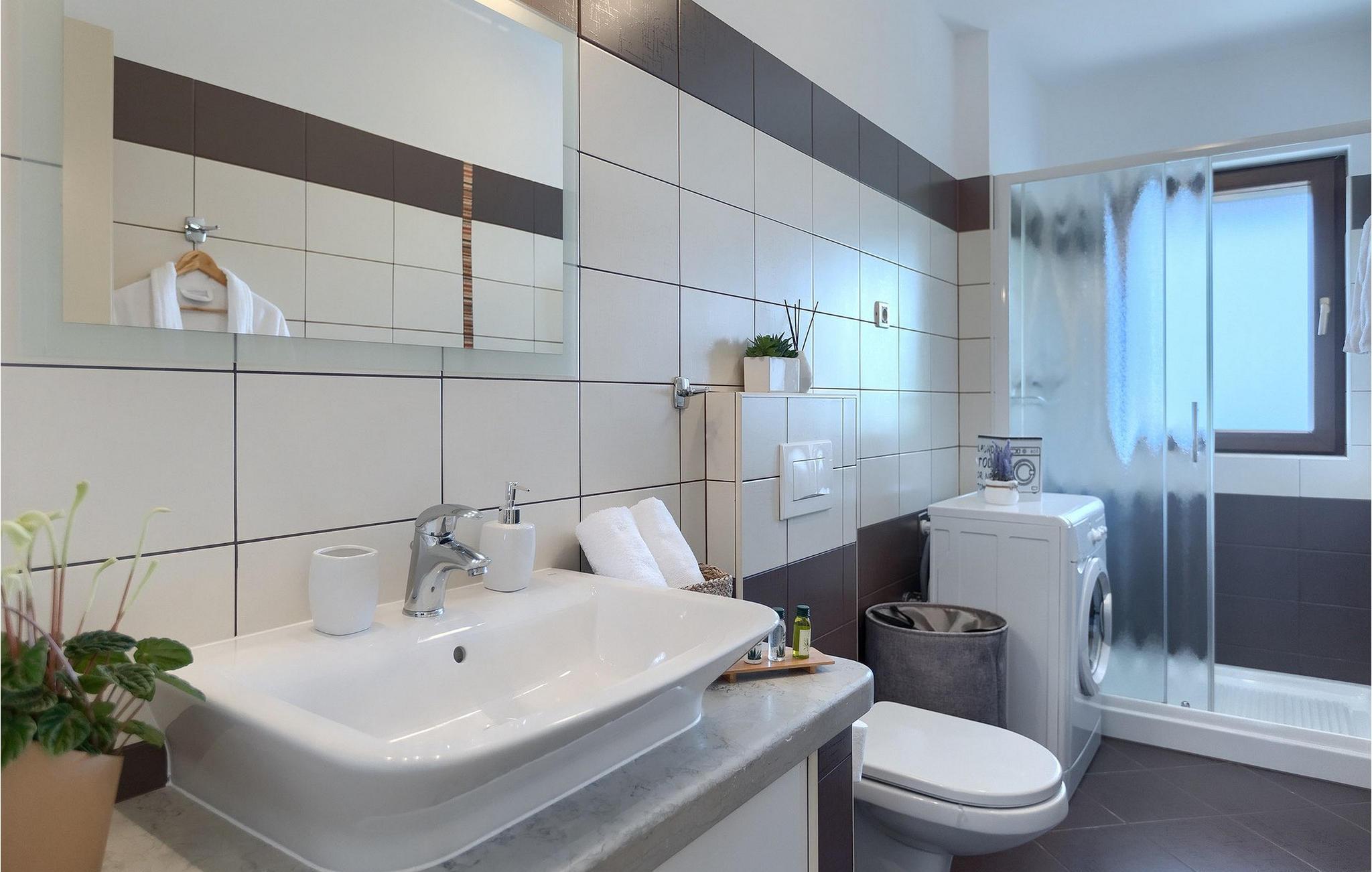 Badezimmer (nr. 2) - WC. Warmes und kaltes Wasser. Dusche