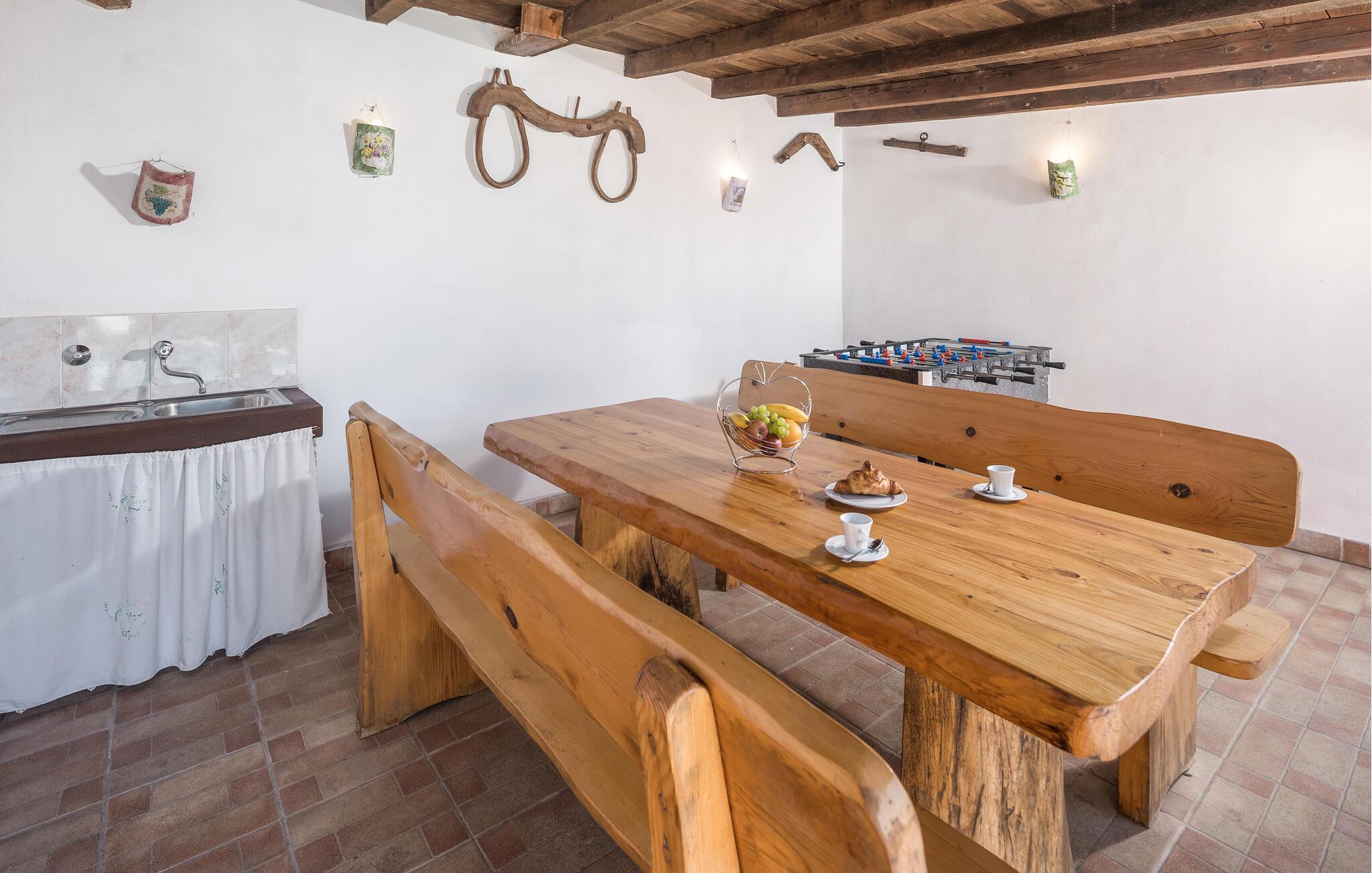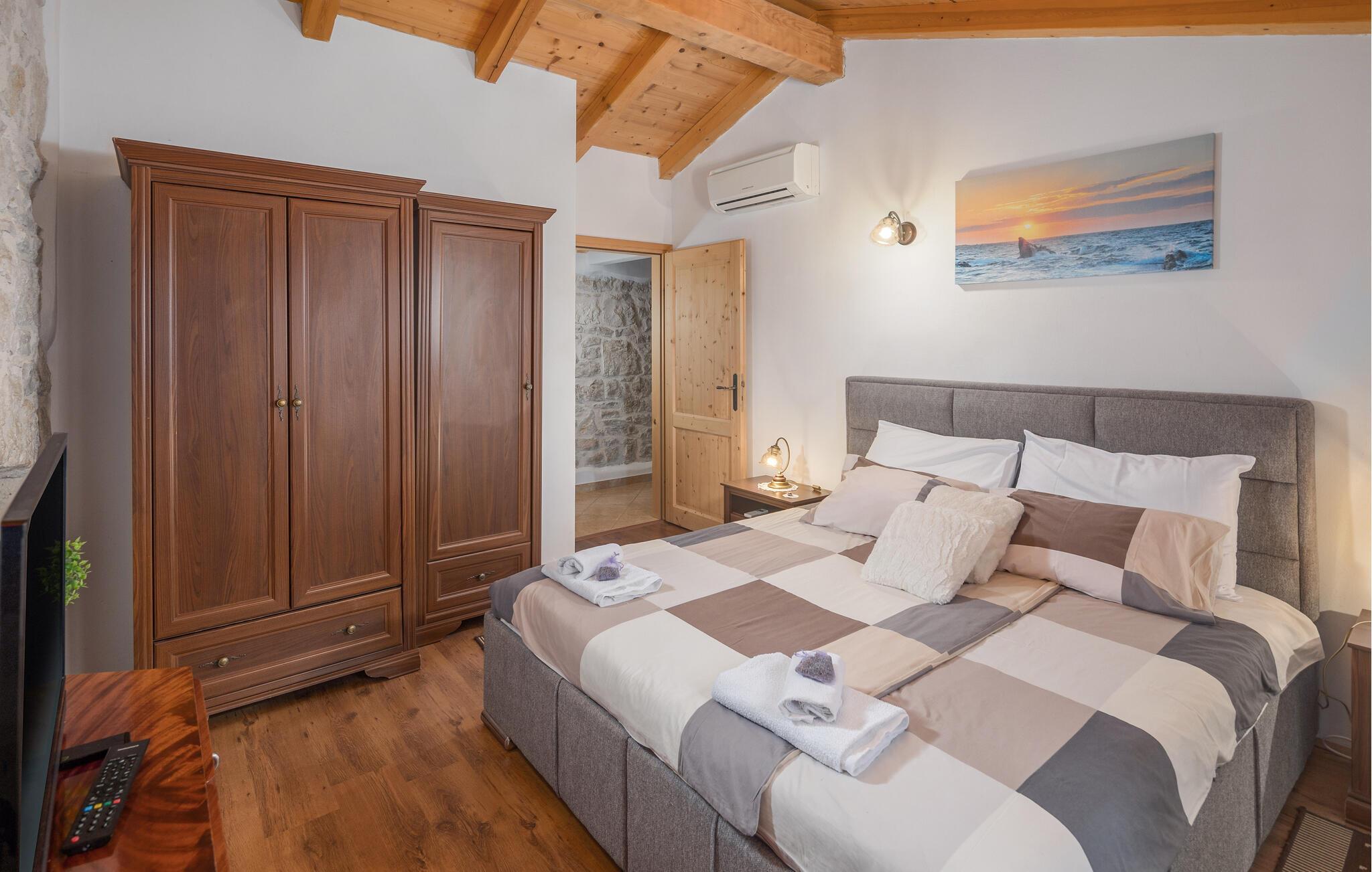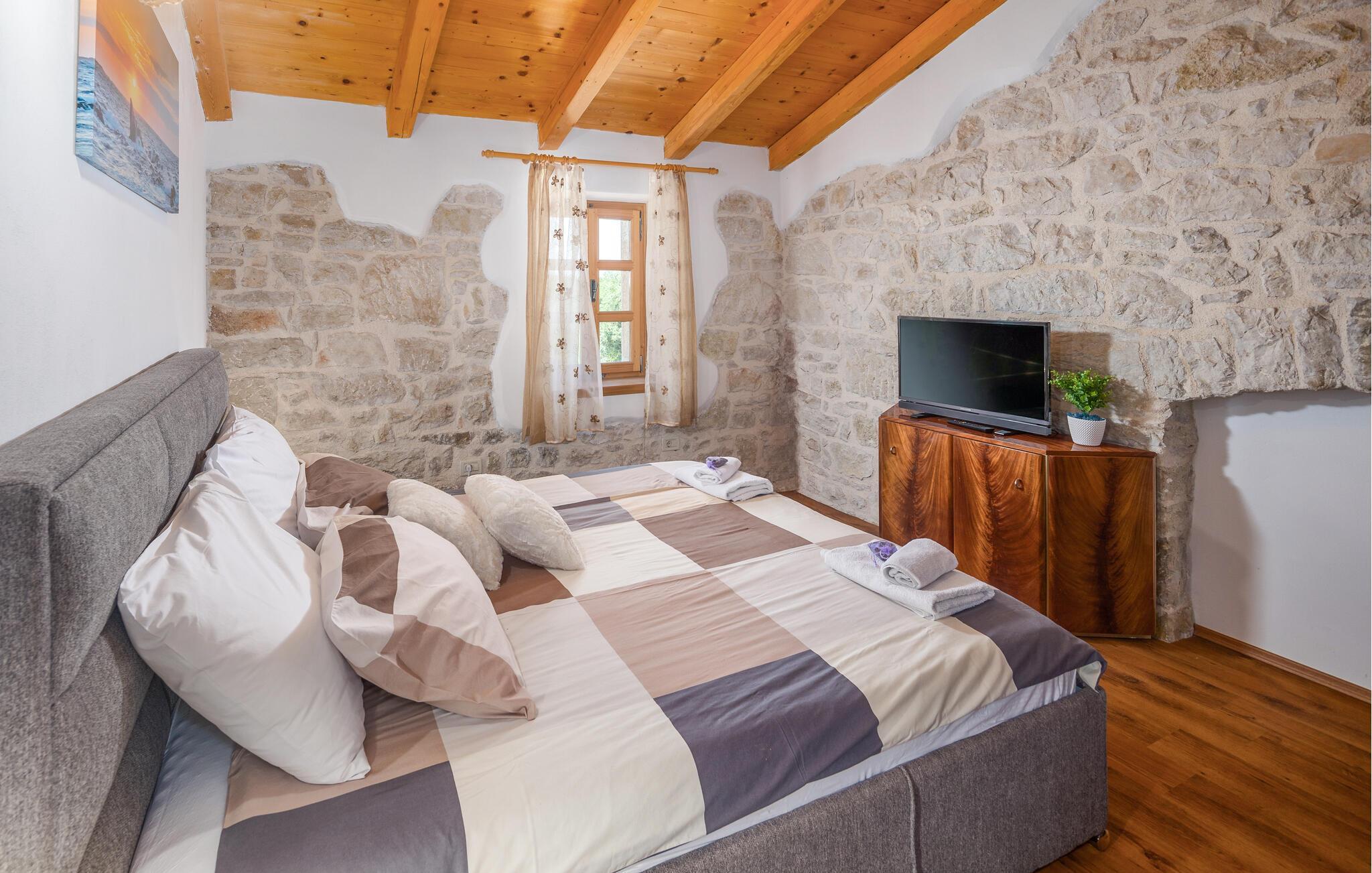 Villa Pelizzar er et autentisk istrisk stenhus nær den maleriske fiskerby Vrsar, det særlige reservat for skovvegetationen Kontija, med mange cykelruter, og Lim-bugten, hvor der er en fiske- og skaldyrfarm. Huset blev renoveret i 2010 og ligger på sin egen lukkede grund. Gæsterne har en swimmingpool på 21 kvm med liggestole og parasoller, overdækket sommerkøkken med pejs og spisebord, legeplads og to parkeringspladser til rådighed. Sommerhus til 6-7 personer på 110 kvm består af stueplan med aircondition stue med siddesæt med sovemulighed for et barn, spisebord, fuldt udstyret køkken, separat toilet, soveværelse med dobbeltseng og bad/toilet. På første sal er der to klimatiserede soveværelser med dobbeltseng og bad/toilet. Bemærk venligst, at denne ejendom ikke accepterer ungdomsgrupper eller polterabends. En ungdomsgruppe på denne ejendom er en gruppe bestående af personer på 26 år eller derunder. Book ikke denne ejendom, hvis du er en ungdomsgruppe eller et polterabend, da din reservation vil blive afvist efter booking, hvilket kan omfatte ved ankomst til ejendommen eller under dit ophold, og du vil ikke blive refunderet.
