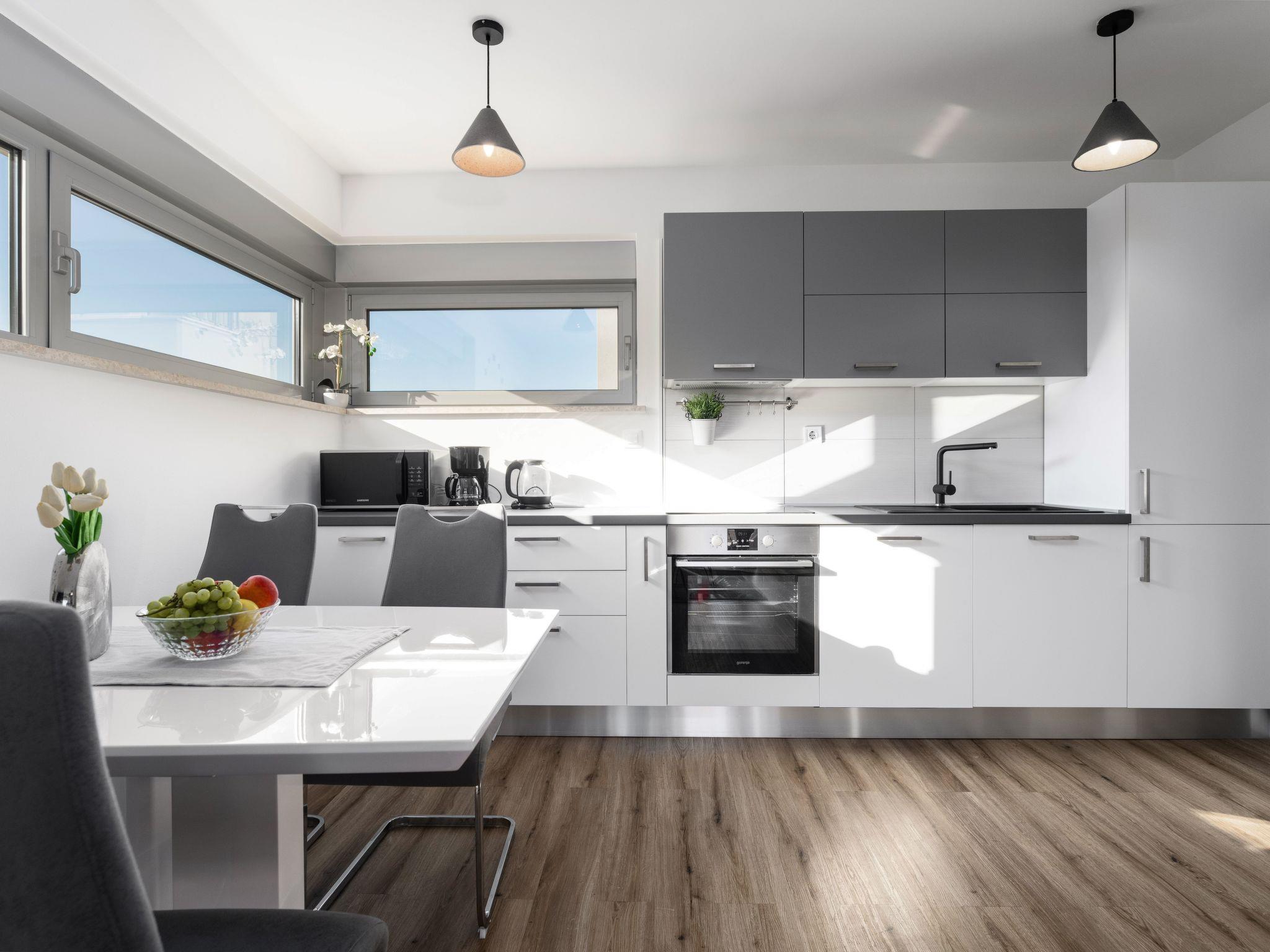 The flat itself, located on the 1st floor, extends to 47 square metres and is designed for up to 2 adults and a child. The living area, harmoniously combined with a fully equipped kitchen, has a dining table and a couch that can easily be converted into a sleeping area for a child. In addition to the spacious bedroom with double bed, the bathroom with shower/WC is also practically and comfortably furnished. Amenities include a washing machine for your sole use as well as a filter coffee machine, a capsule coffee machine and a kettle for your morning enjoyment.