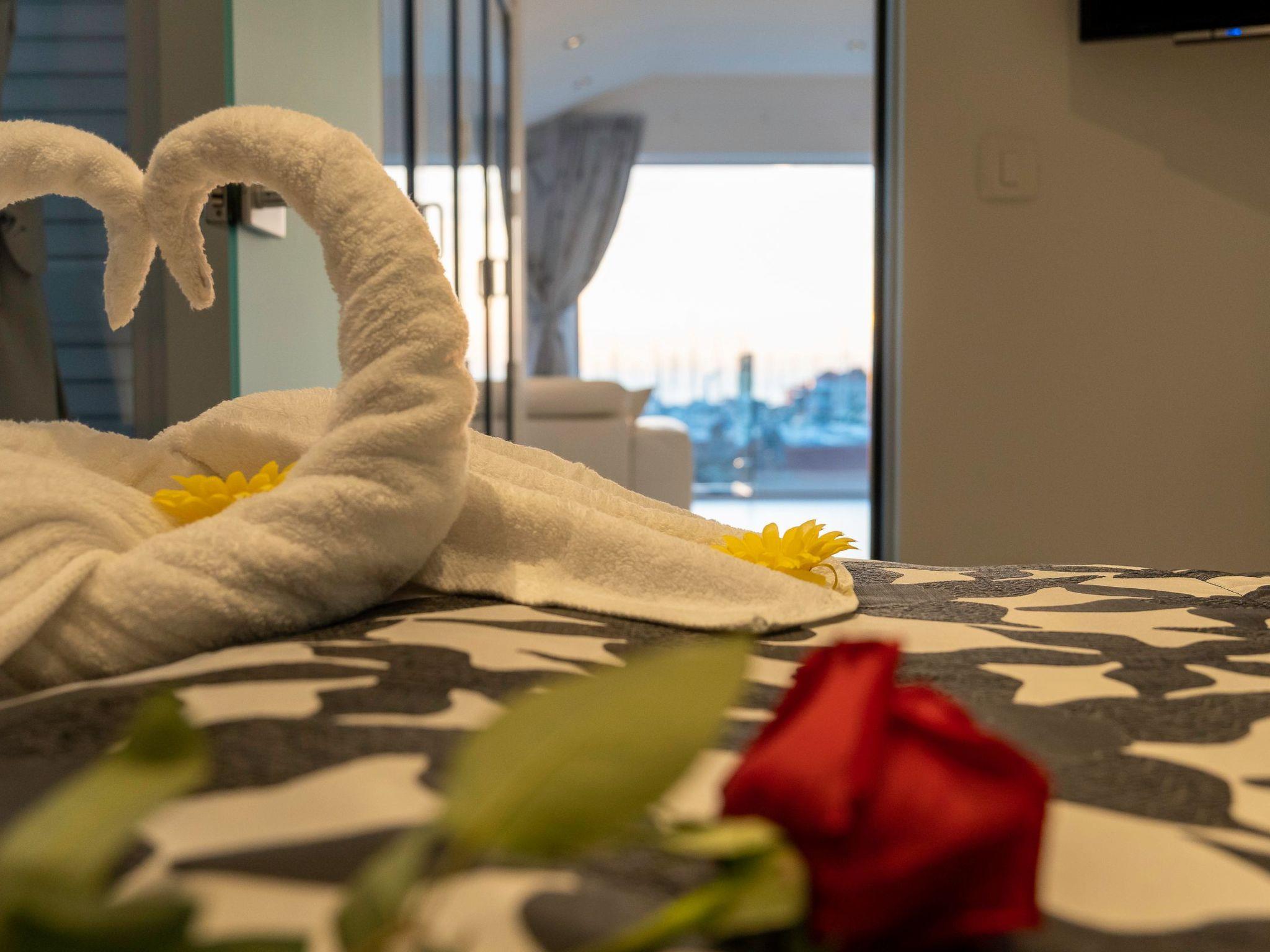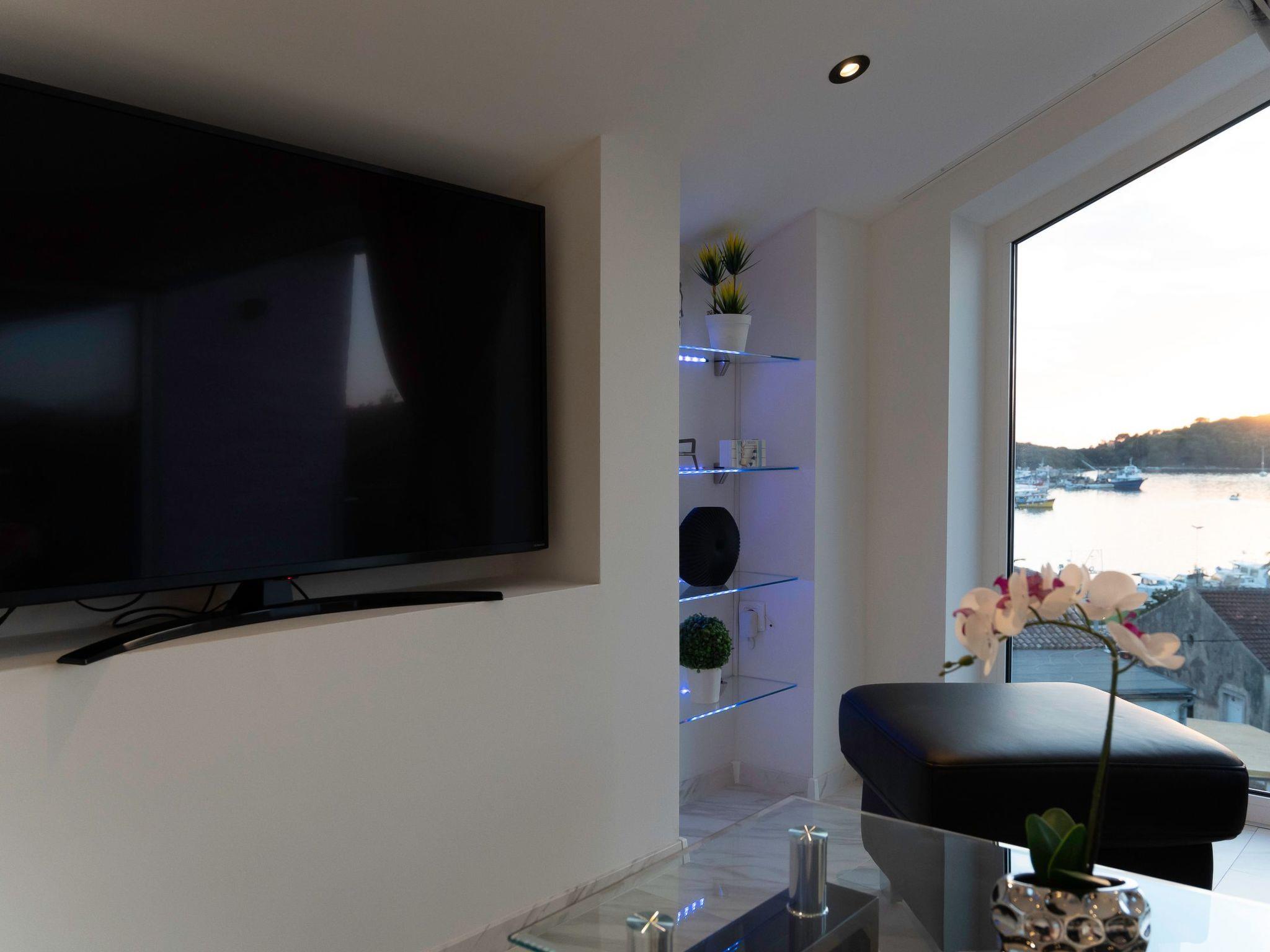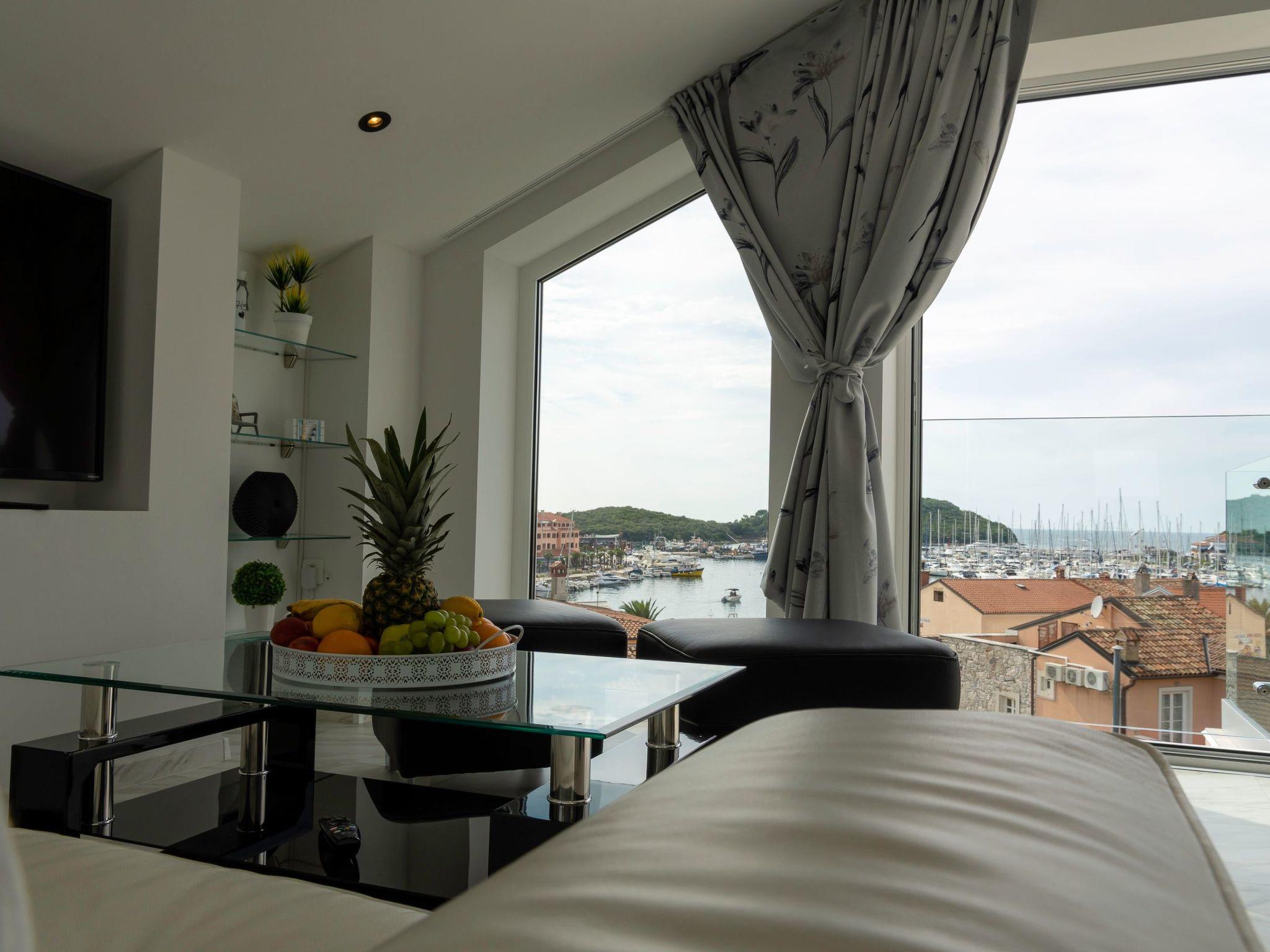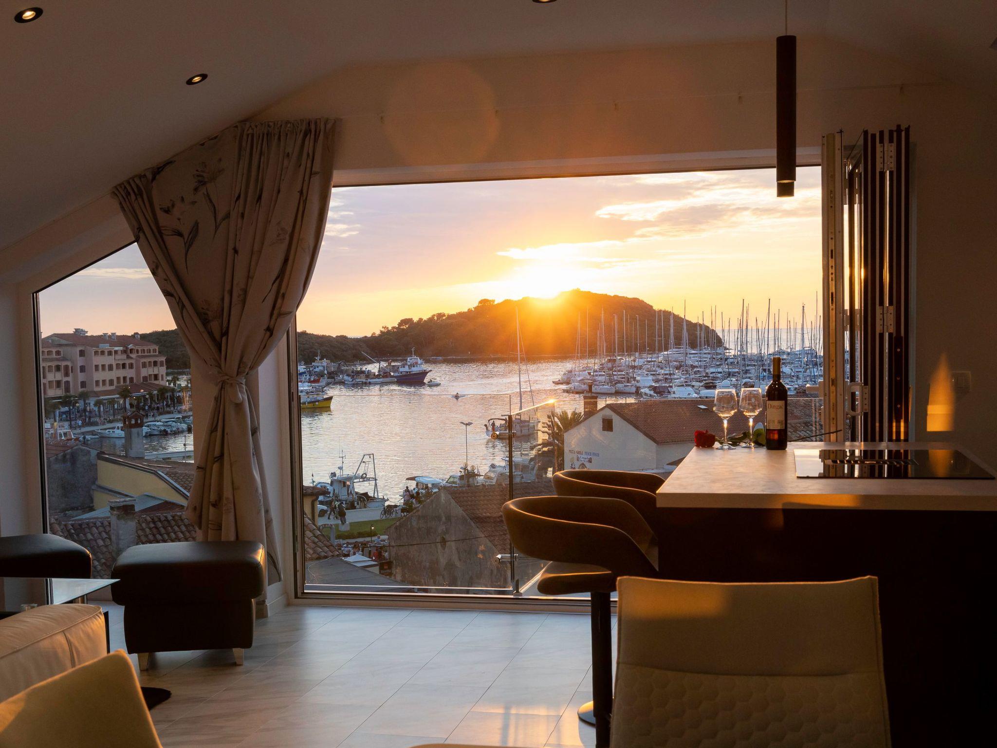 Luxury flat for up to 4 people. Equipped with modern fitted kitchen, elegant living and dining room, deluxe bathroom, sun terrace, Jacuzzi, panoramic windows and an excellent view of the sea. Enjoy the sunset and the view of the Croatian sea from your personal jacuzzi for up to 4 people.