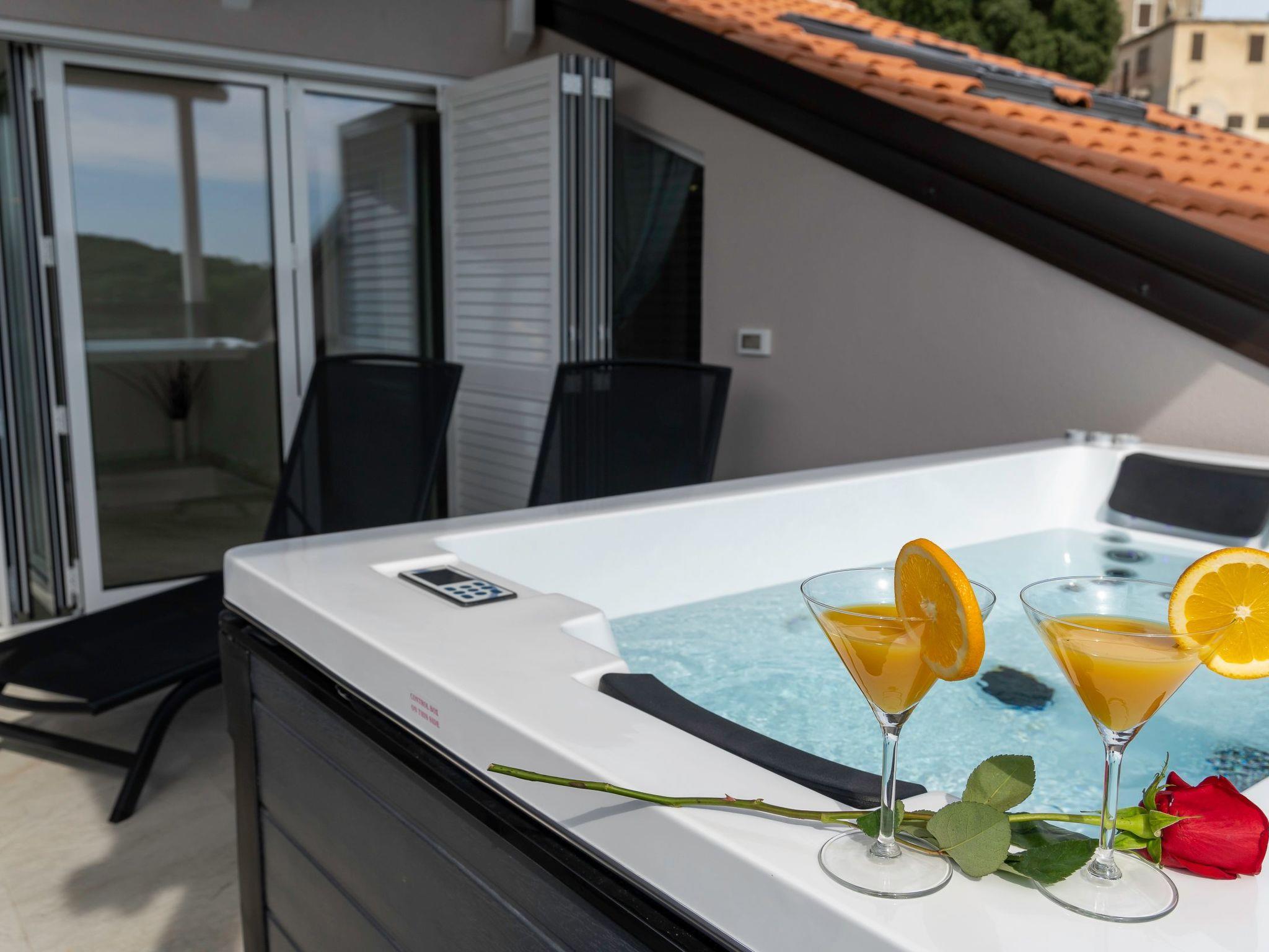Large terrace with jacuzzi...Enjoy the sunset and the view of the Croatian sea from your personal jacuzzi.
