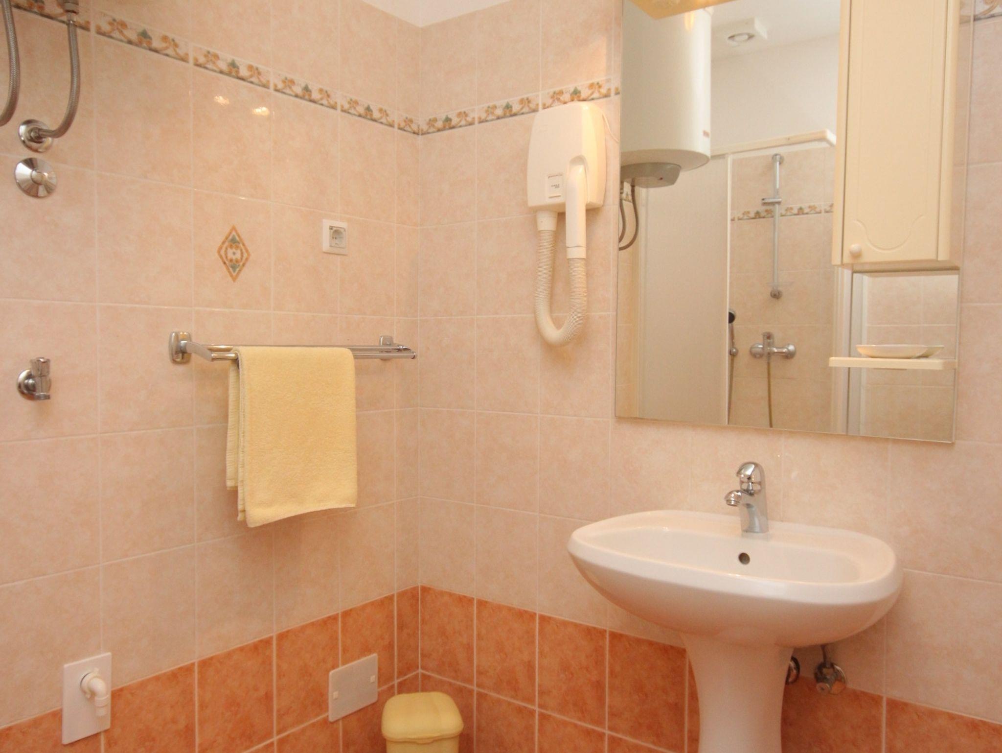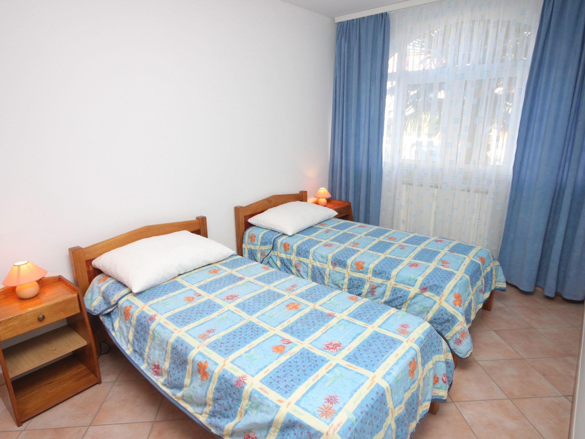 Ferienwohnung bietet Platz für 6 Gäste. Die Betten sind in Schlafzimmern, die es 2 gibt, und in Wohnzimmer, innerhalb einer Gesamtfläche von 48m2, angeordnet. Die Gäste haben eine eigene Terrasse zur Verfügung, auf der sie in warmen Sommernächten genießen können. Es ist erlaubt, Speisen auf dem Gemeinschafts-Grill vorzubereiten. In der Unterkunftseinheit besteht die Möglichkeit des Mitbringens von Haustieren gegen Aufpreis. IM PREIS INBEGRIFFEN: Endreinigung, Zentralheizung, Internet, Kinderbett, Bügeleisen, Bügelbrett, Föhn. VERBINDLICHE ZUSÄTZLICHE KOSTEN: Kurtaxe (Erwachsene 0,93 € - 1,60 € Nacht/Person, Kinderermäßigung 12 - 17 Jahre), Aufzahlung für Kurzaufenthalte (prozentualer Zuschlag pro Nächtigungsanzahl: 30% - 1, 20% - 2, 10% - 3). UNVERBINDLICHE ZUSÄTZLICHE KOSTEN: Klimatisierung (5,00 € pro Nacht), Haustiere (5,00 € pro Nacht). Die Verfügbarkeit zusätzlicher Dienstleistungen in Ihrem reservierten Termin und die Preise derselben (falls nicht aufgeführt) müssen im Voraus überprüft werden. Zusätzliche Dienstleistungen die in der Zahlungsaufforderung nicht aufgeführt sind werden direkt beim Vermieter bezahlt, angenommen der Gast nutzt auch diese.