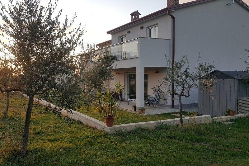 Neu erbautes Ferienhaus nur durch eine Wiese und ein Olivenfeld vom Meer getrennt, ruhige Lage,