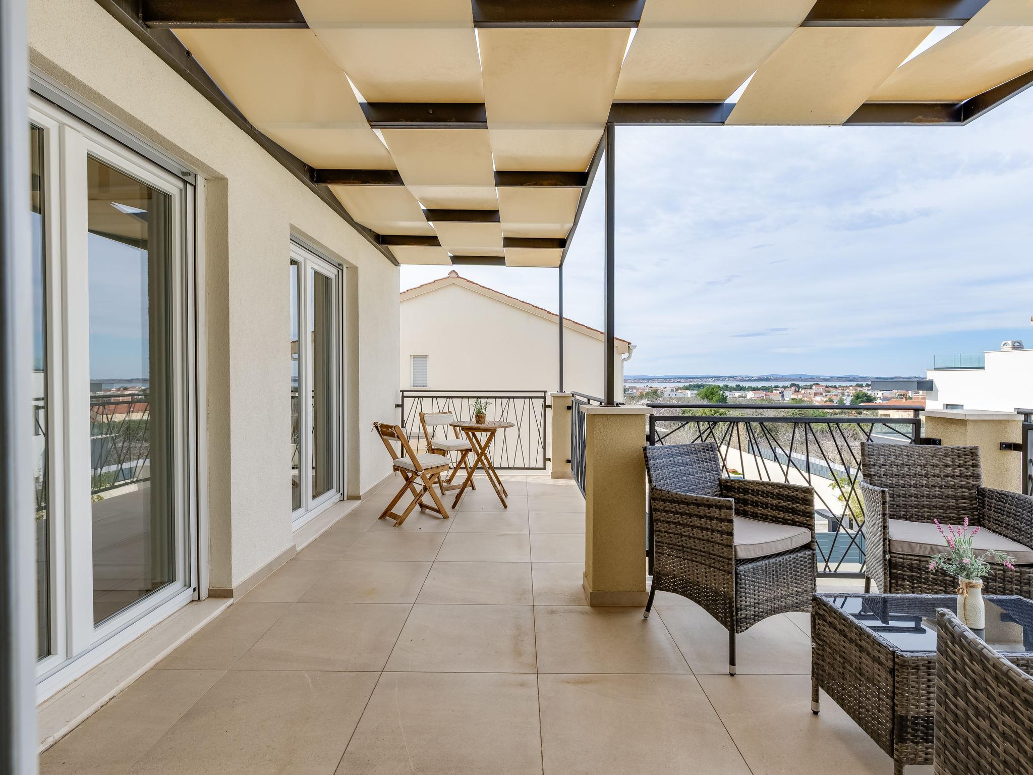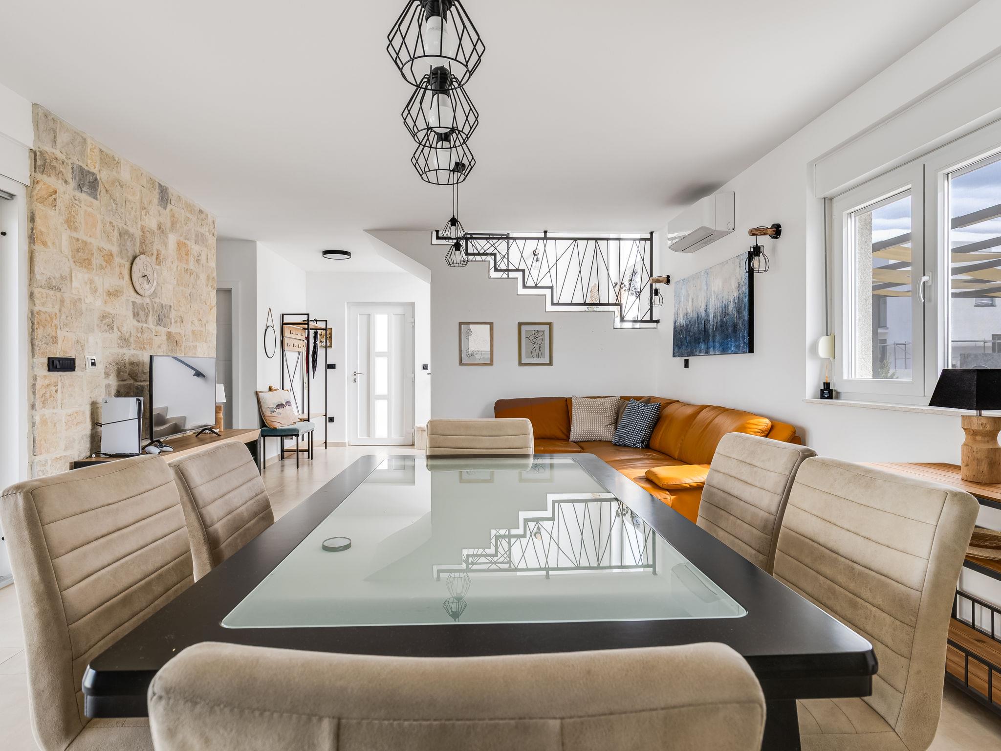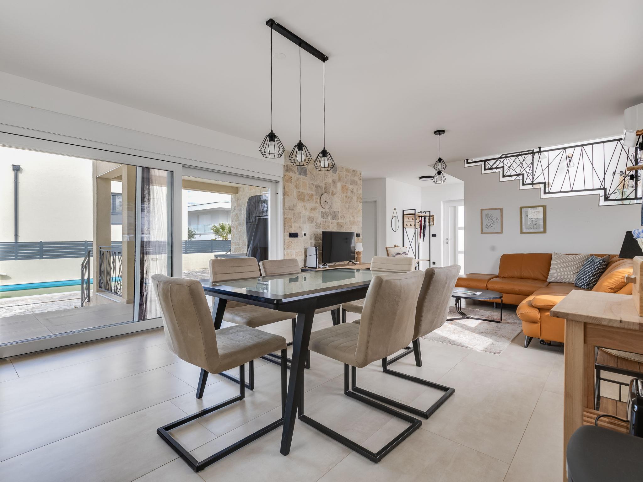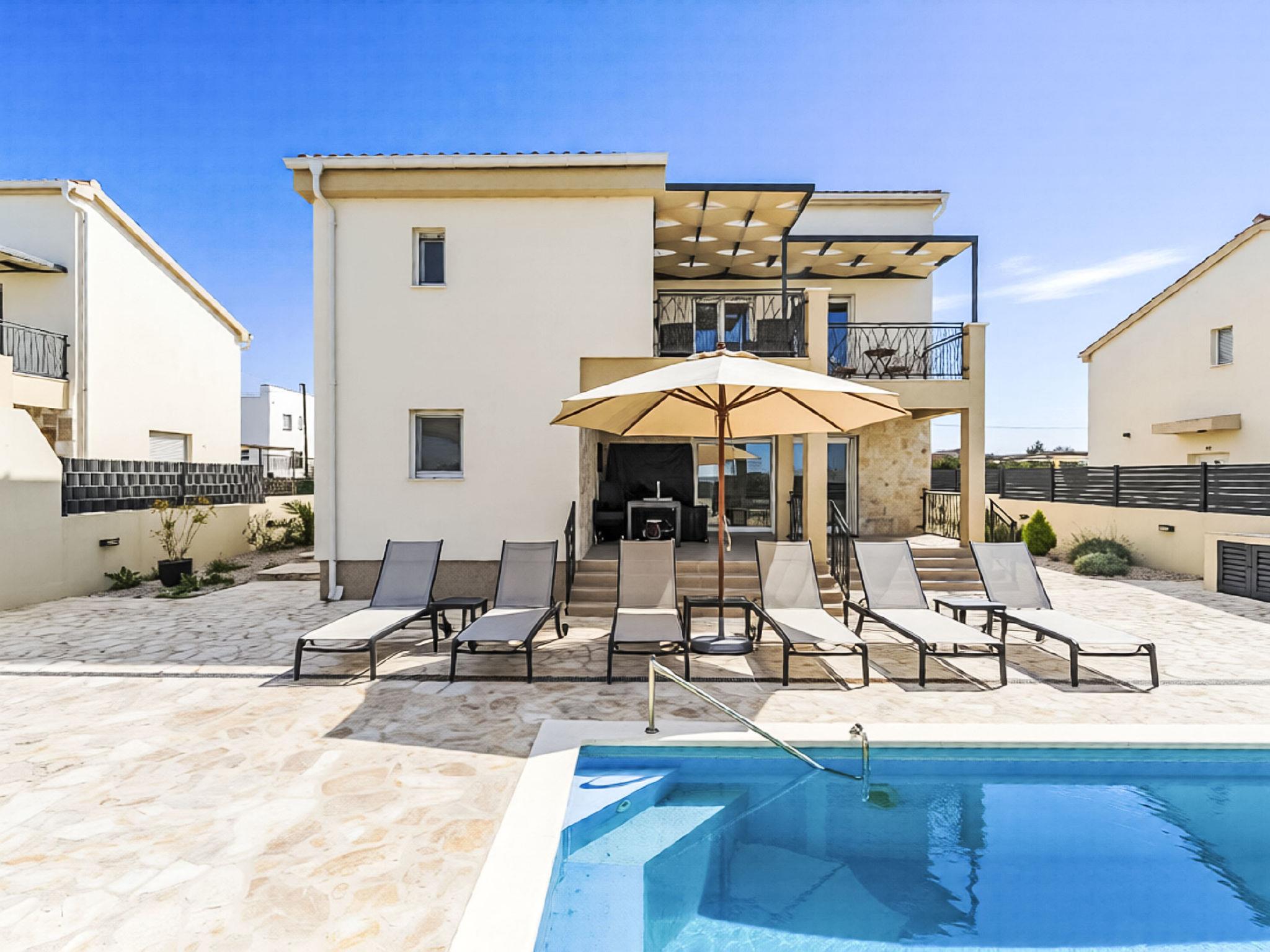 Vrsi Mulo 2 km from Vrsi: Cosy single-family house "Beyla", 2 storeys. 4 km from the centre of Nin, in a sunny position, 450 m from the sea, 500 m from the beach. Private: property 130 m2 (fenced), swimming pool (8 x 4 m, depth 145 cm, seasonal availability: 01.May. - 01.Oct.). Outdoor shower, table tennis, barbecue. In the house: internet access, washing machine. Parking (for 2 cars) at the house on the premises. Shop, restaurant 230 m, bus stop 5.3 km, pebble beach 500 m. Tennis 8 km. Please note: suitable for families. For private use: PlayStation 5.
