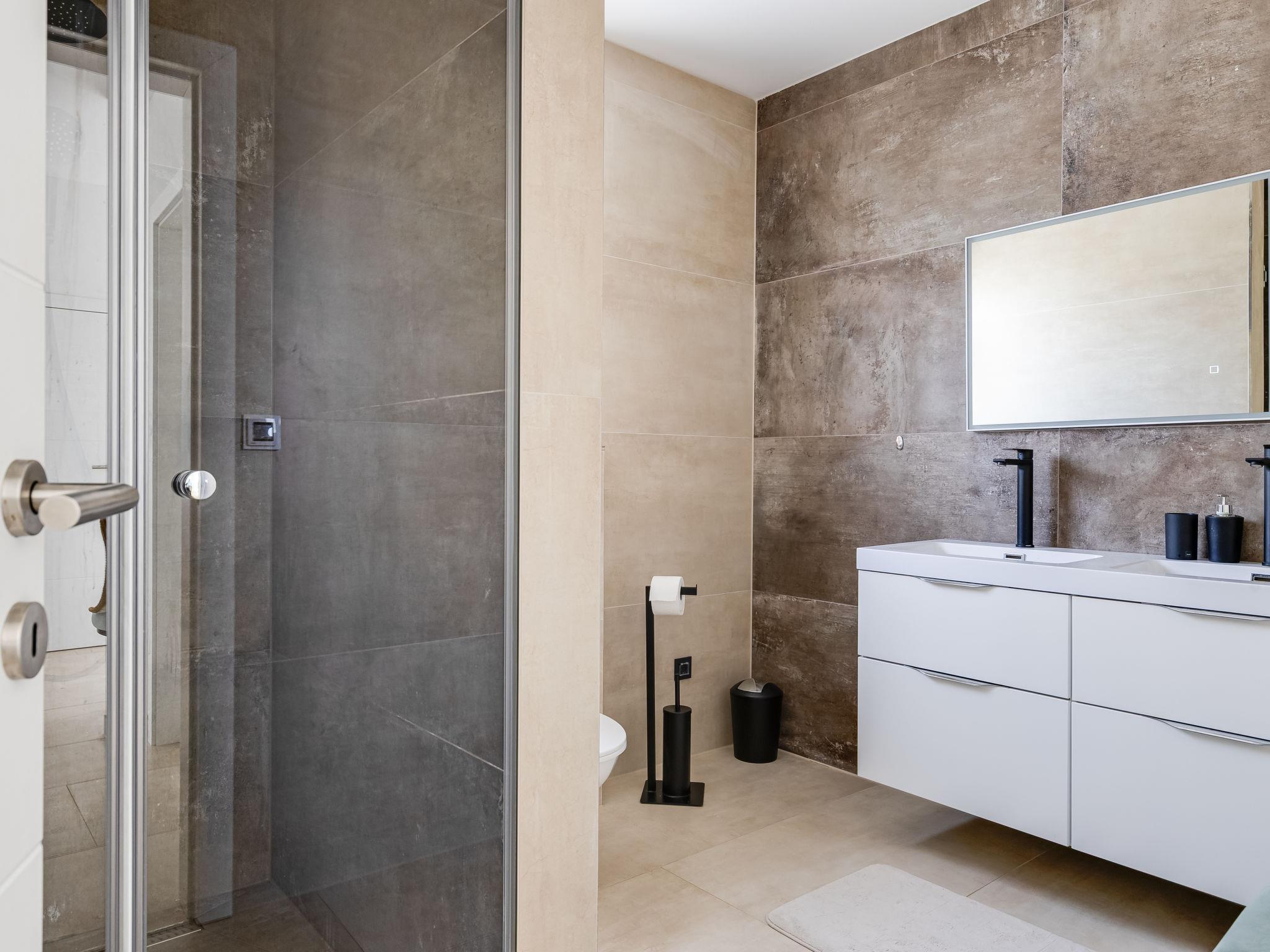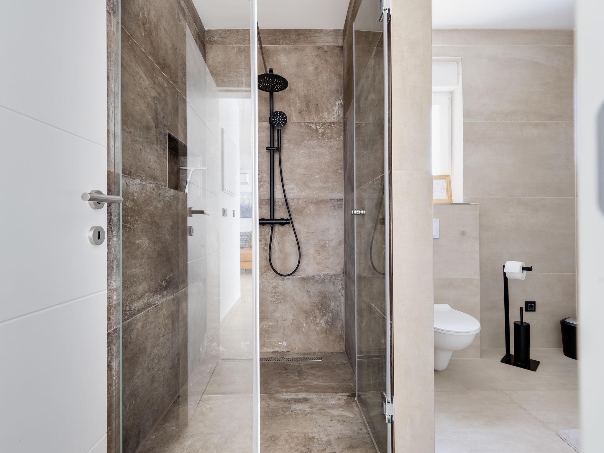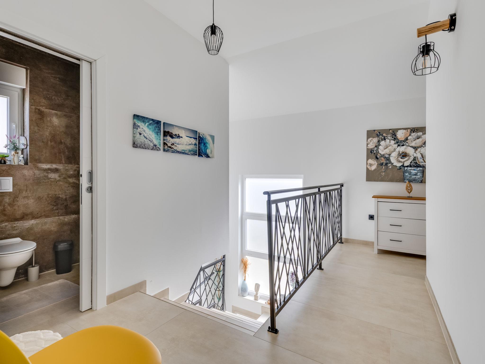 4-room villa 140 m2 on 2 levels. Living/dining room 40 m2 with 1 double sofabed (140 cm, length 200 cm), satellite TV (flat screen), air conditioning. Exit to the terrace. Open kitchen (oven, dishwasher, 4 induction hot plates, toaster, kettle, microwave, freezer, electric coffee machine, Capsules for coffee machine (Nespresso) extra). Shower/WC. Upper floor: entrance hall with air conditioning. 2 rooms, each room with 1 french bed (160 cm, length 200 cm), satellite TV. Exit to the balcony. 1 room with 1 french bed (140 cm, length 200 cm), satellite TV. Shower/WC. Balcony 8 m2, terrace 18 m2, roofed. Terrace furniture. Facilities: hair dryer. Internet (WiFi, free).