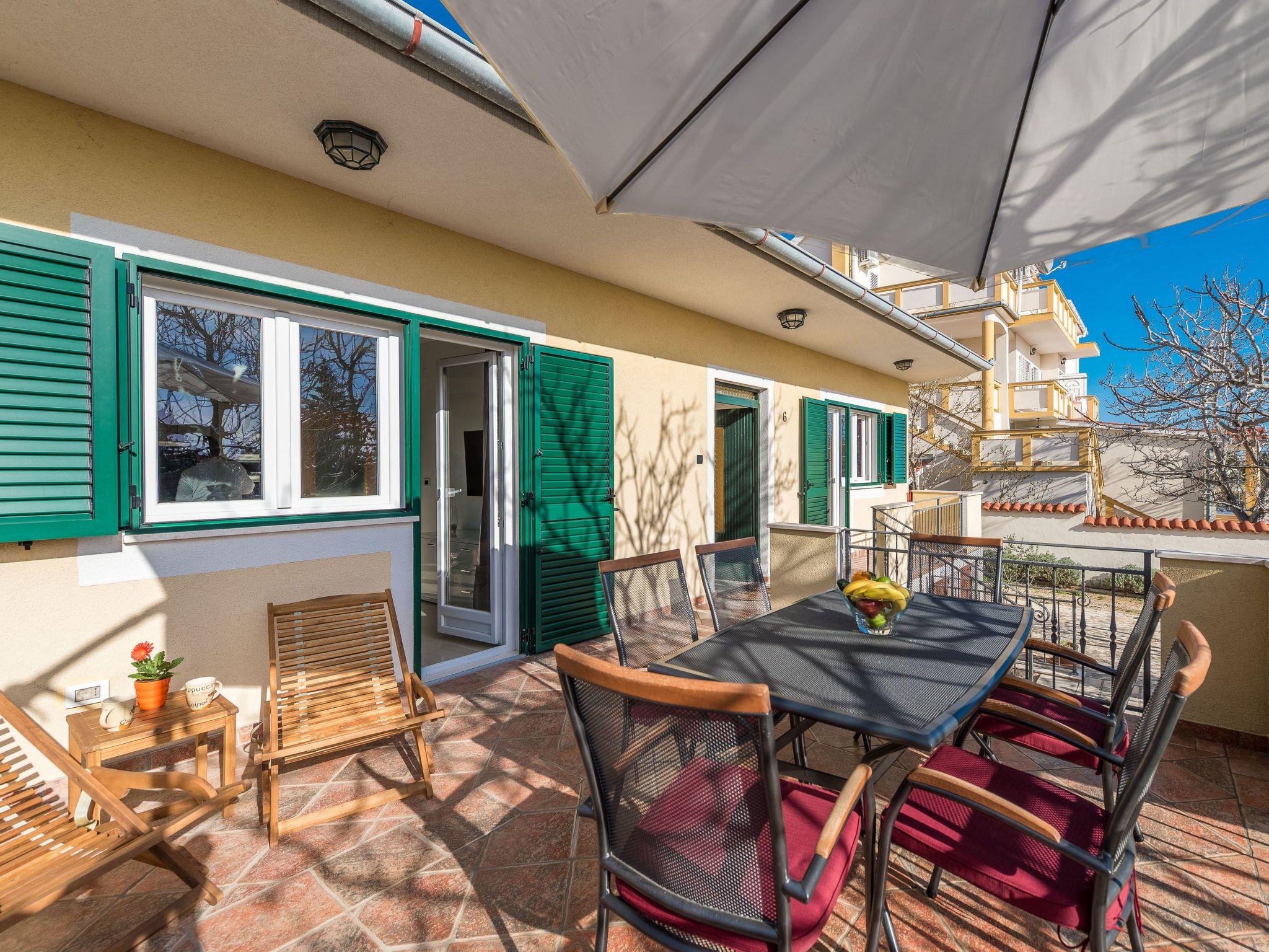The terrace is equipped with garden furniture, a sunshade and two garden loungers. The property is fenced and is therefore suitable for children.