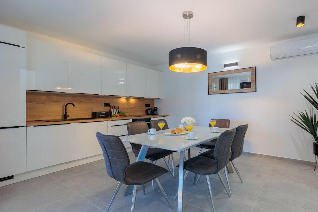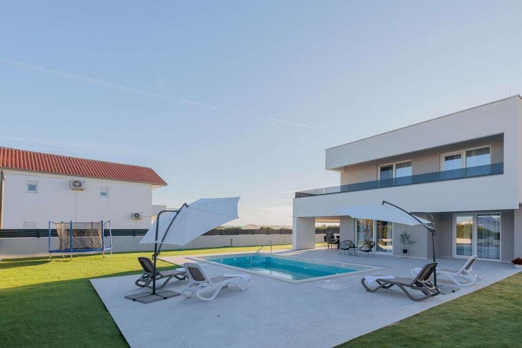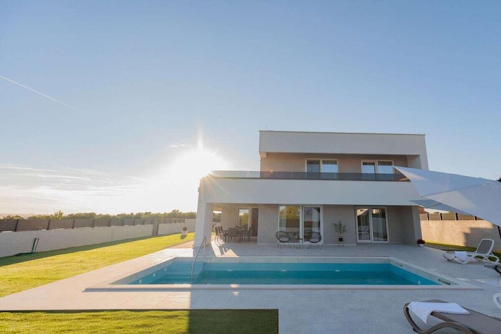 Auf 120 Quadratmetern bietet die Villa viel Platz für Entspannung und Unterhaltung. Das gemütliche Wohnzimmer ist von Tageslicht durchflutet und durch geschmackvolle Möbel ergänzt. Voll ausgestattete moderne Küche mit High-End-Geräten, die selbst die anspruchsvollsten Köche zufrieden stellen. Der Innenraum ist sorgfältig mit interessanten Details und Farben dekoriert, die sich harmonisch vermischen und eine optisch atemberaubende Ästhetik schaffen. Egal, ob Sie im Wohnzimmer entspannen, in der Küche ein Gourmet-Menü zubereiten oder sich für eine erholsame Nacht in eines der Schlafzimmer zurückziehen – Sie werden von modernem Design umgeben sein. Der private Pool ist sicherlich ein Ort, an dem Sie sich erfrischen oder einfach auf den Sonnenliegen am Pool liegen und in der warmen Sonne ein Sonnenbad nehmen können. Der Garten ist ein besonderer Teil des Anwesens, in dem Sie entspannen und alle Sorgen vergessen können. Der Grill und der Essbereich im Freien bieten den perfekten Rahmen für Mahlzeiten im Freien, sodass Sie gegrillte Köstlichkeiten genießen und dabei die Gesellschaft Ihrer Lieben genießen können. Egal, ob Sie einen ruhigen Rückzugsort oder einen Ausgangspunkt für die Erkundung des Charmes von Vrsi und der Gespanschaft Zadar suchen, diese bezaubernde Villa ist die perfekte Wahl für ein unvergessliches Urlaubserlebnis. Den Gästen stehen private Parkplätze zur Verfügung. Auch der Aufenthalt eines Haustiers ist gestattet, muss jedoch vorher angemeldet werden.